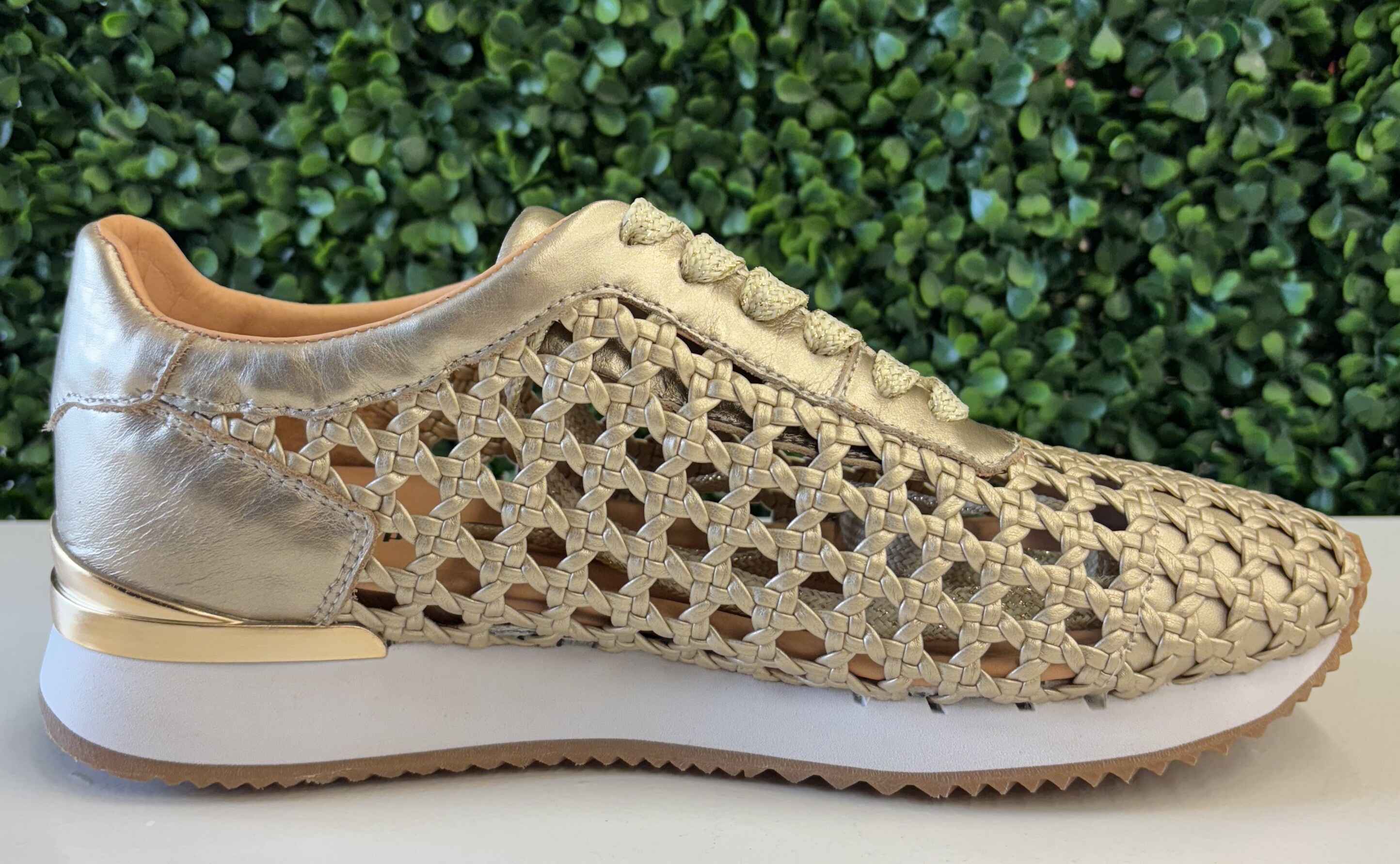 Breathe luxury into your everyday style with our woven statement sneakers.Crafted with an intricate lattice design, these sneakers blend fashion-forward detailing with all-day comfort. Available in two standout finishes — crisp white for a fresh, modern edge and metallic gold for a bold, glamorous touch — each pair transforms a classic silhouette into a head-turning style moment.