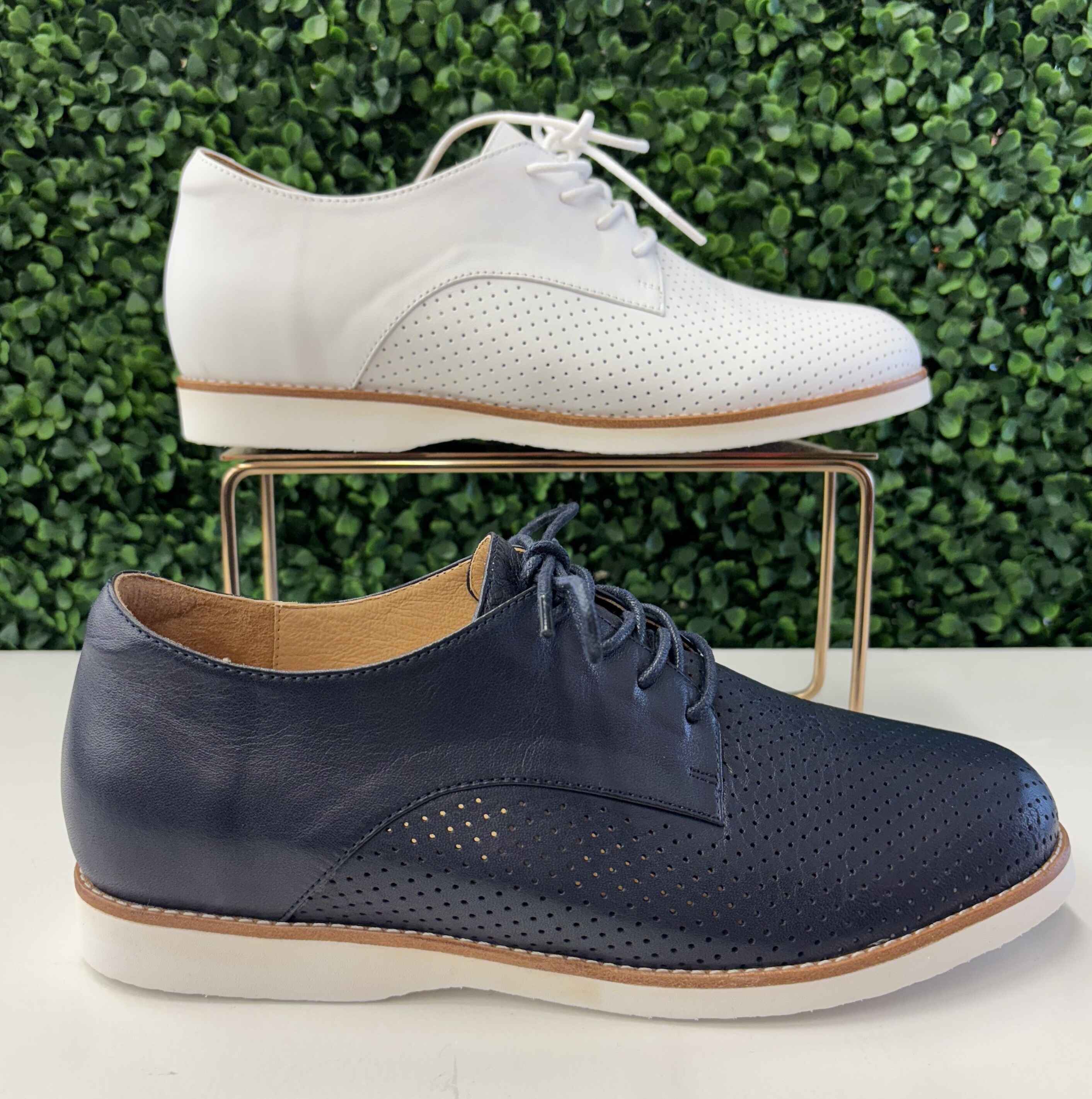 Available in crisp white for a fresh, modern look or deep navy for a versatile, refined option, these shoes are perfect for work, weekends, and everything in between.