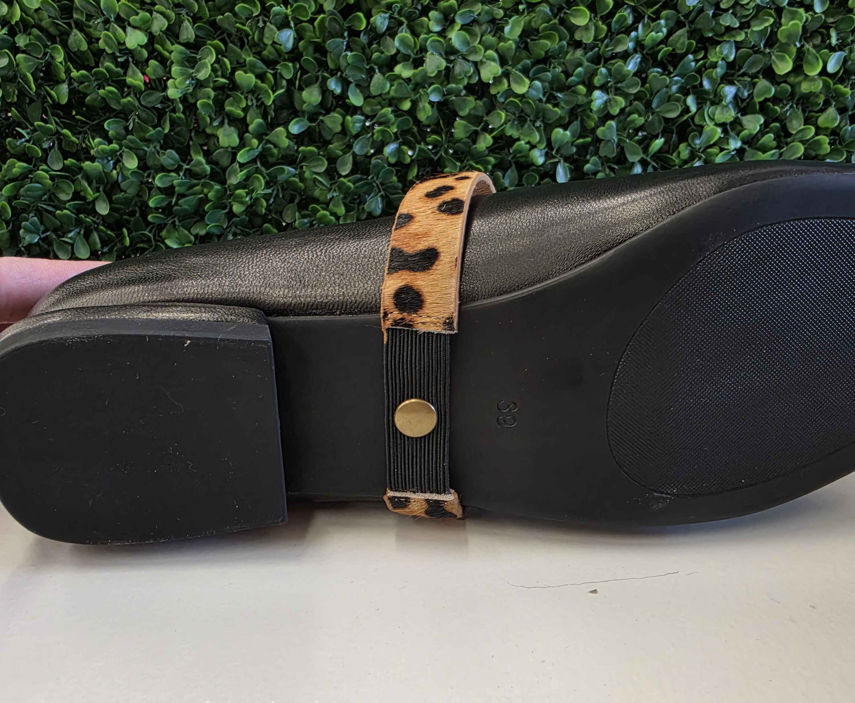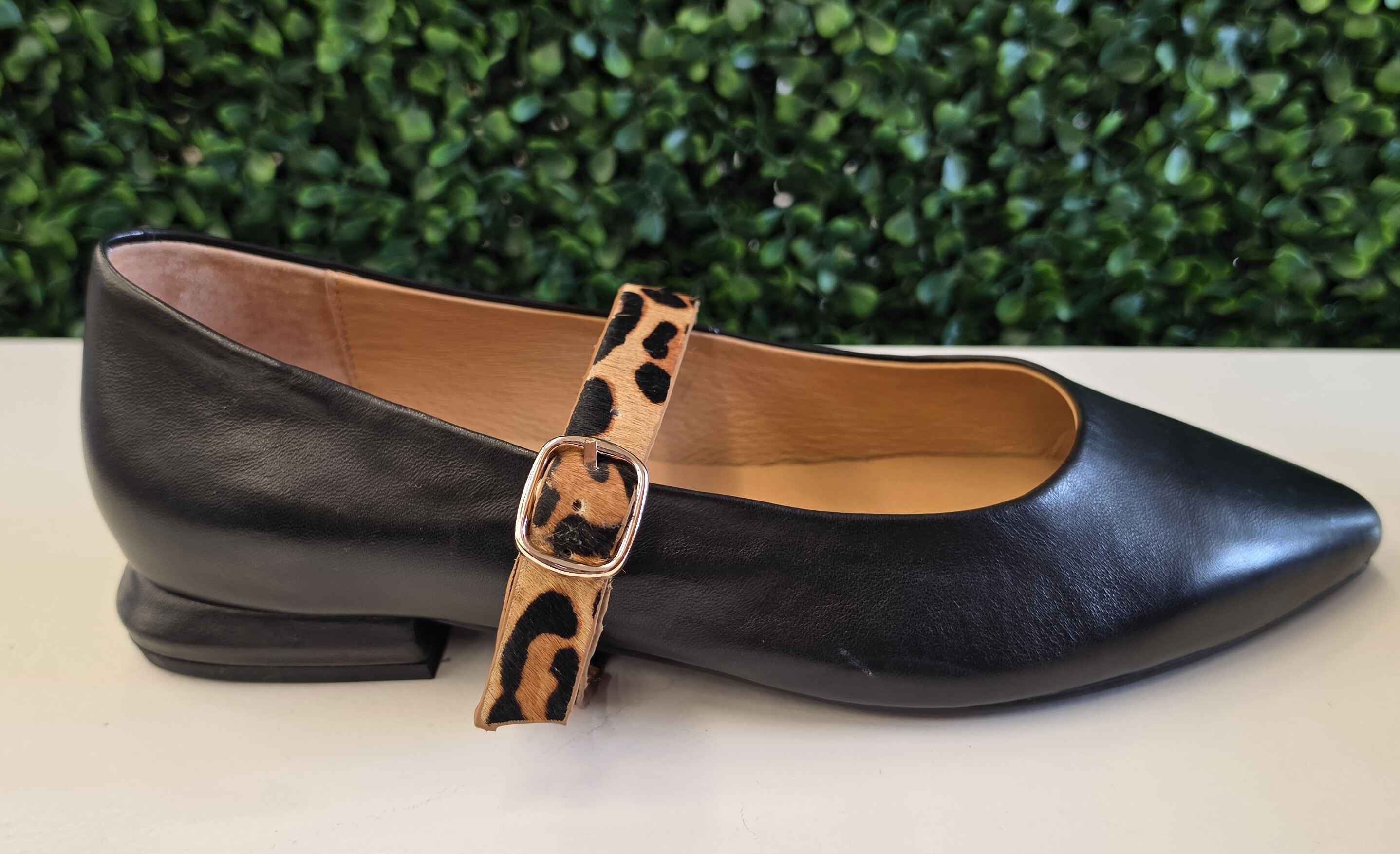 • Wear as a slip-on ballet flat — remove the strap for a clean, effortless look• Plain leather strap — classic and refined for everyday wear• Eyelet strap — adds a soft, feminine detail• Leopard print strap — bold and playful for a statement finish