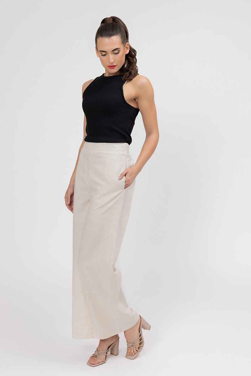 Elegant and versatile, these wide-leg trousers are crafted from lightweight fabric for all-day comfort. Designed with a flattering high-rise waist and a relaxed silhouette, they drape beautifully and elongate the legs. Perfect for both work and weekend wear, they come in timeless black and a fresh natural beige, making them a wardrobe essential.