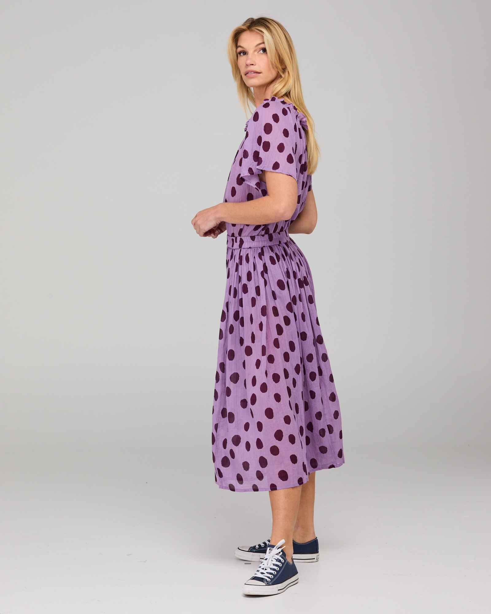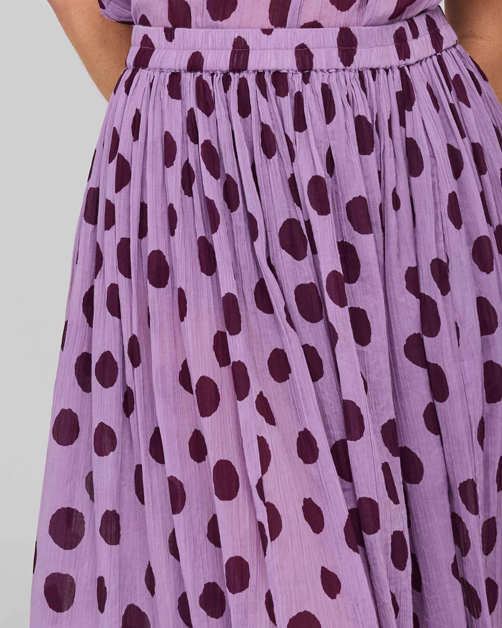 Fit notes: Full skirt, falls to mid-calf. Our model is 175cm tall with 81cm bust, 61cm waist, 86cm hips and wears a size 8/XS.