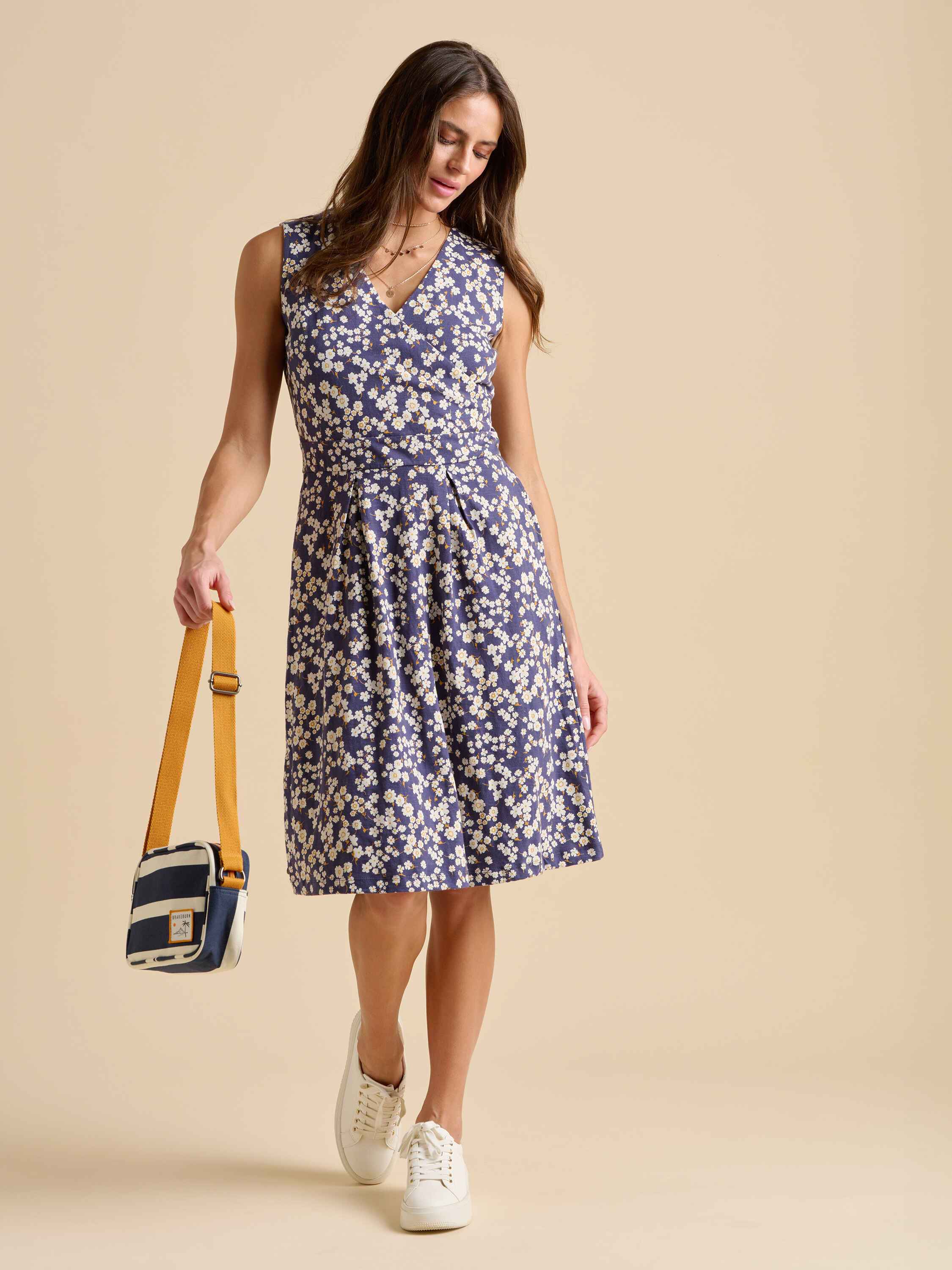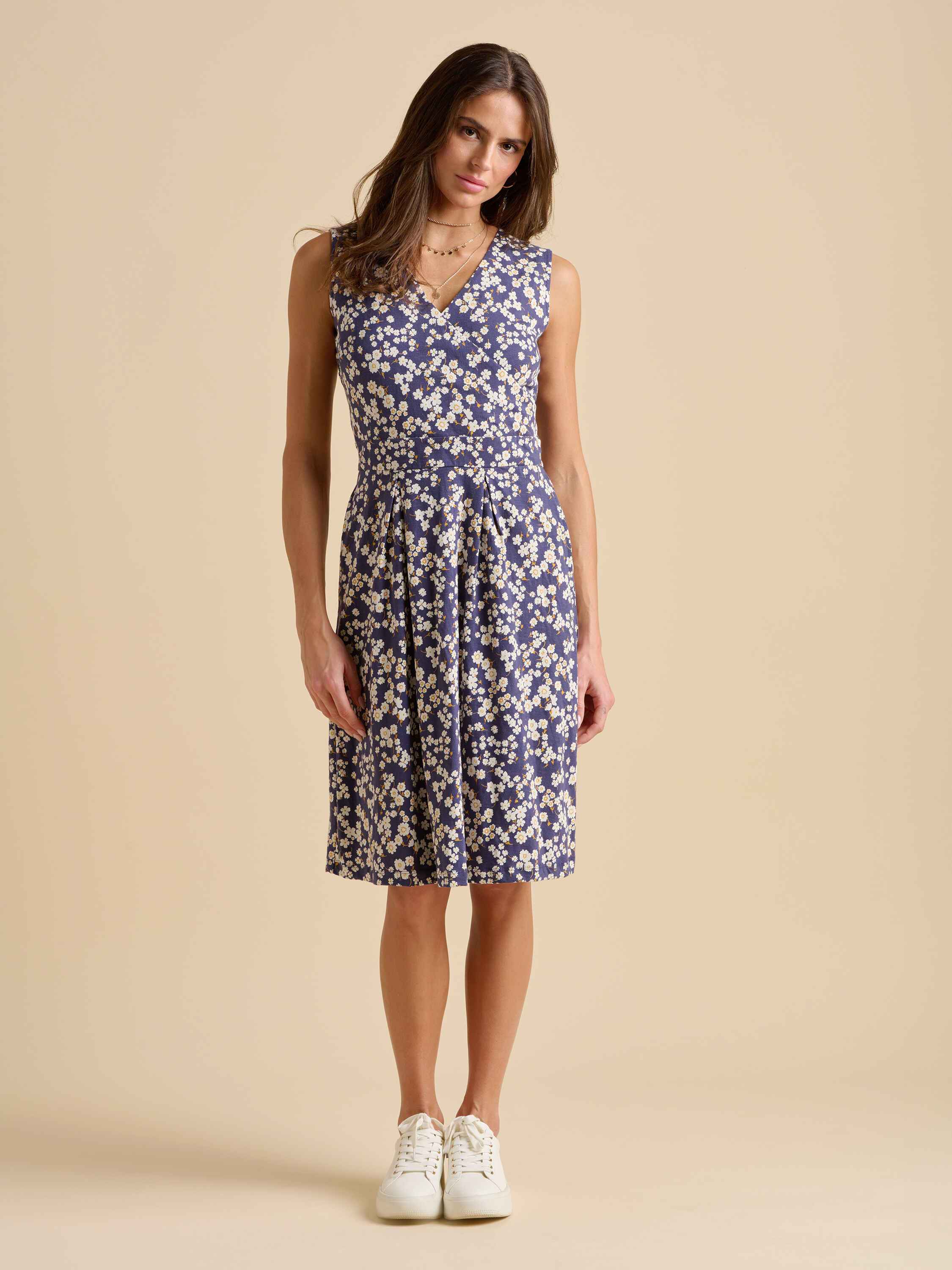 Say hello to your new summertime favourite. With a wrap bust and flattering pleats on the waistline, this dress creates a beautiful shape. Walk through botanical gardens in florals, paired with white sandals and gold accessories.100% Cotton