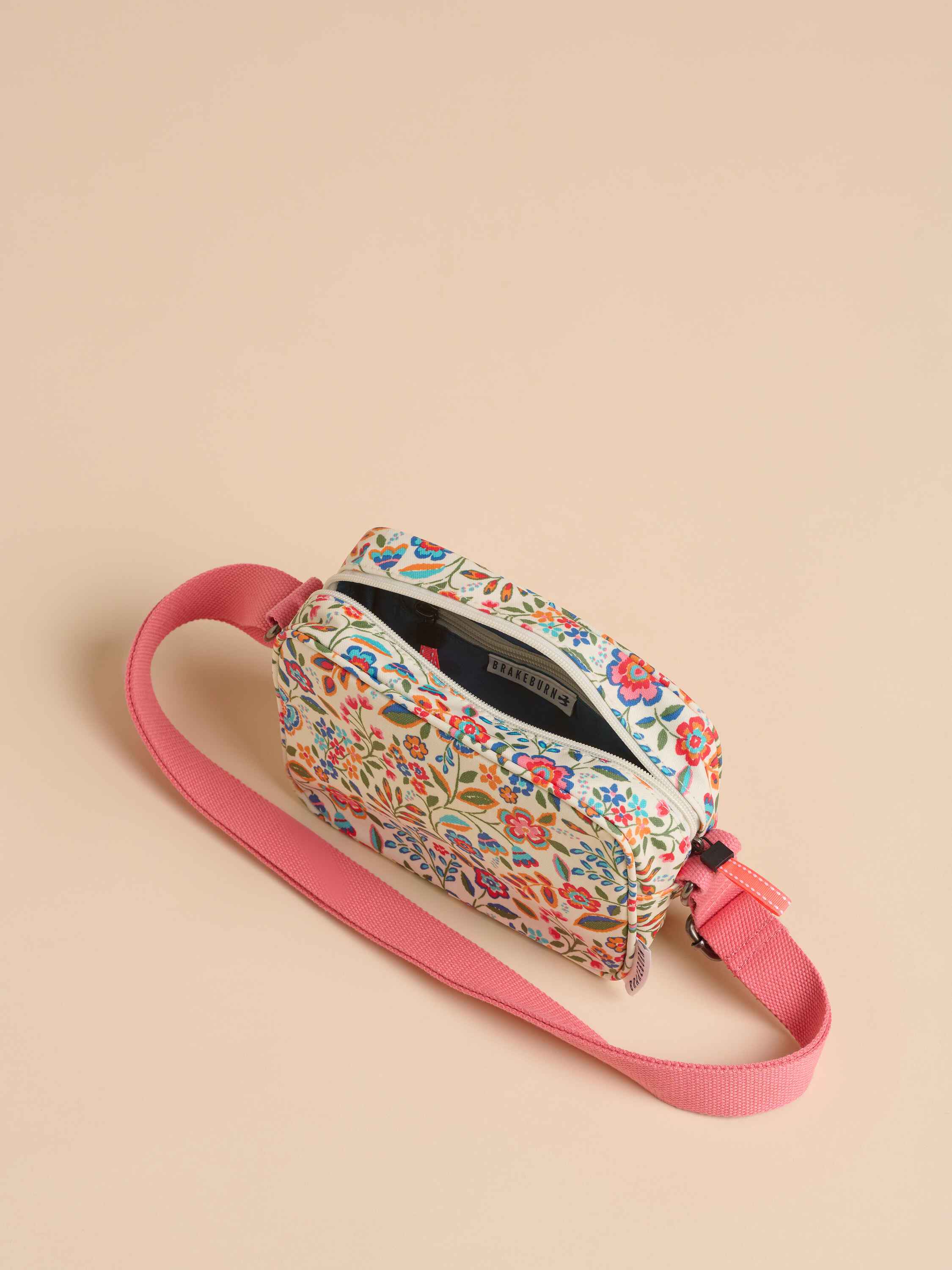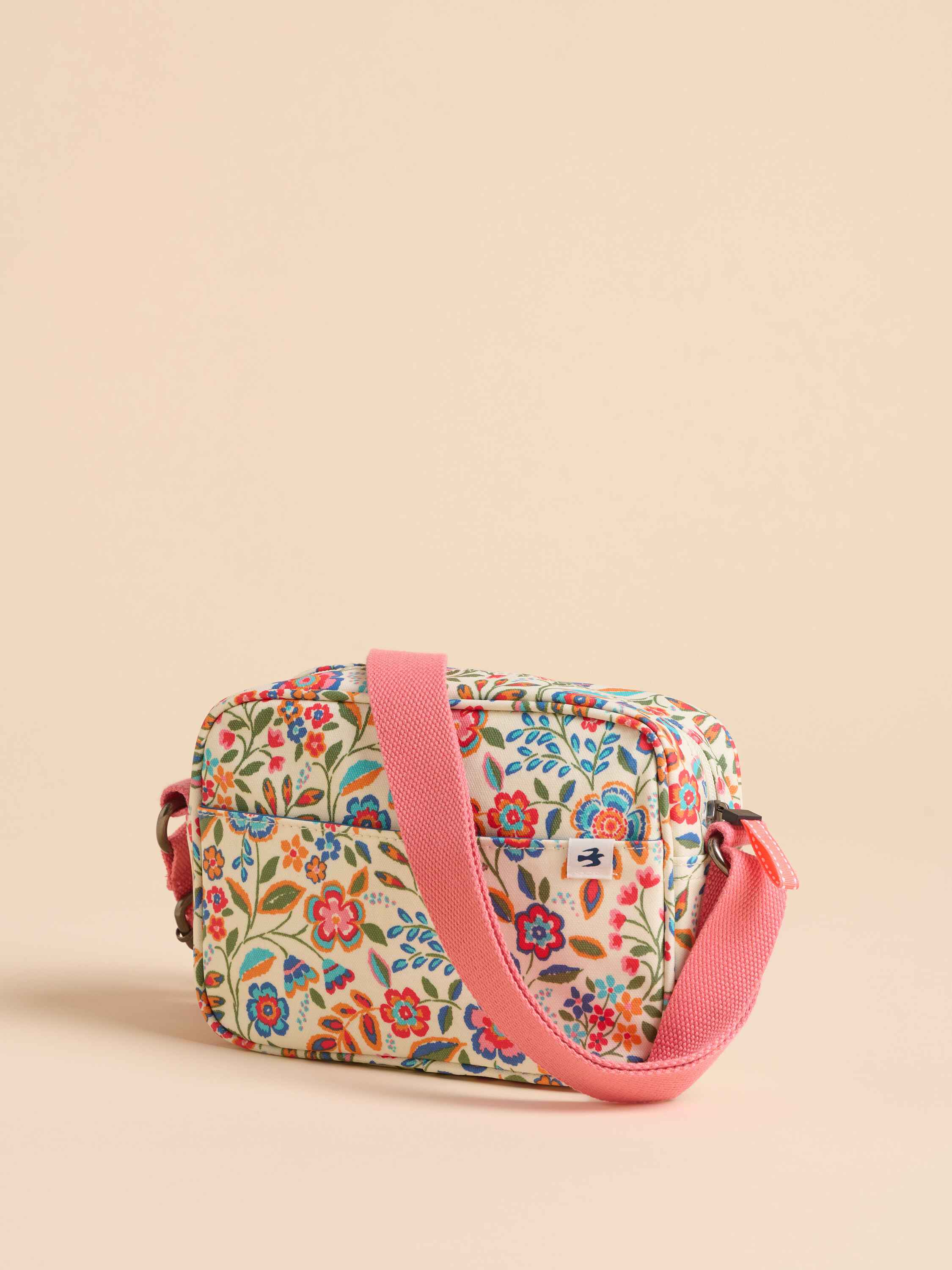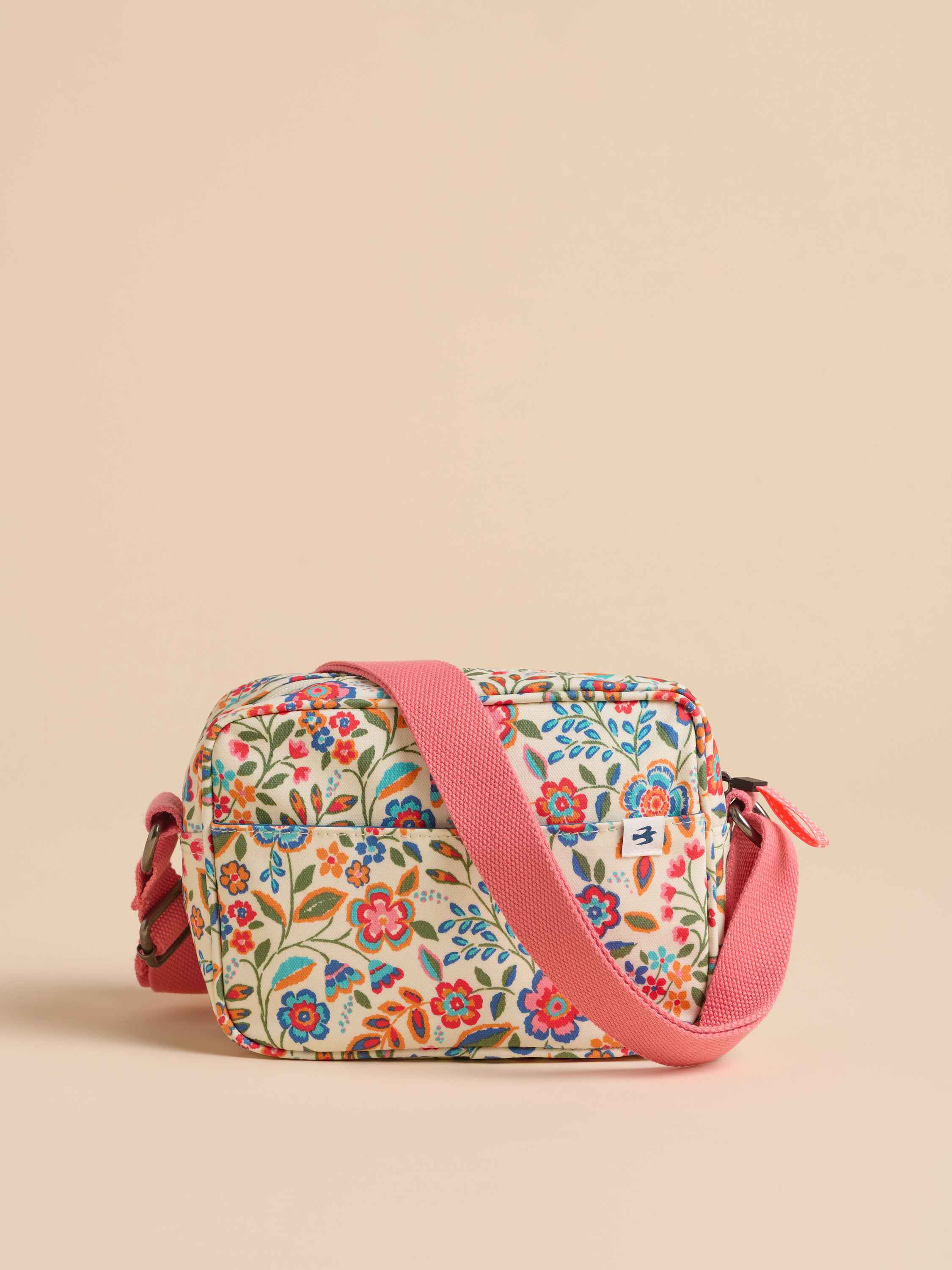 Adjustable Strap: Wide pink canvas crossbody strap for all-day comfort and a pop of contrast.
