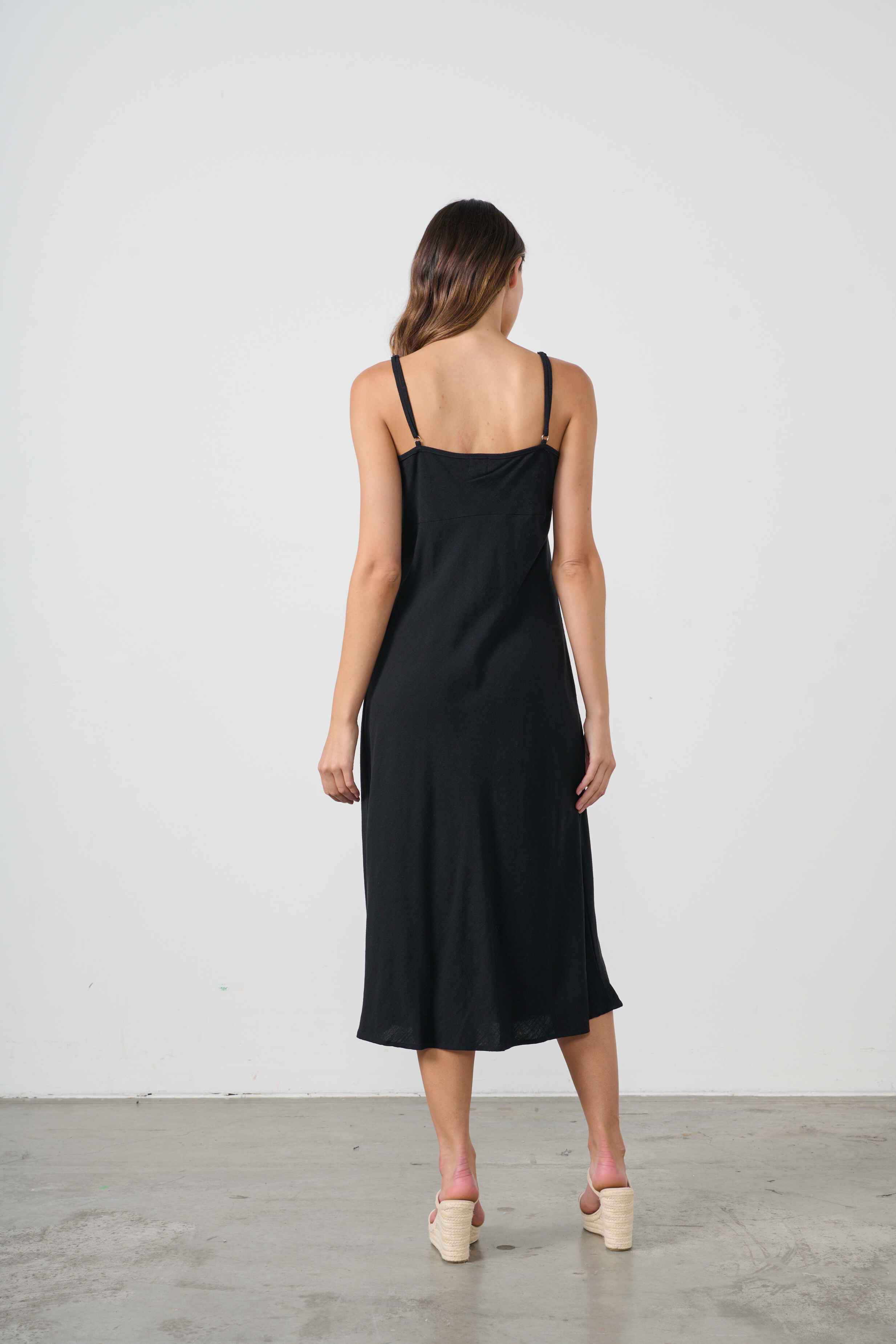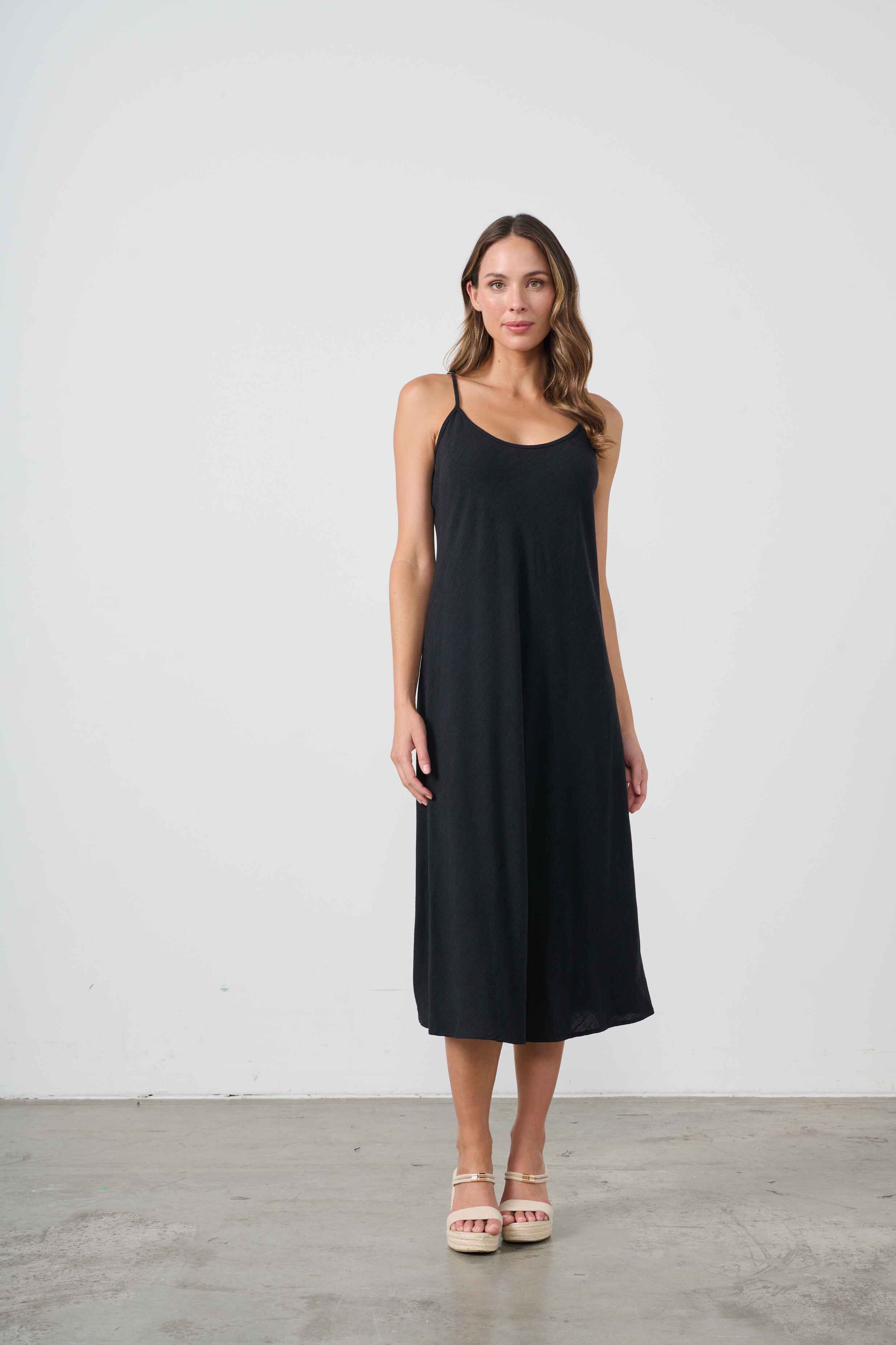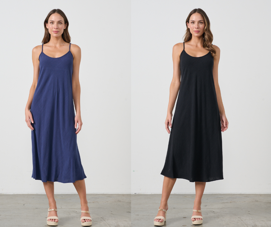 Crafted from a soft, lightweight fabric, this dress is perfect for warm days on its own or as a base layer under your favorite jacket or kimono. Available in classic Black and elegant Navy, it’s the ultimate go-to for effortless styling—whether you’re heading to the beach, enjoying a casual day out, or dressing it up for an evening look.