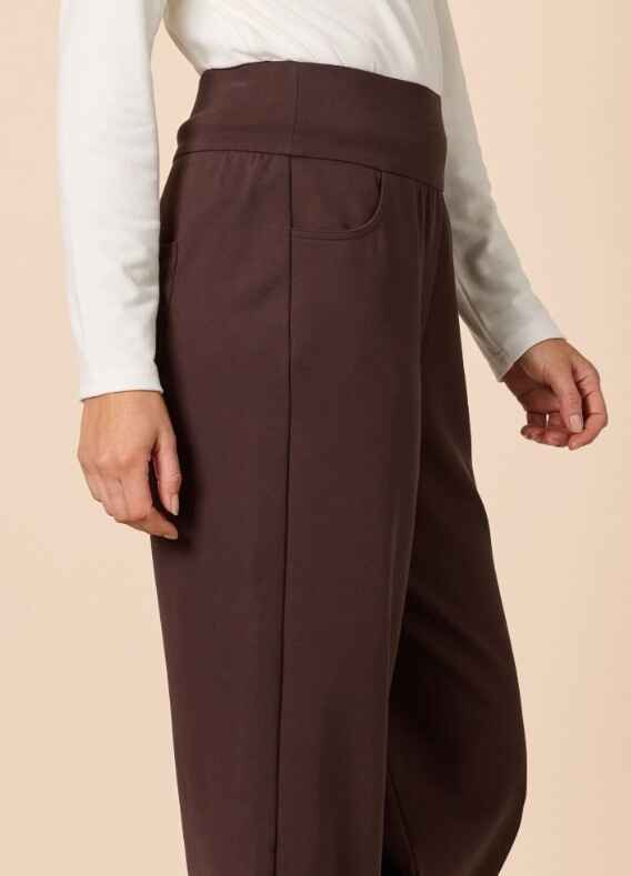 Crafted from luxe ponte fabrication with comfortable two-way stretch, Kimmy offers structure without stiffness, holding its shape beautifully throughout the day. The wide leg falls effortlessly from the hip, delivering a modern, elongating finish that works from office hours to off-duty styling.