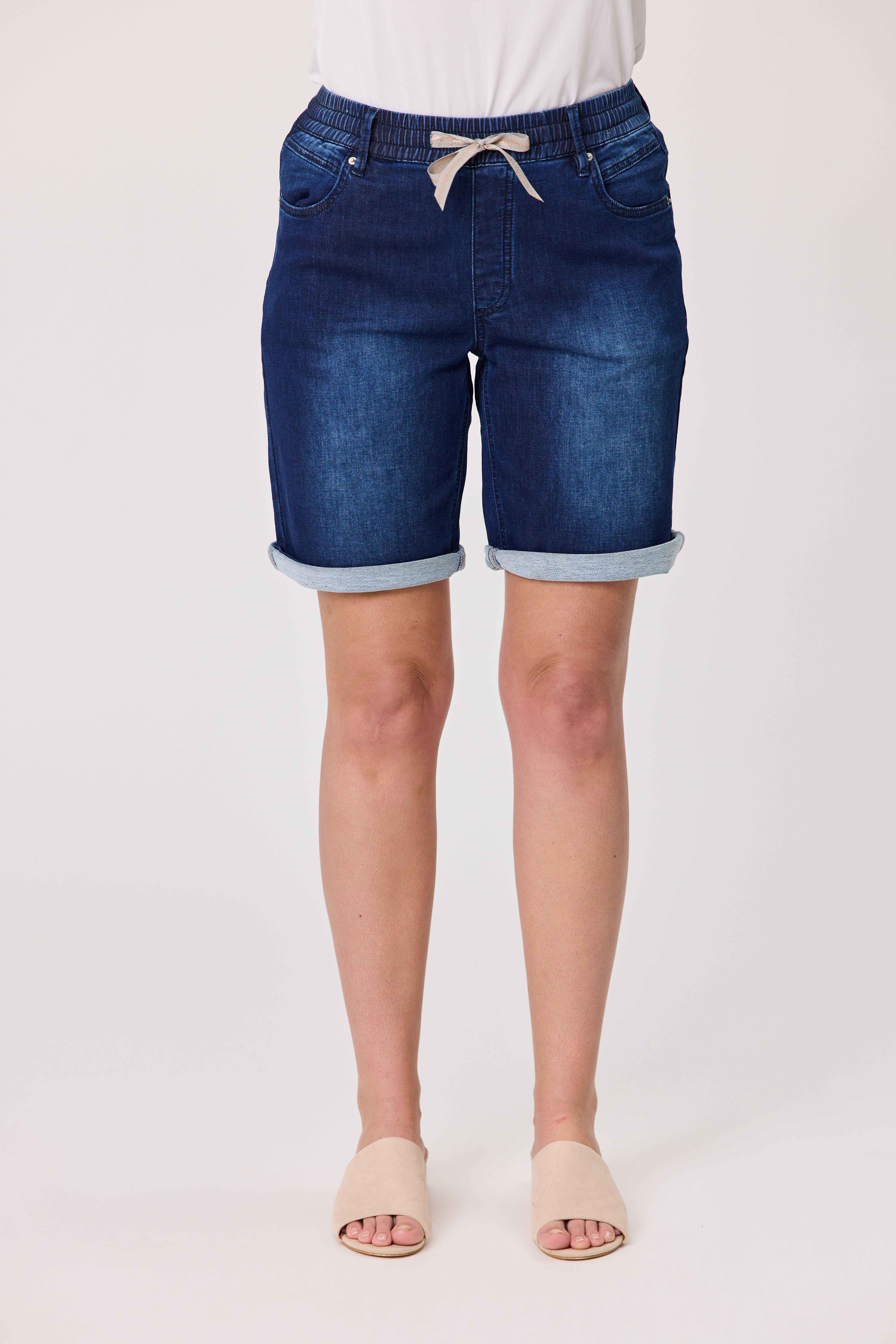 A contemporary take on the kniit denim short, ideal for casual sophistication.