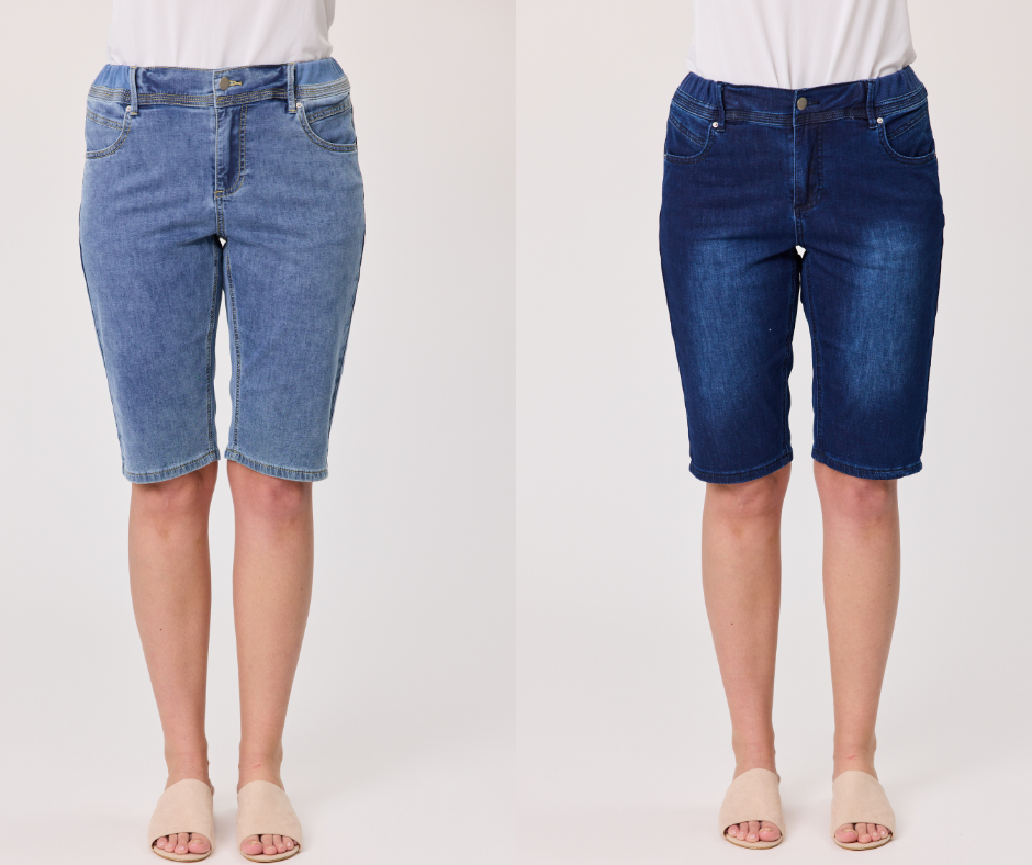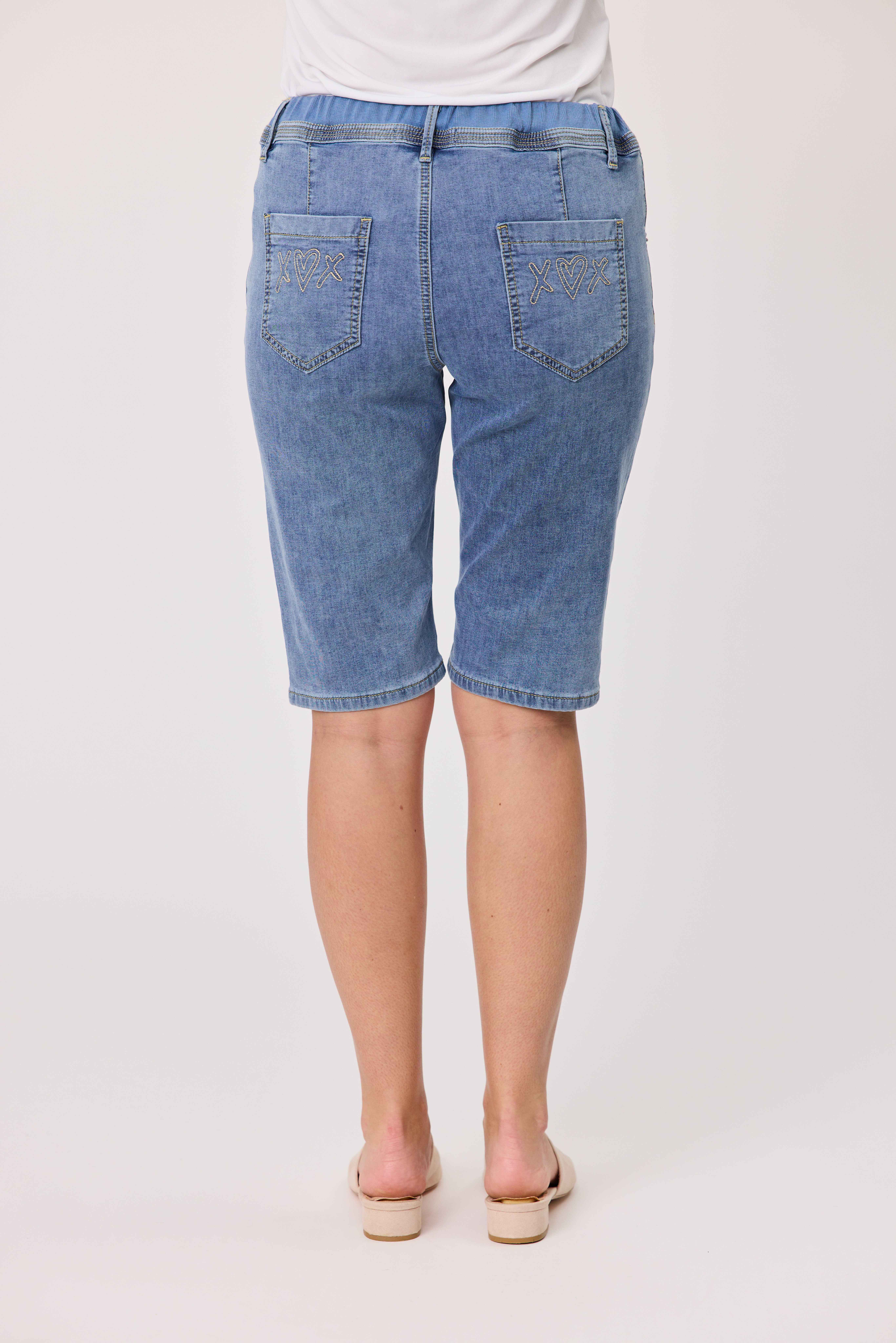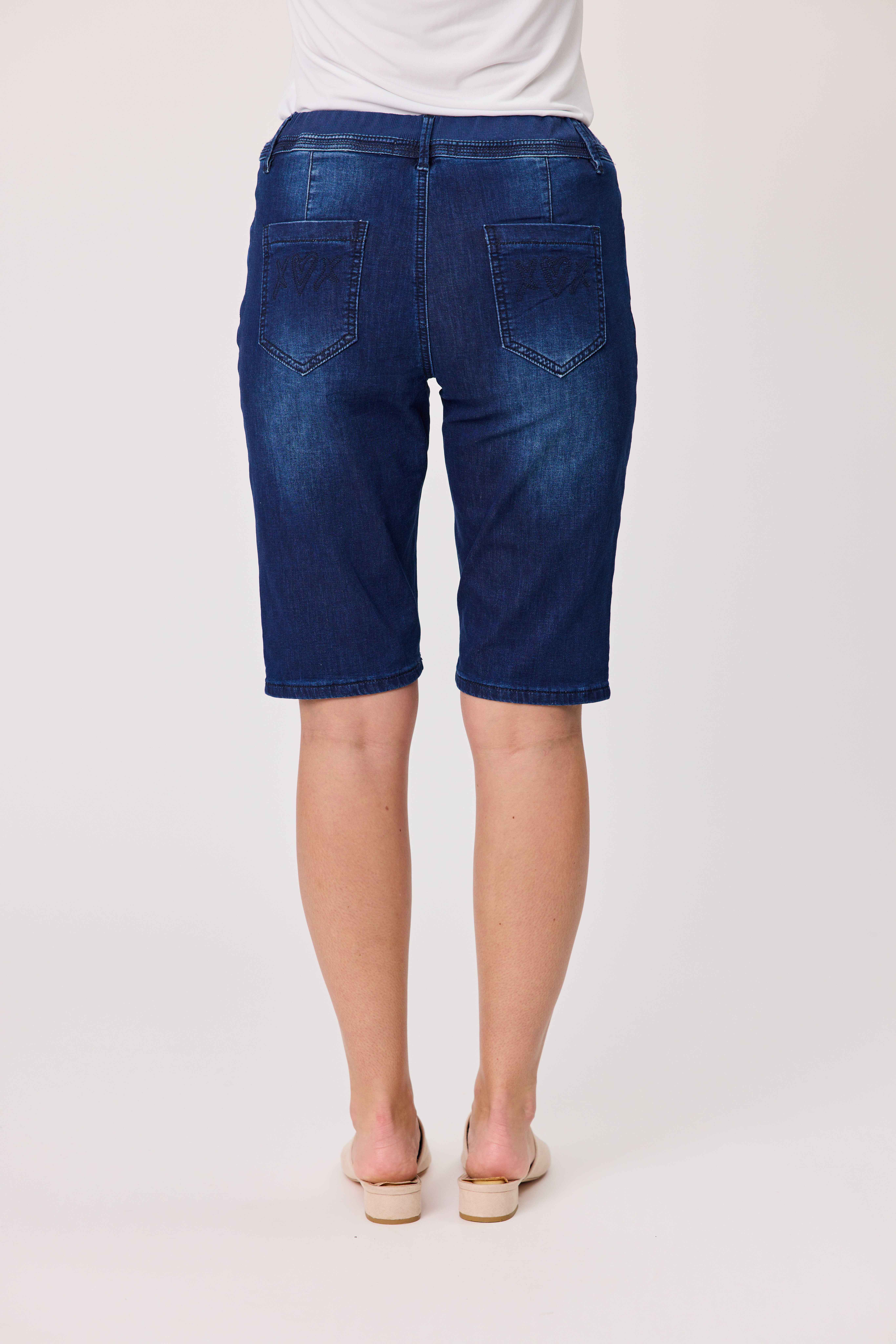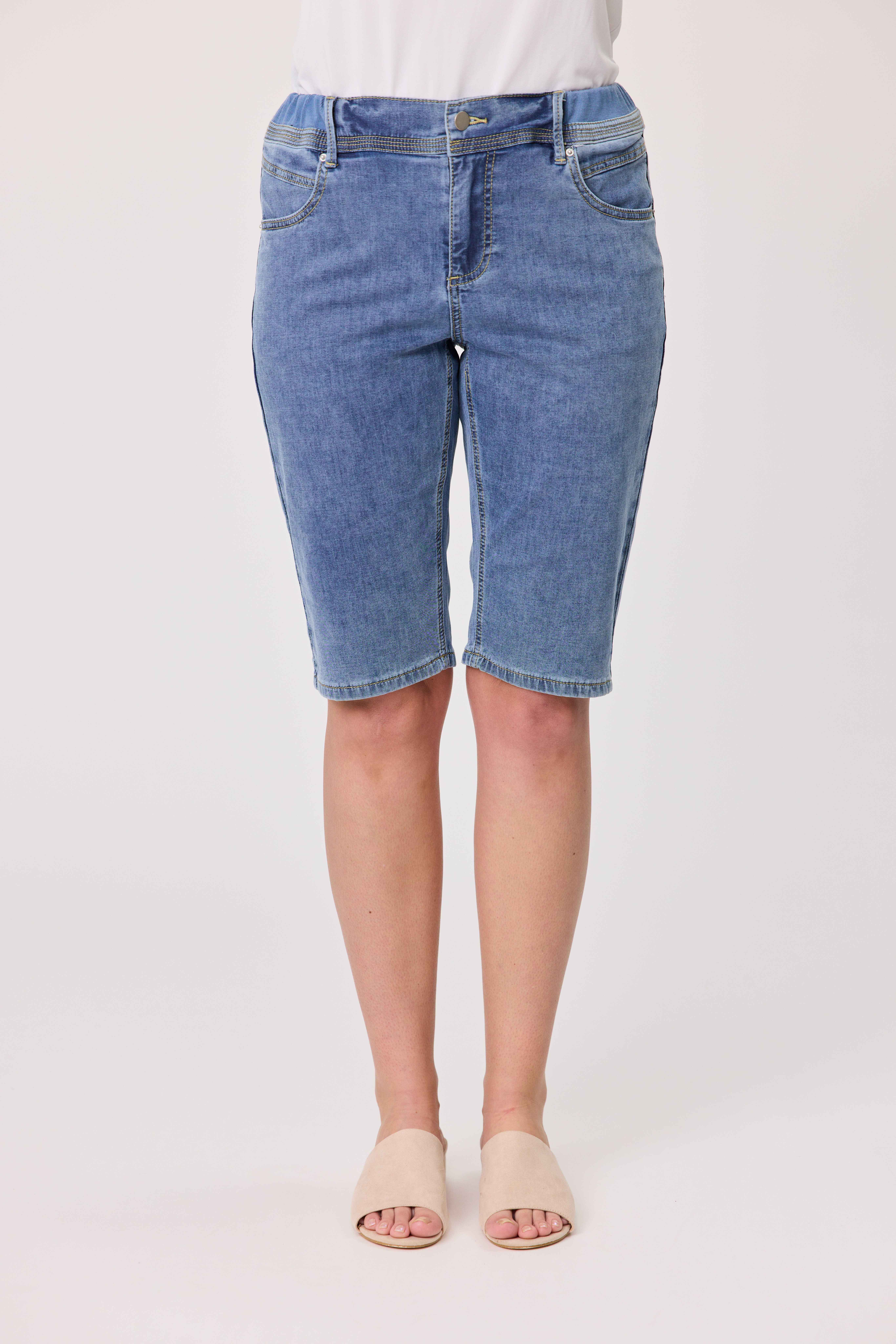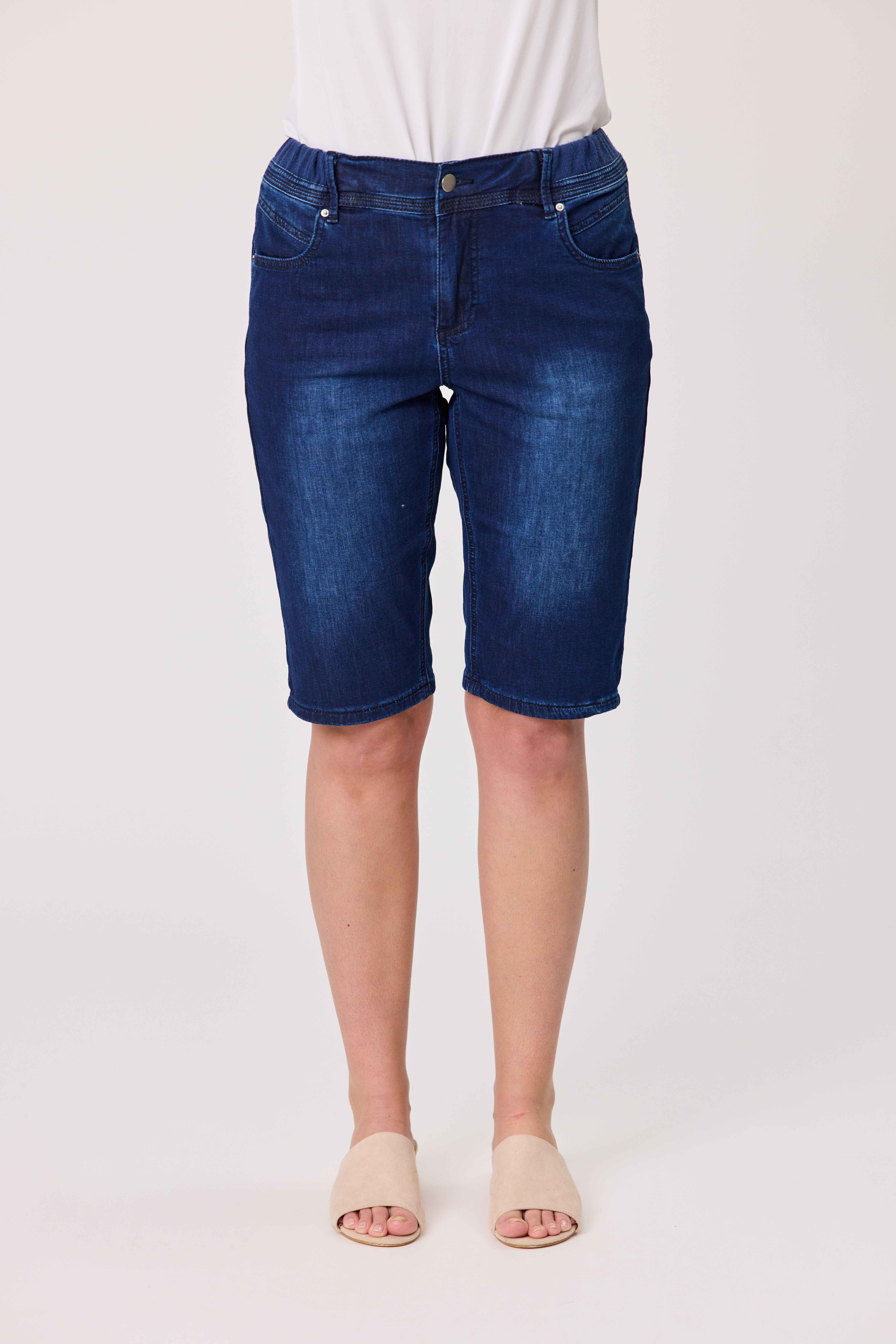 A contemporary take on the long length knit denim short, ideal for casual sophistication.