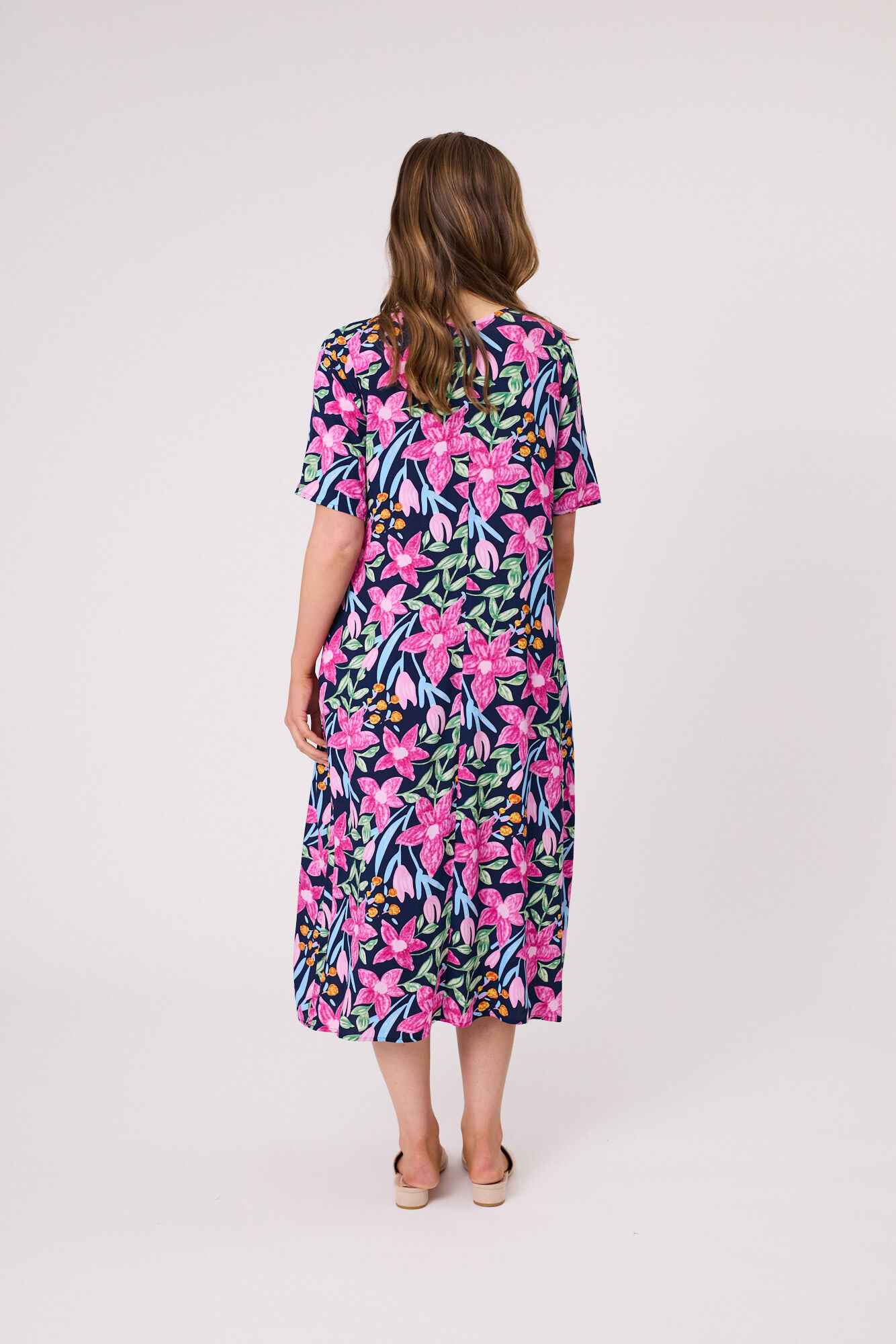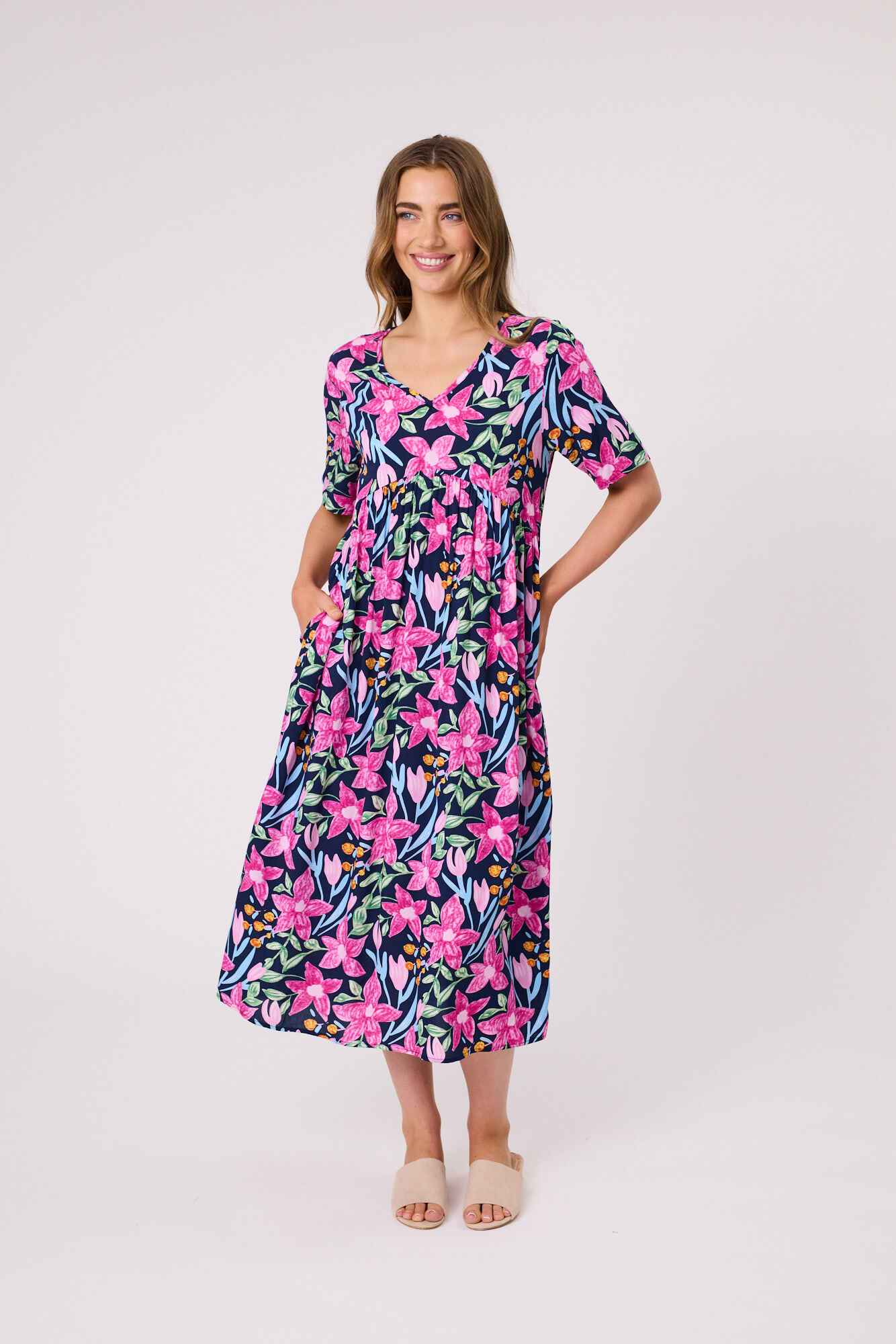 A stylish V-neck dress with matching V-back detail, finished with practical side pockets for an effortlessly chic look.100% Viscose