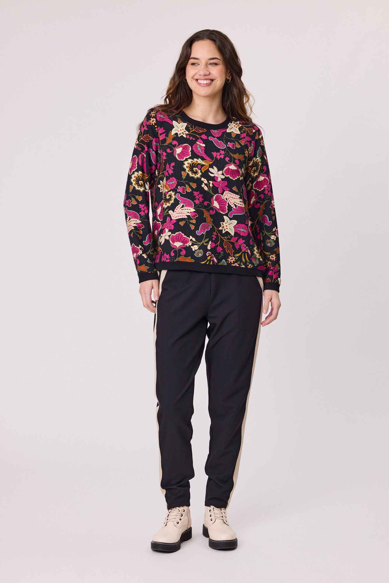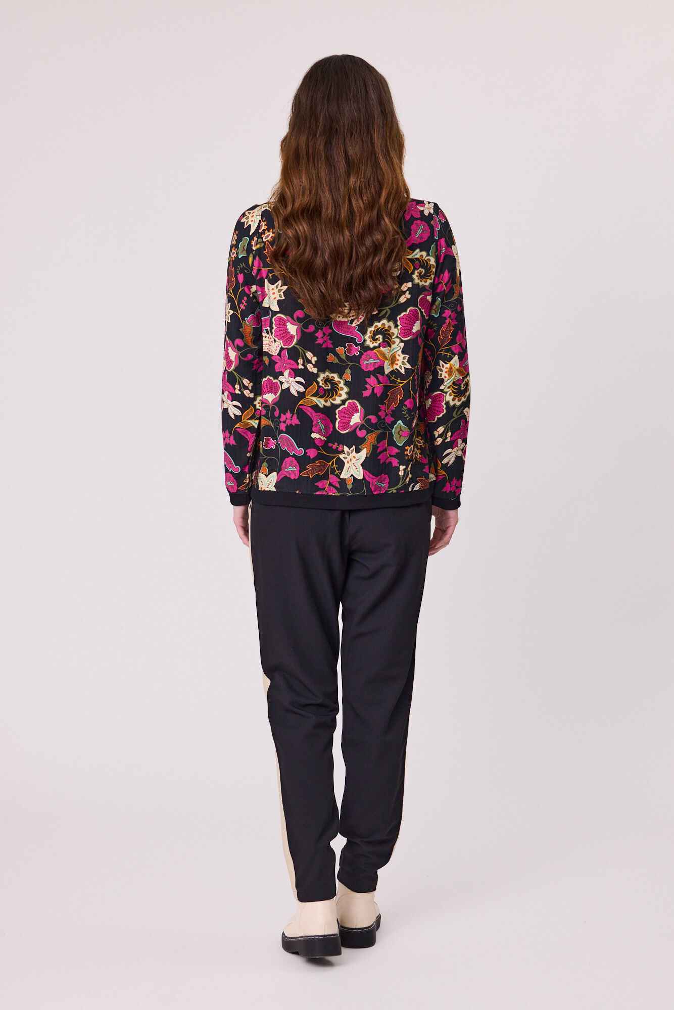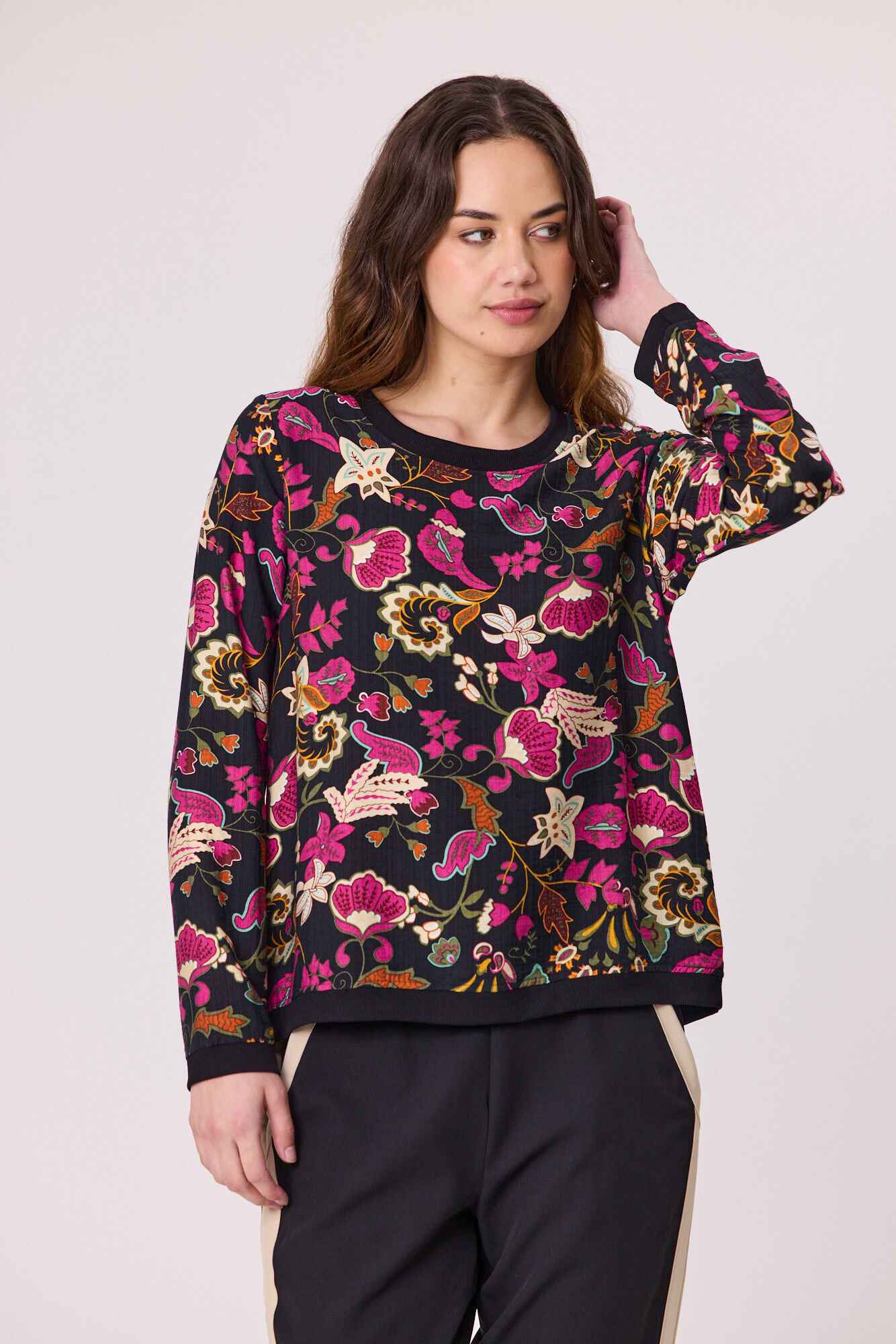 A stylish printed woven top featuring ribbed cuffs, neckline, and hem for a comfortable yet structured fit. Designed with a modern silhouette, it’s perfect for effortless everyday wear while adding a touch of detail to your casual look.