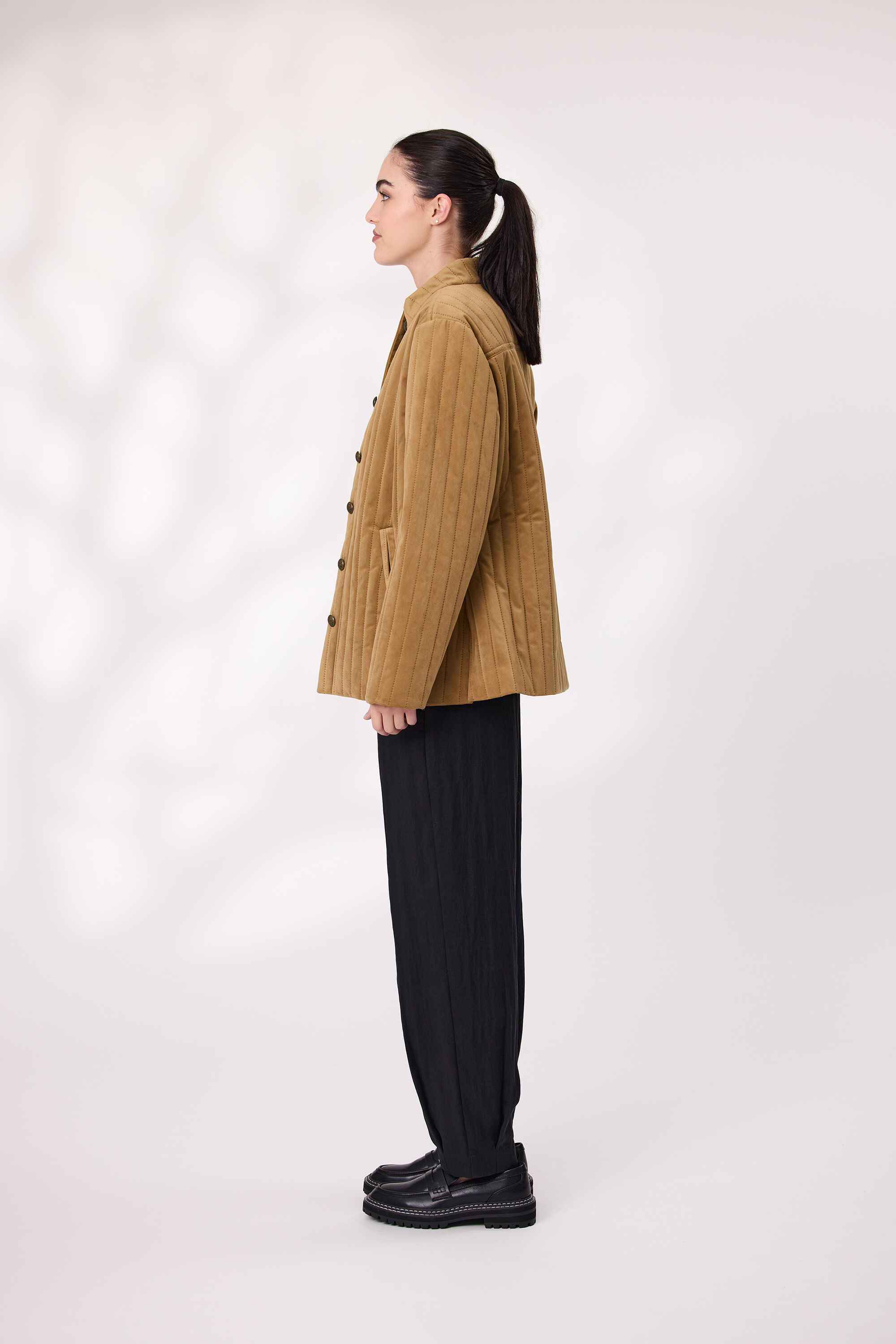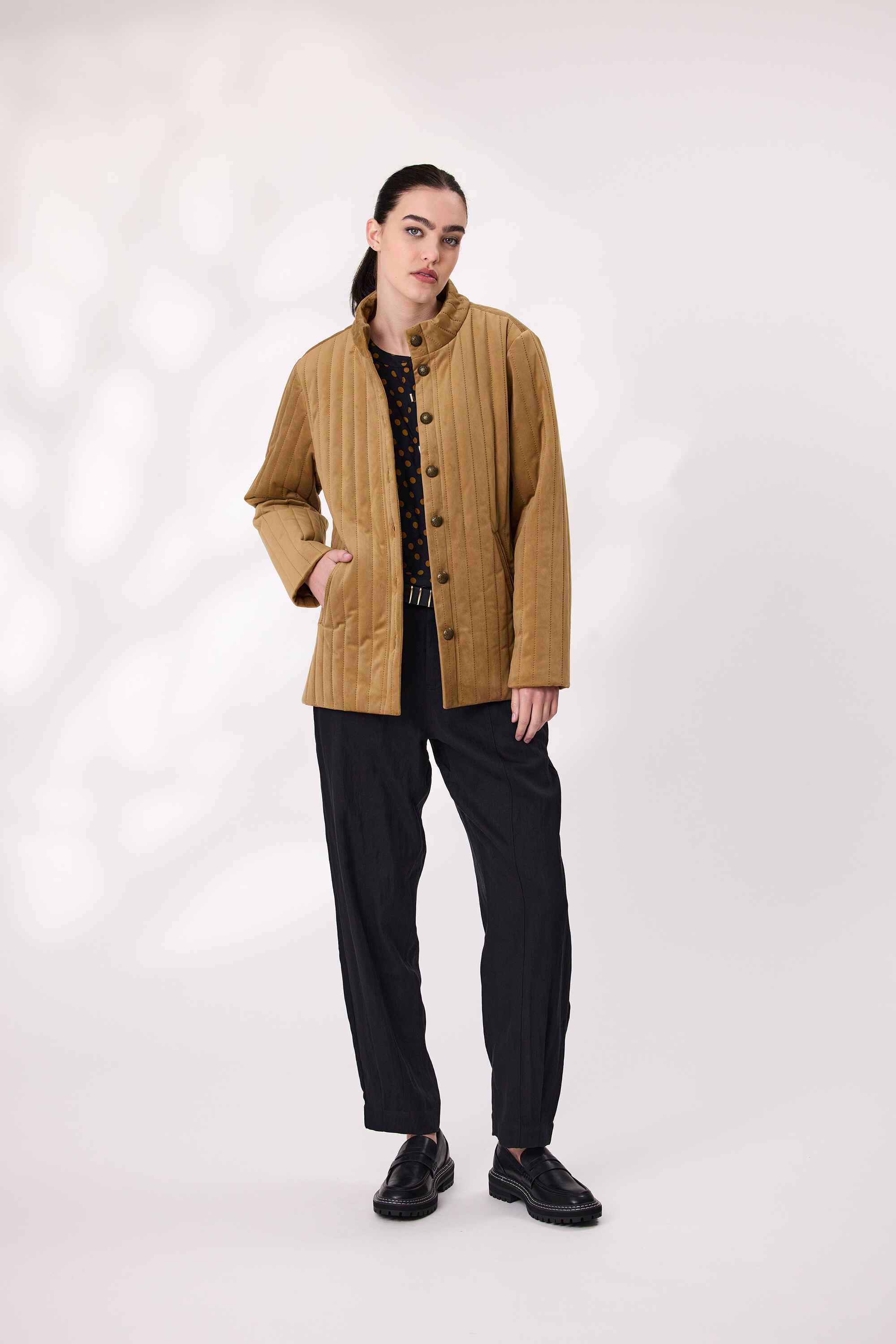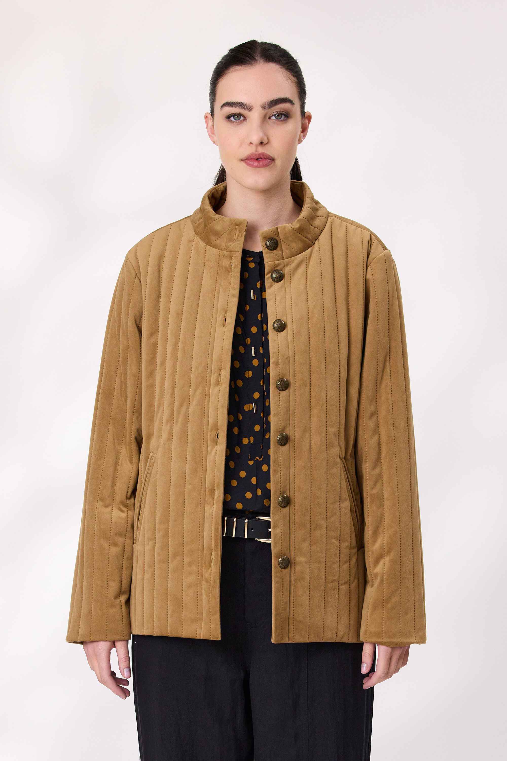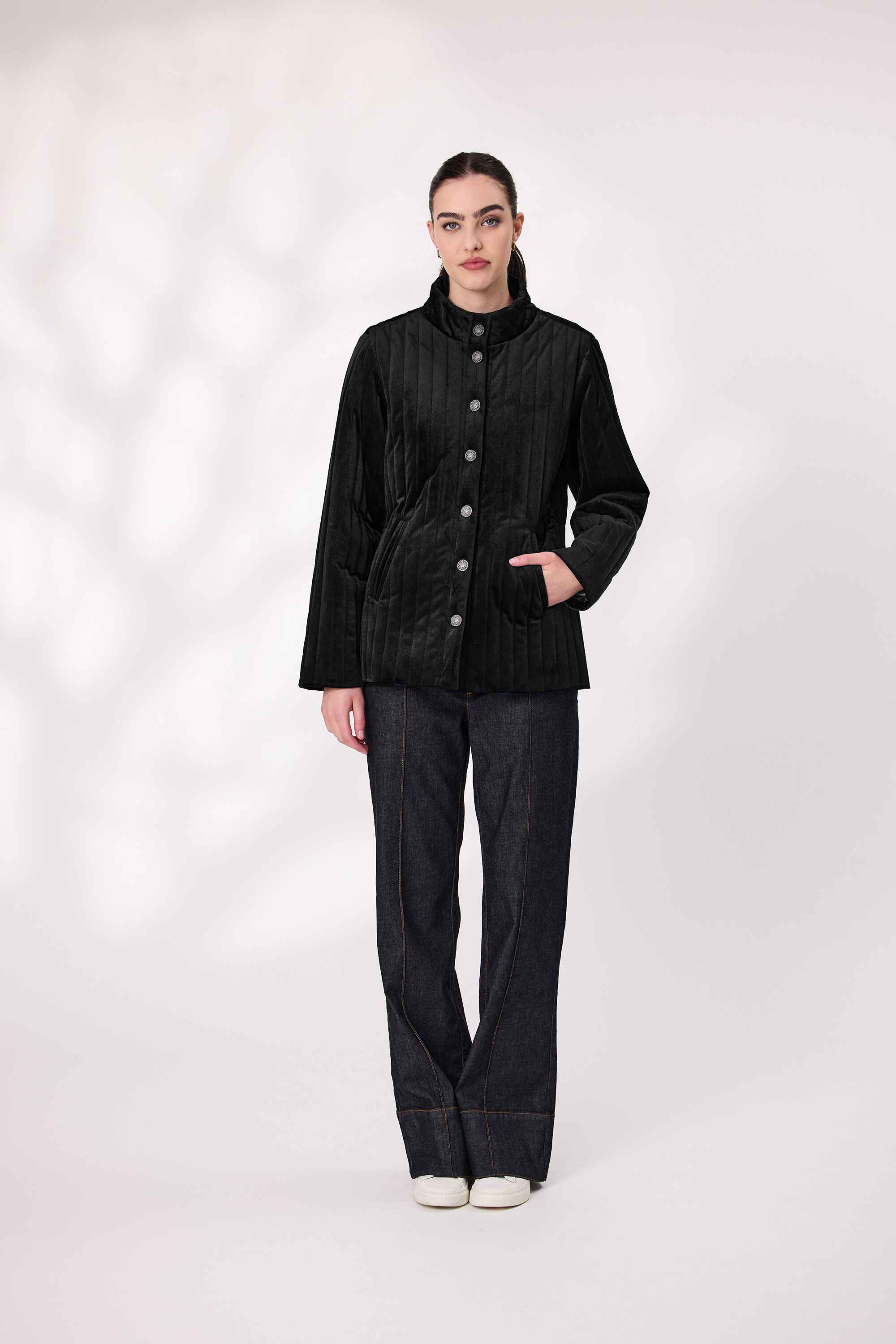 Elevate your outerwear with this quilted velvet jacket, designed for comfort and sophistication. Featuring a soft velvet finish, full lining, classic button-up front and front pockets. The structured collar and quilted texture add timeless appeal. Ideal for cool-weather styling.