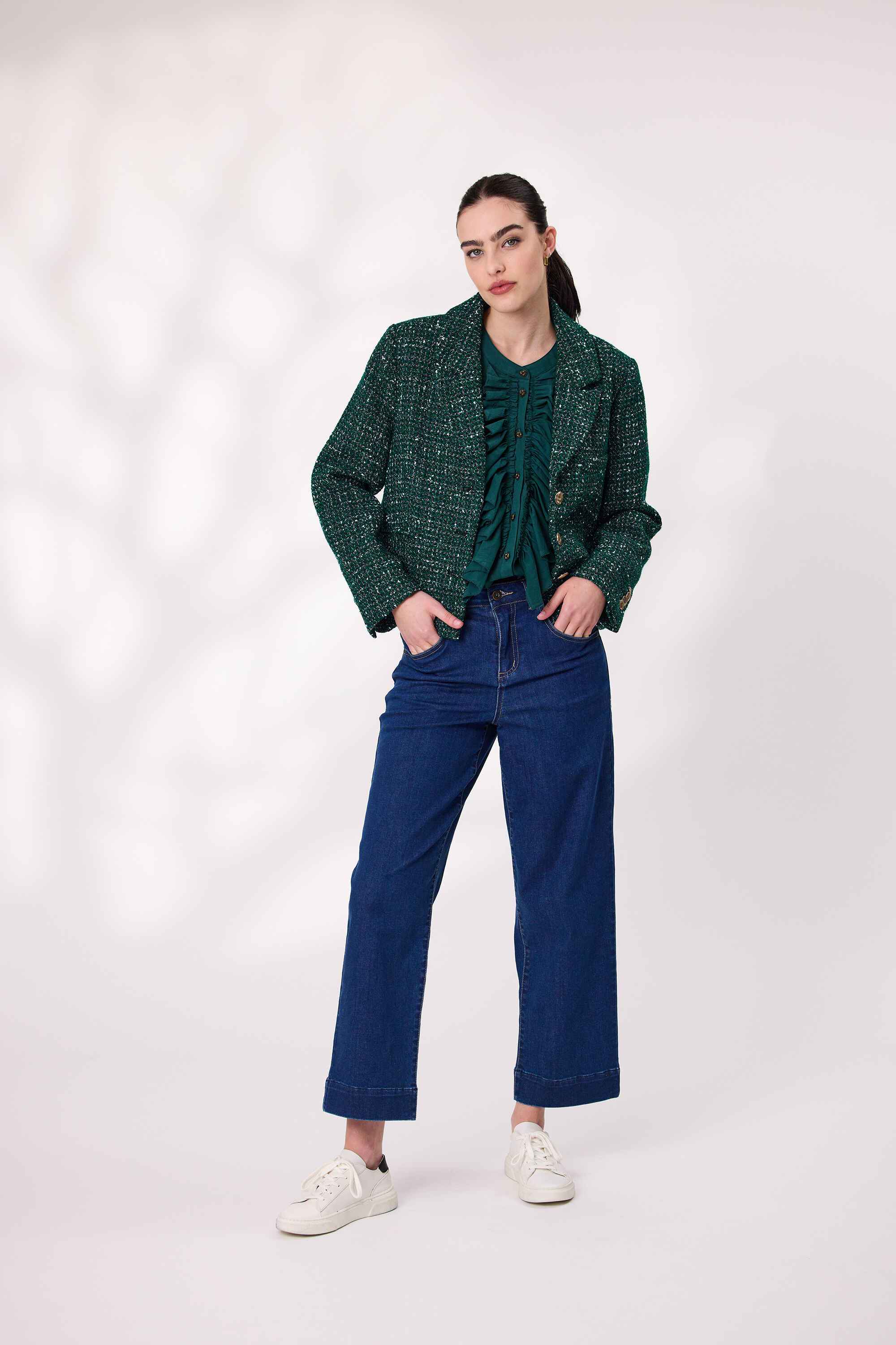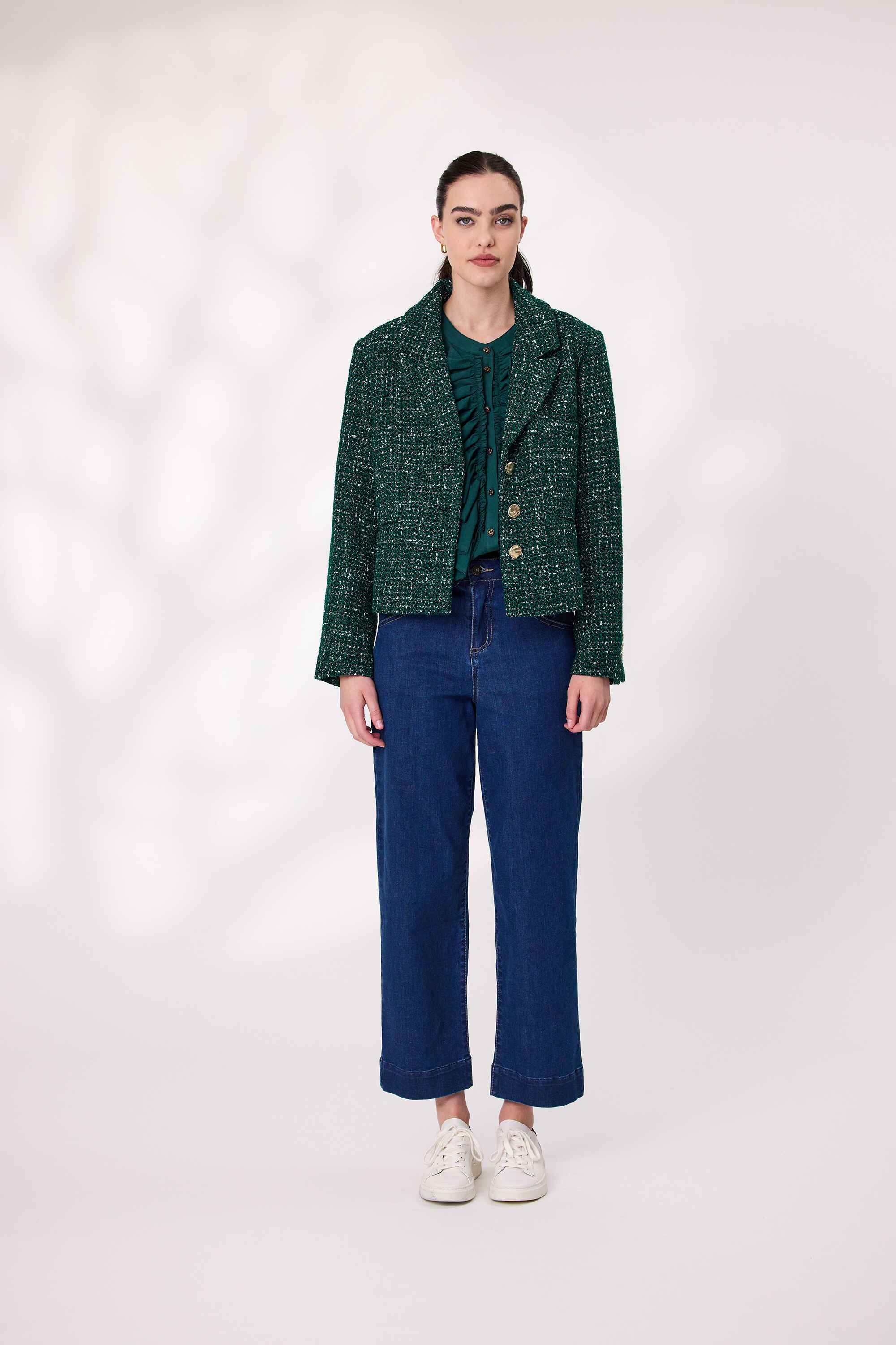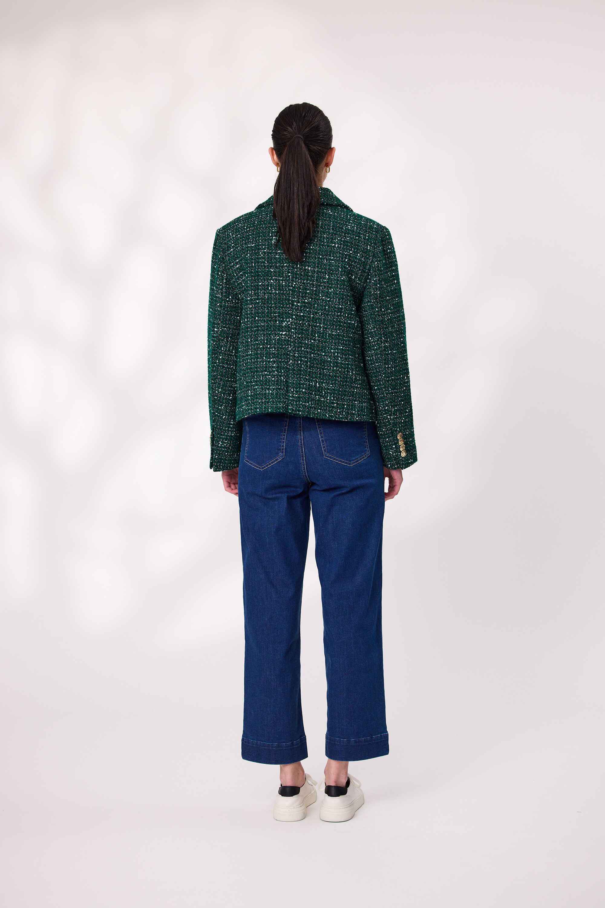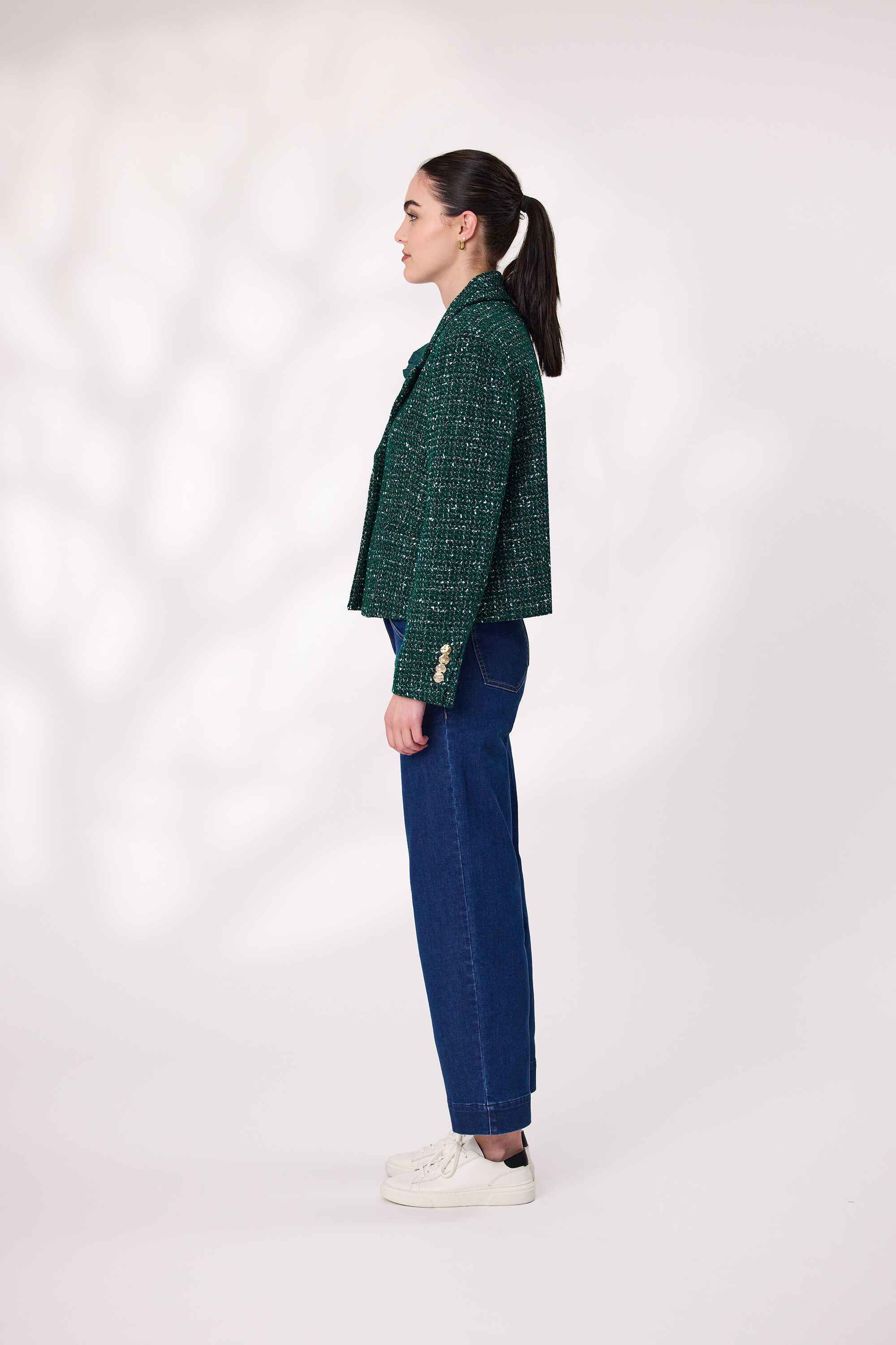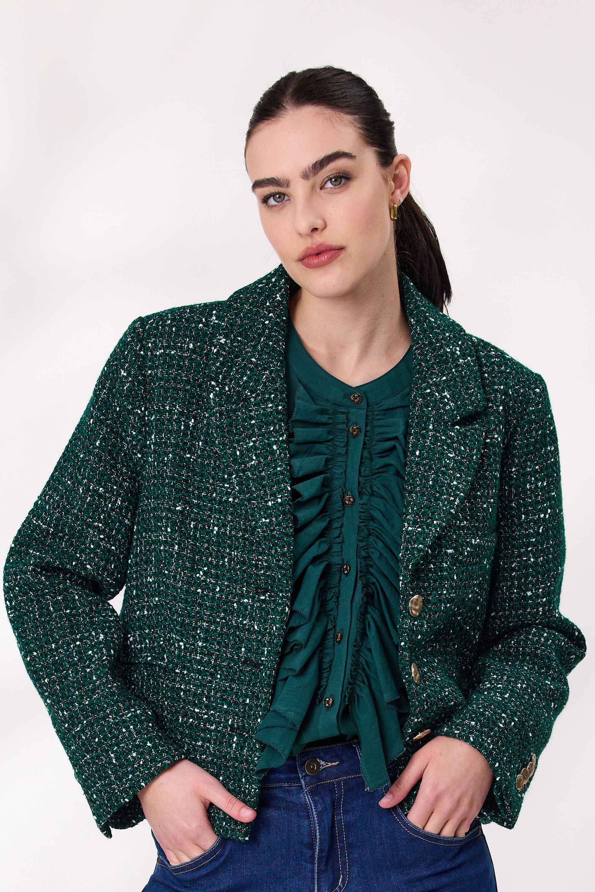 Layer up in style with this textured Hunter green jacket, designed for comfort and a polished look. Made with a fully lined interior with button front and classic collar give it a timeless feel, while the long sleeves and tailored fit make it easy to pair with anything from denim to dresses.