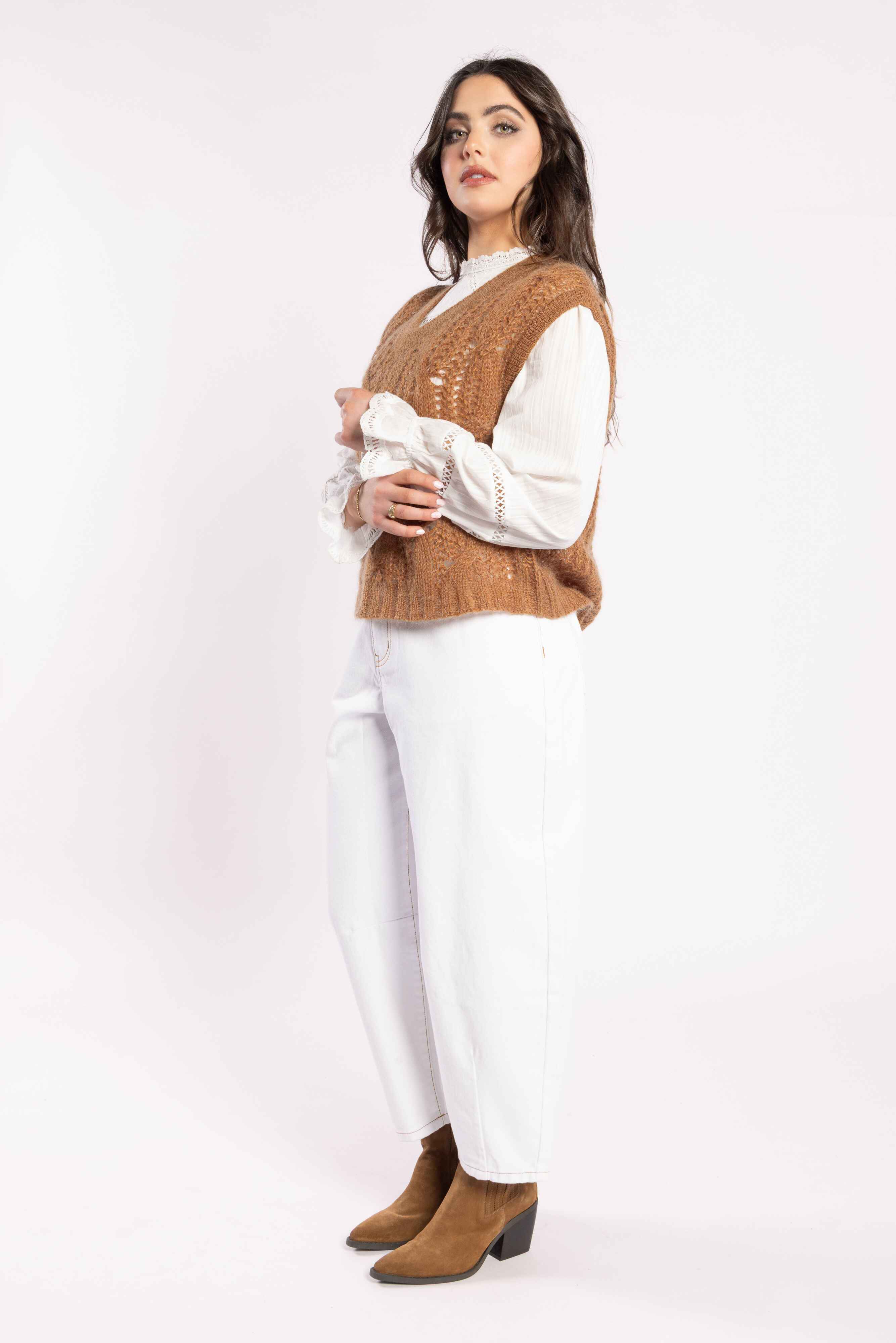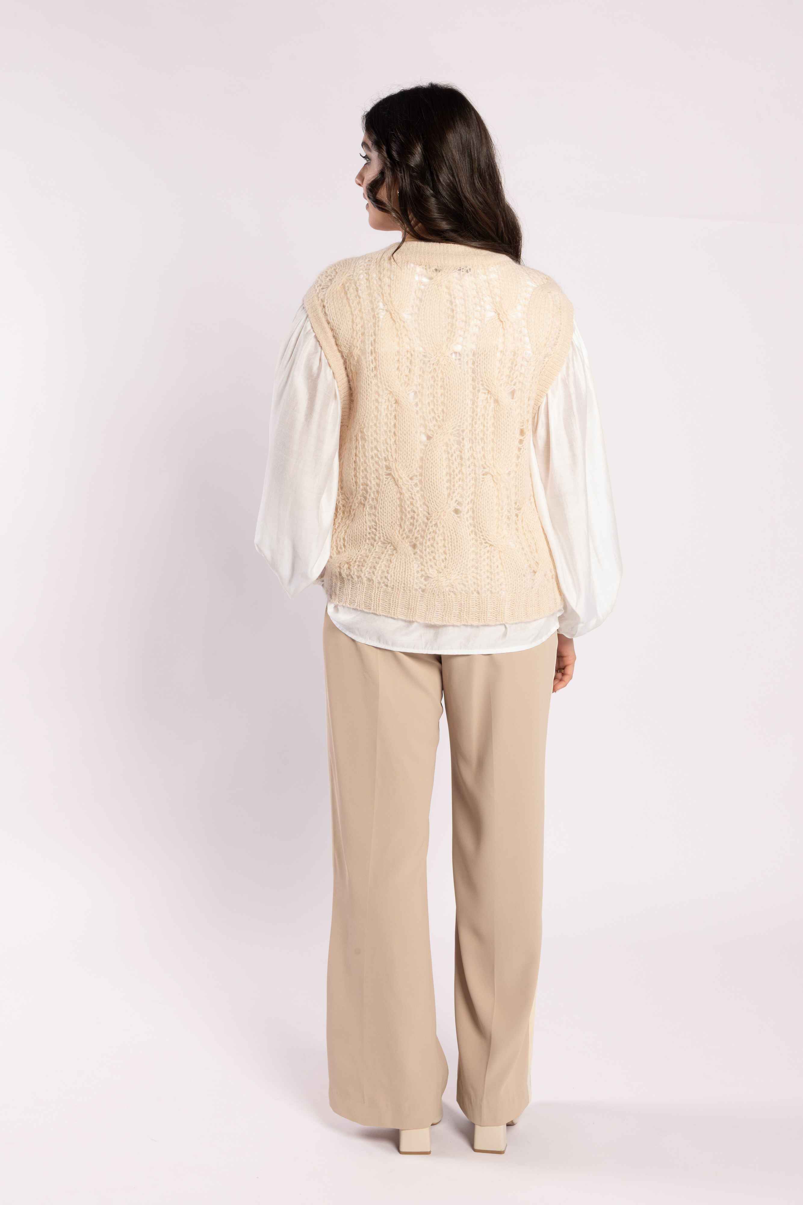 Cozy, chic, and designed in New Zealand, the Fliss Vest in Blush is your go-to knit layering piece. Featuring a cable-front design and a soft, warm blend of mohair, wool, and polyamide, it’s perfect for styling over shirts or tops for effortless everyday style.