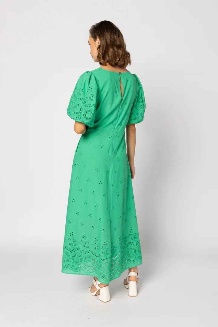 The Halo Dress is back by popular demand, the versatile and elegant dress is an elegant choice for any event. The dress is adorned with a charming knot detail at the front, stylish puff sleeves, side "pockets", a convenient zip closure at the back, and gracefully fall to a midi length and is fully lined. '80% Viscose 20% Nylon