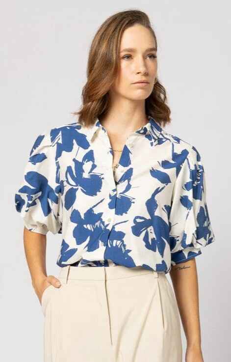 The Haven Shirt from Drama the Label is a stunning piece featuring puff sleeves with elastic at back for ease of comfort, a collar and a button front, in a beautiful Blue Flower Print that will pair with many Drama bottoms for a stylish look.