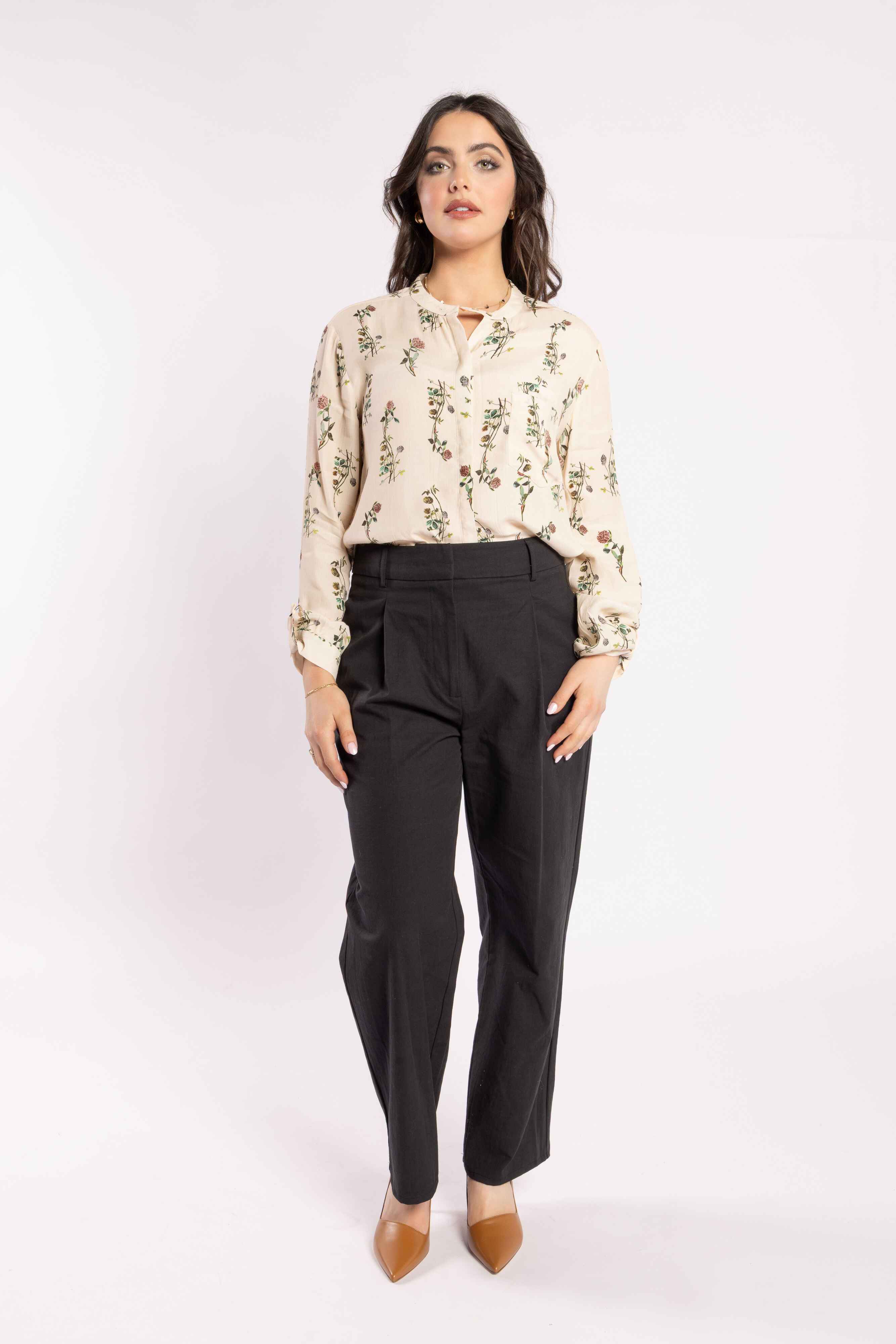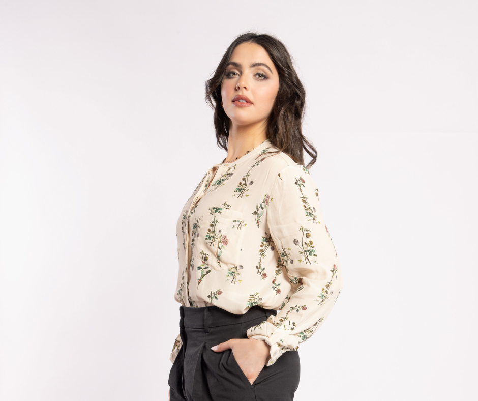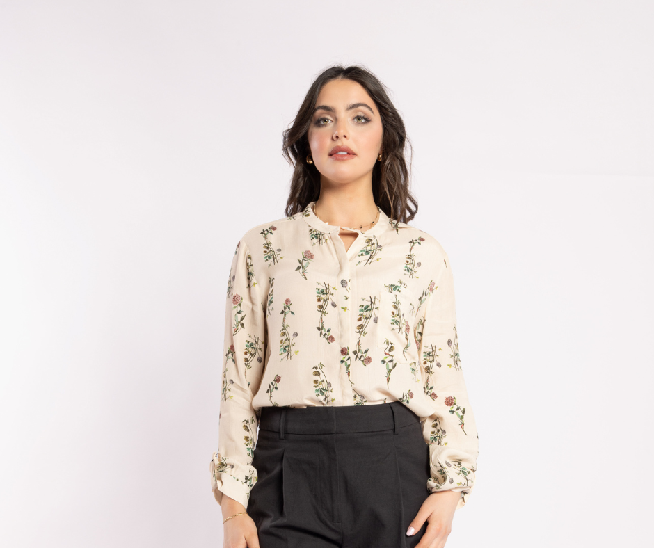Designed in New Zealand, the Salut Shirt in Wild Flower brings effortless sophistication to your wardrobe. This 100% viscose, collarless shirt features a delicate floral print on a cream base, double pocket feature, button cuffs, and a floaty, curved hem. Perfectly versatile, style it with Drama the Label pants or your favourite denim for a chic, everyday look.