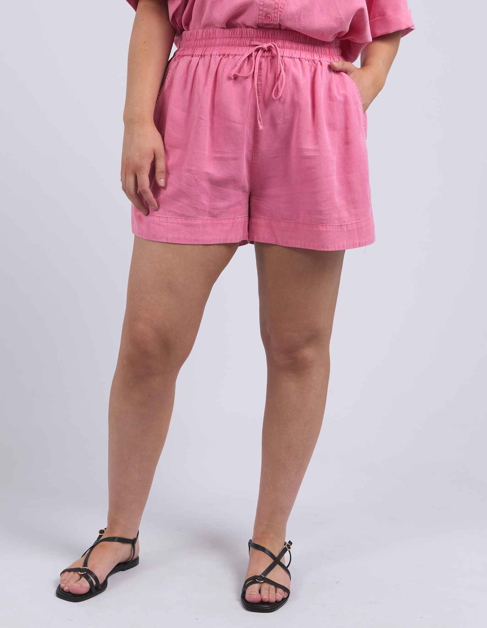 Introducing the bliss washed short: elastic waist with deep pockets, soft fabric, and match back with bliss shirt. Style it your way for an effortless look that works for any day of the week.