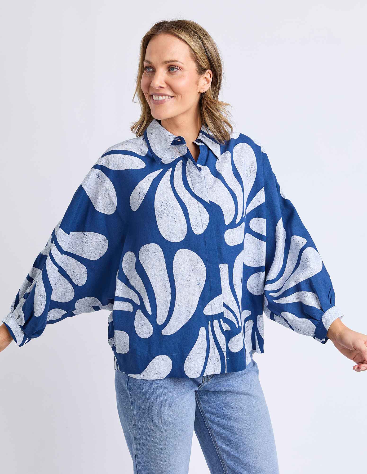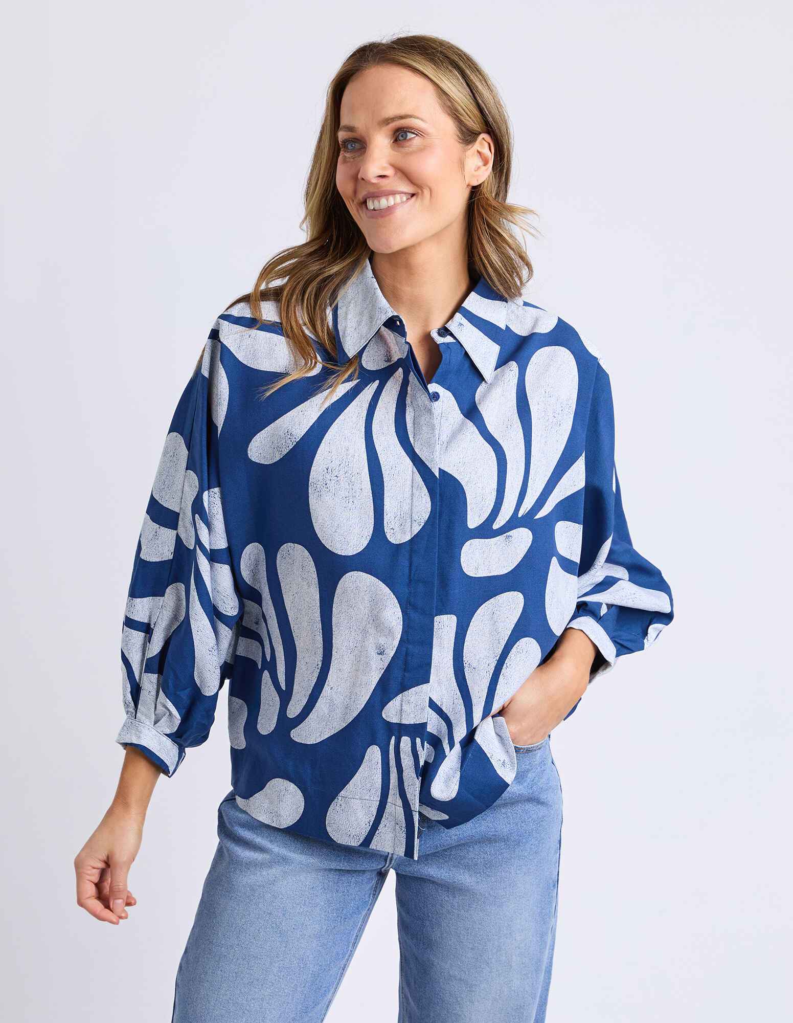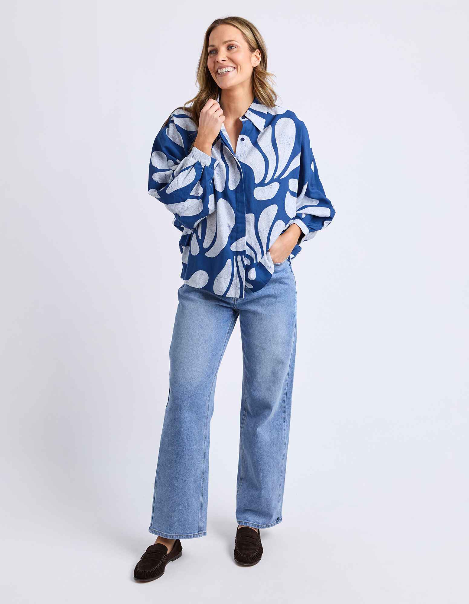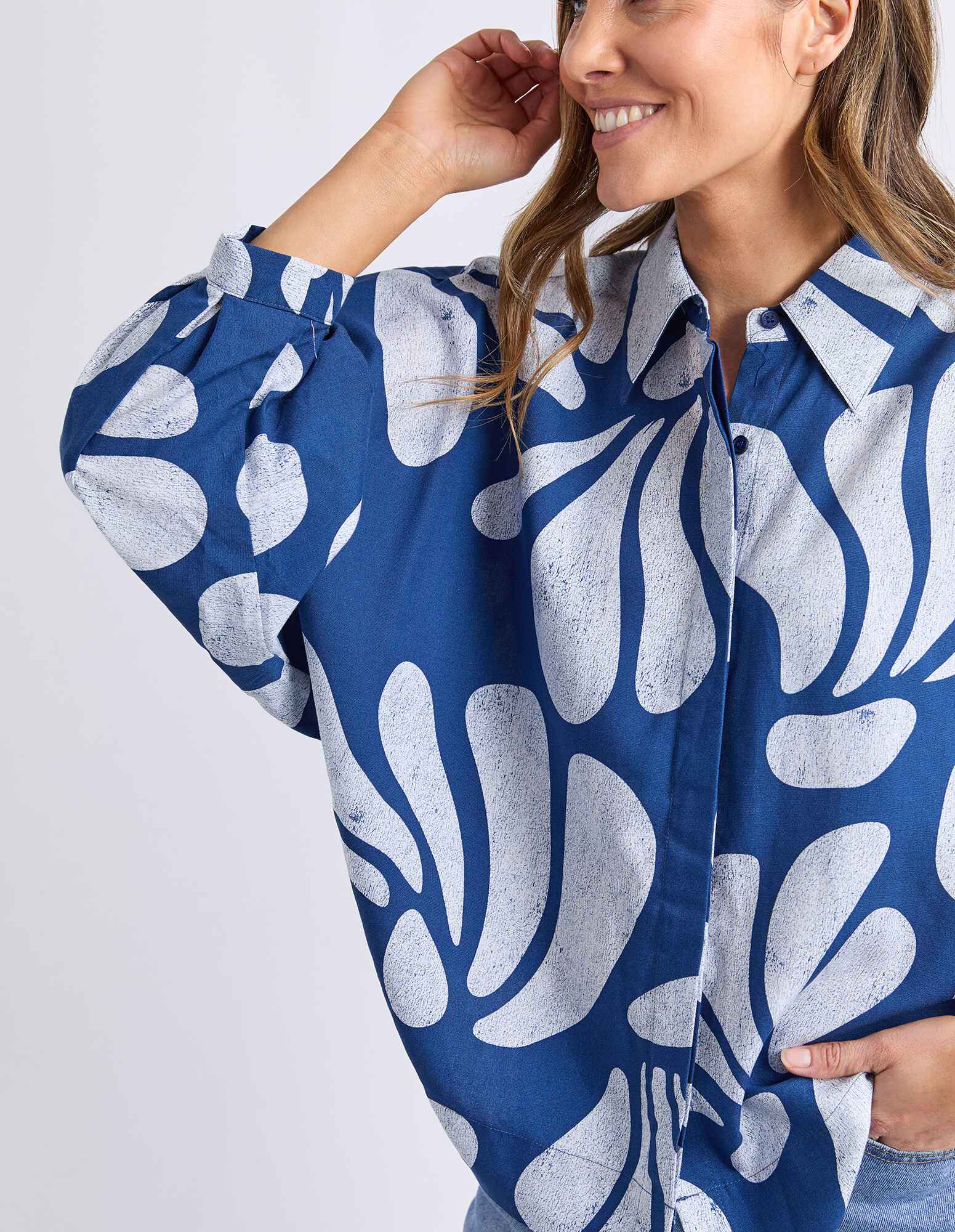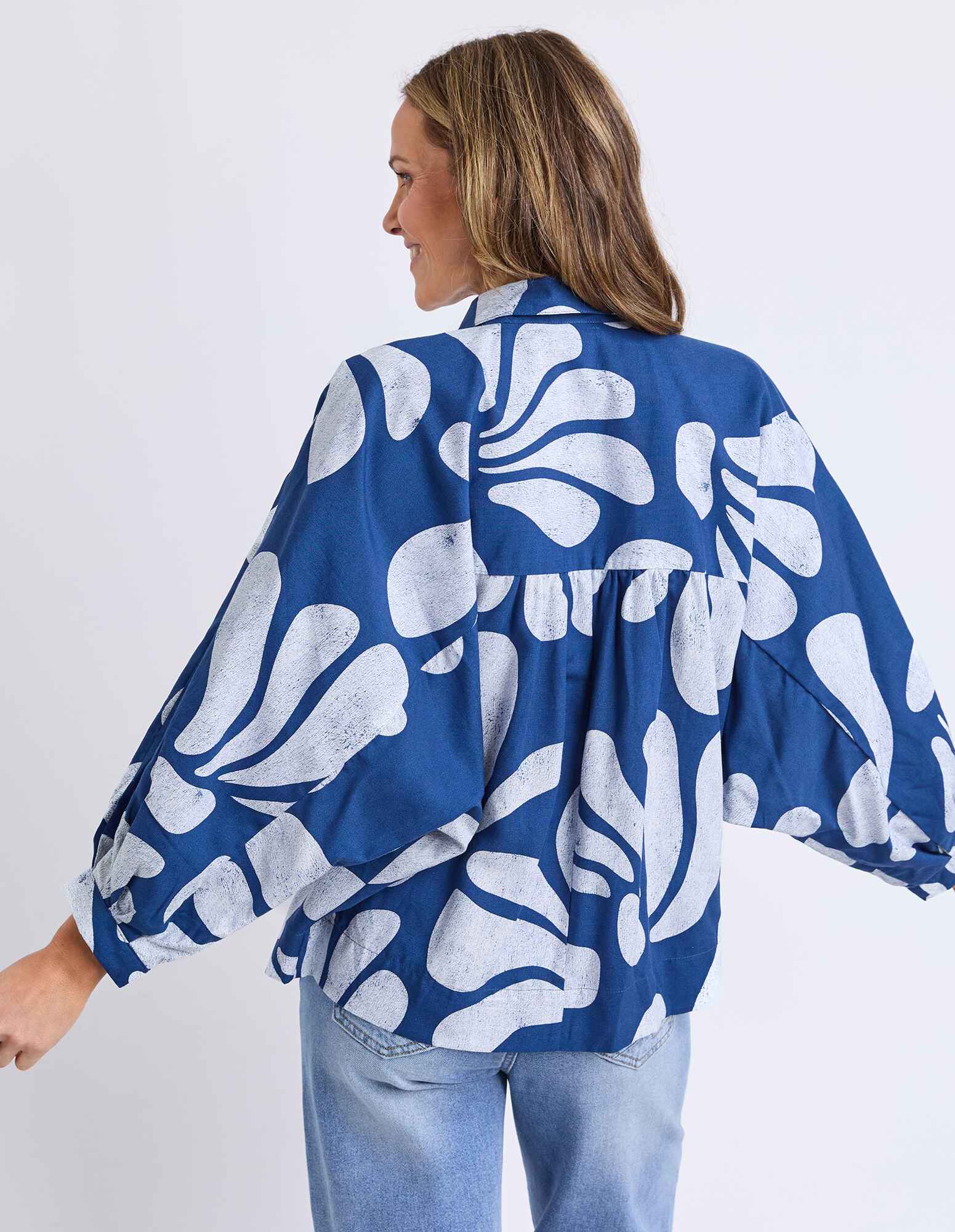 The Elm Celeste Shirt showcases exclusive Elm artwork in a beautifully washed batik-style print for an effortlessly stylish finish. Designed with extended, voluminous sleeves, this statement shirt brings relaxed elegance and standout detail to everyday dressing.