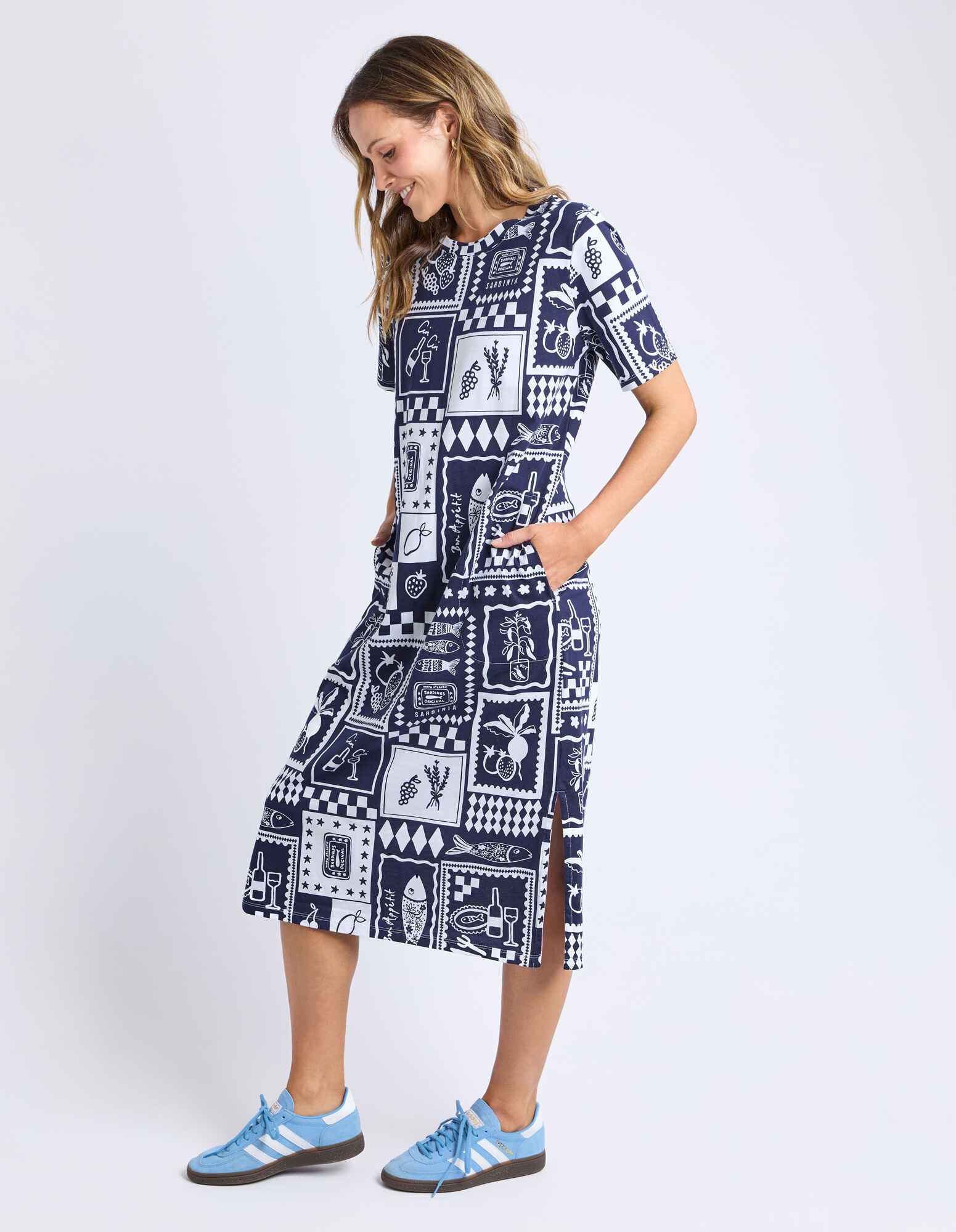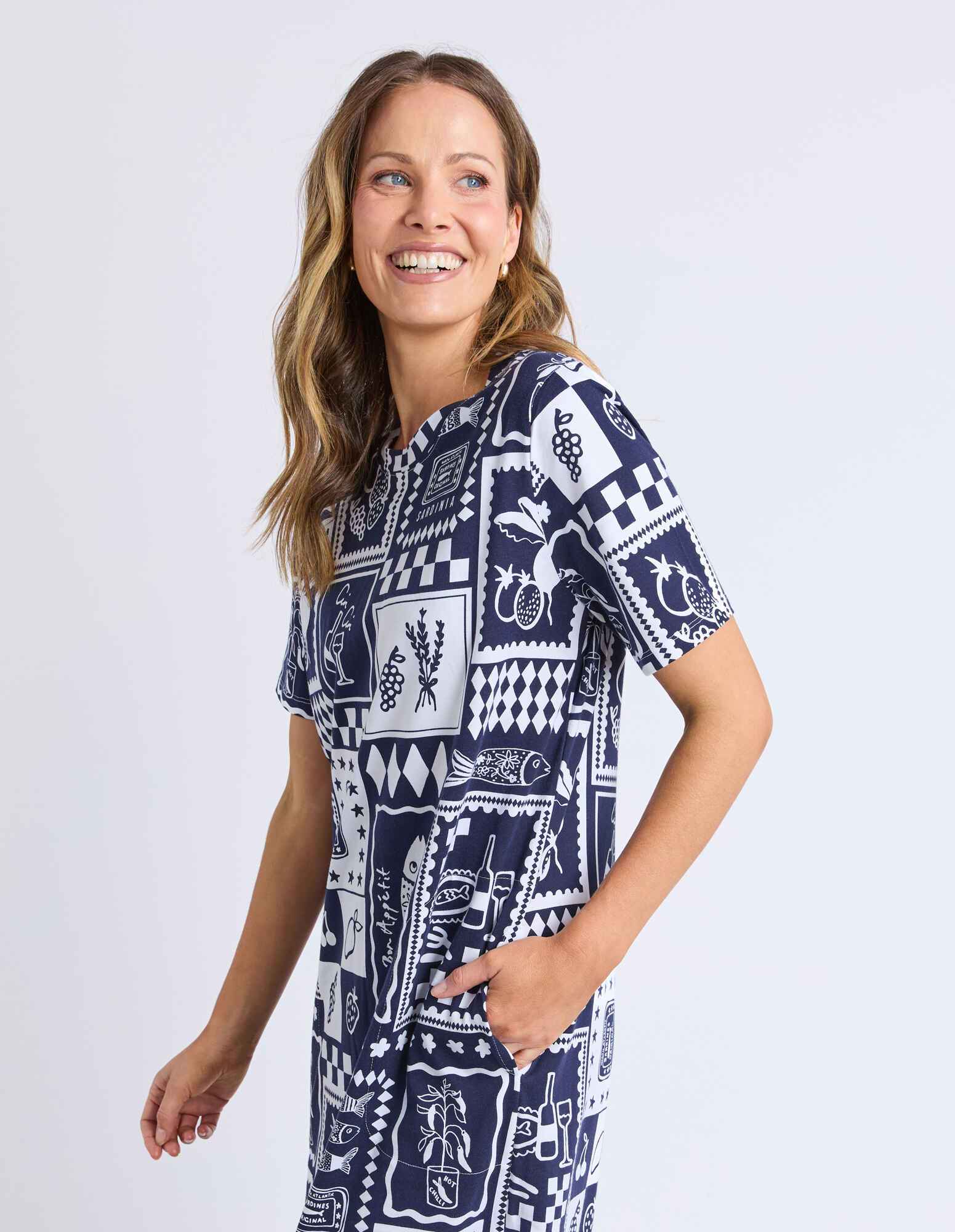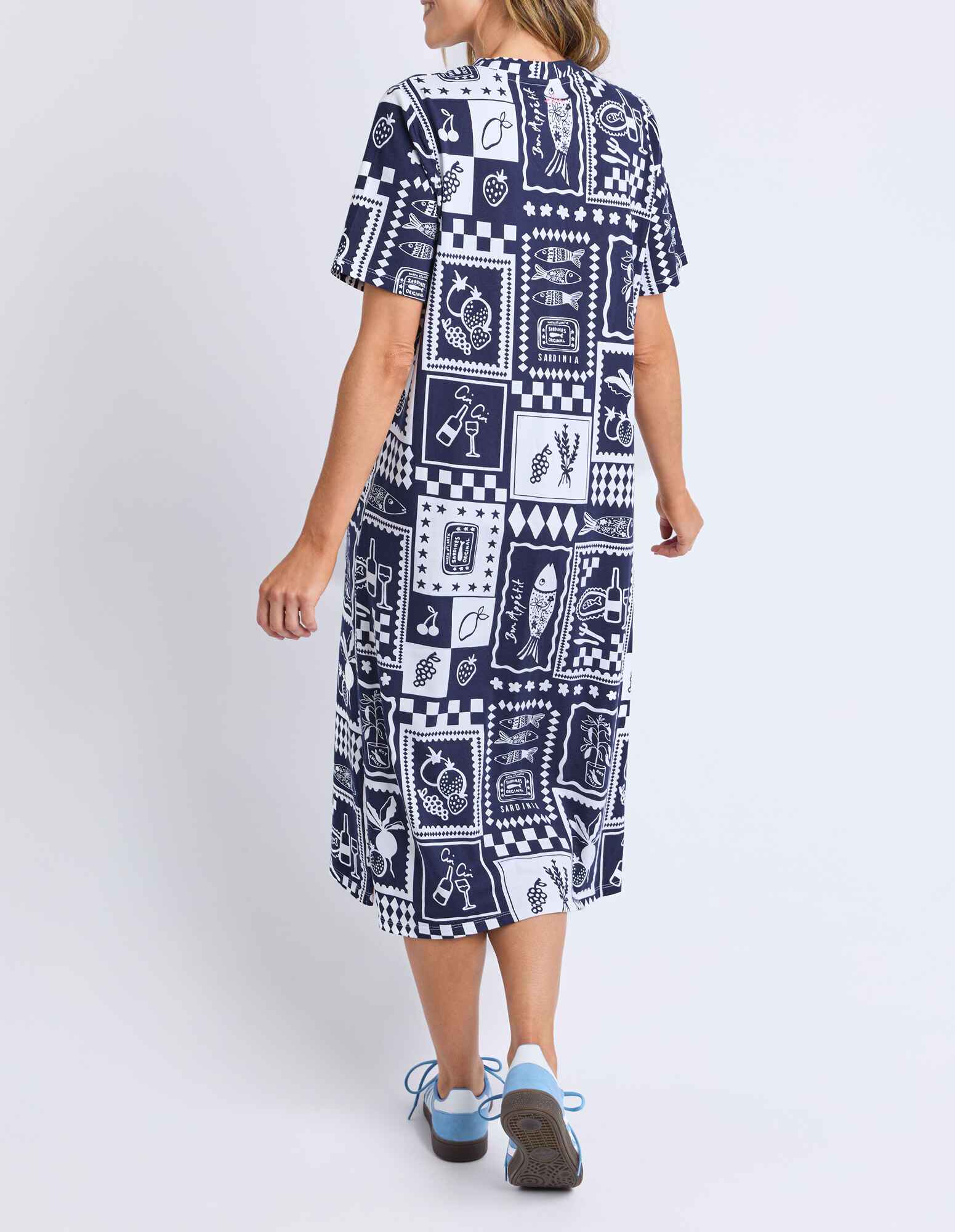 Chin Chin is commonly used for 'Cheers' which is what everyone will be saying when they see you in the Chin Chin Dress! Covered in exclusive hand drawn Mediterranean style graphics on postcard squares, this gorgeous print is quintessentially Elm and one people will definitely be raising a glass too.