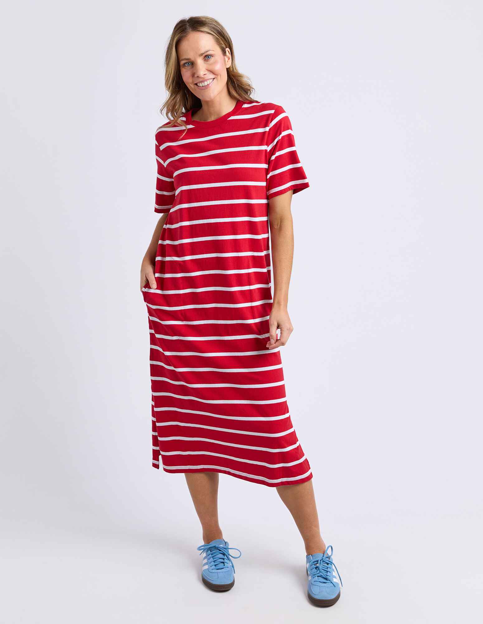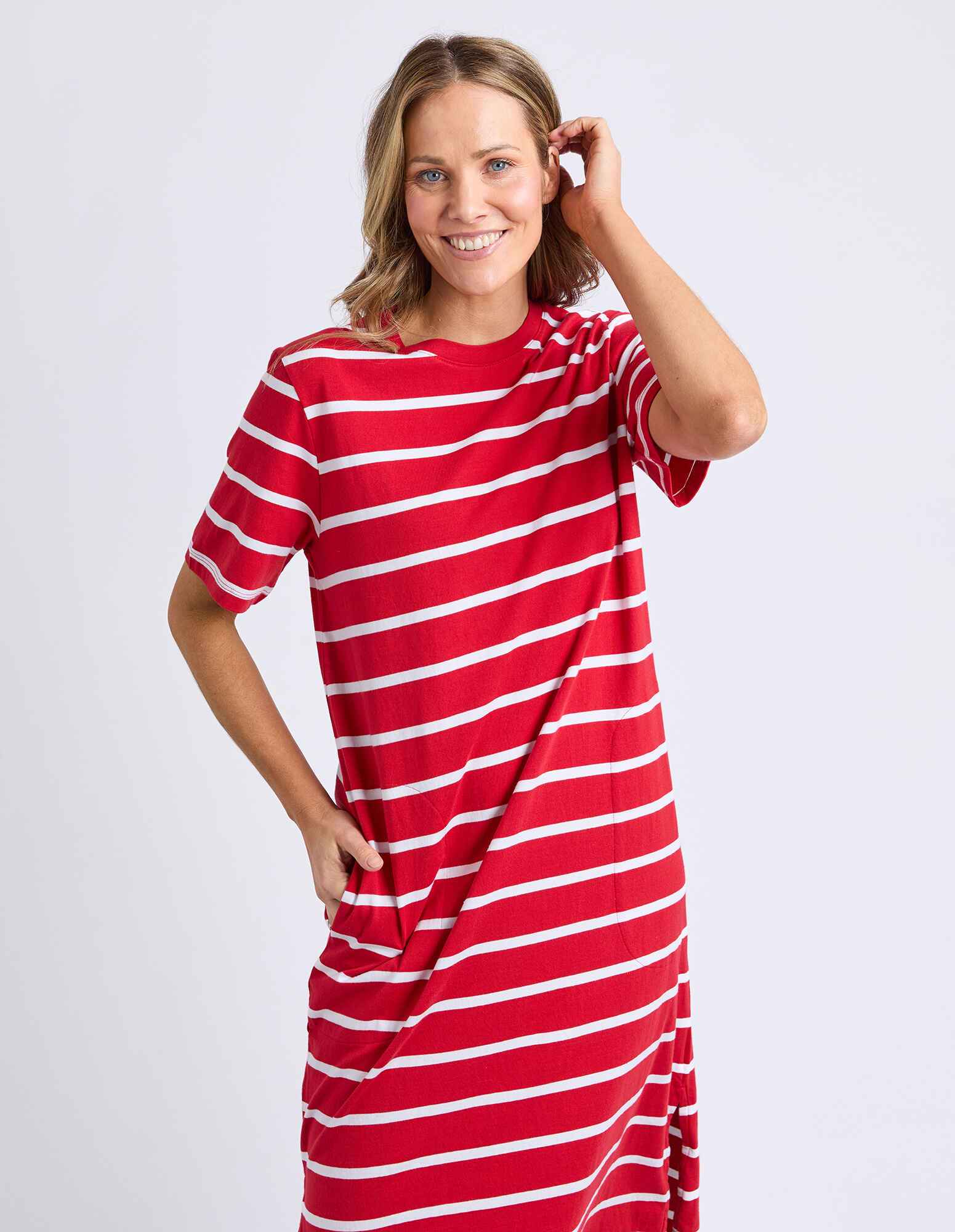 The Elm Crimson Tee Dress is an easy, everyday staple crafted from 100% organic cotton. Designed in a relaxed fit with a flattering midi length and practical side pockets, it’s perfect for casual comfort. Style with sneakers or slides for effortless off-duty dressing.