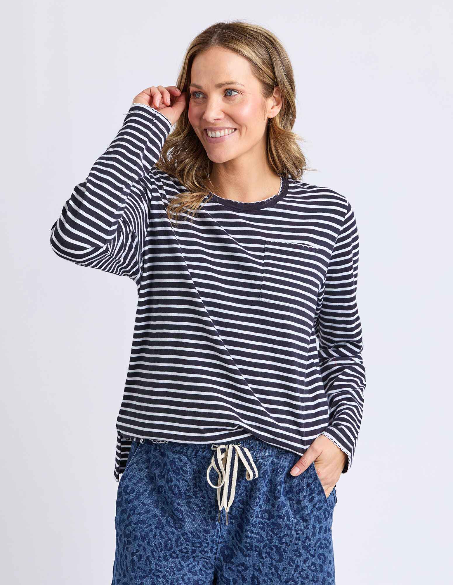 The Elm Drea Long Sleeve Tee is a relaxed everyday essential crafted from soft cotton slub jersey. Featuring yarn-dyed stripes, a chest pocket and an easy fit, it’s perfect for casual wear. Pair it with denim or trackpants for comfortable day-to-day styling.