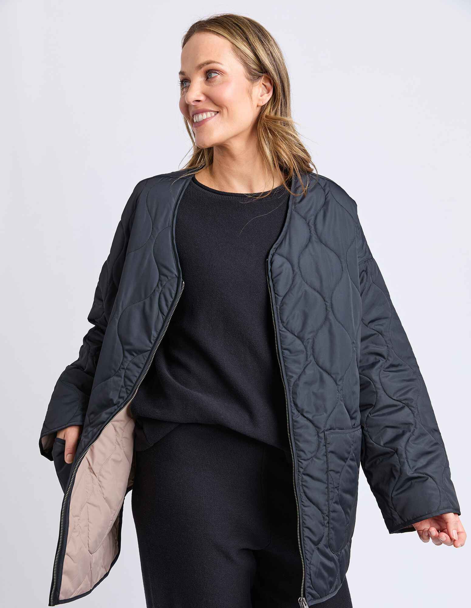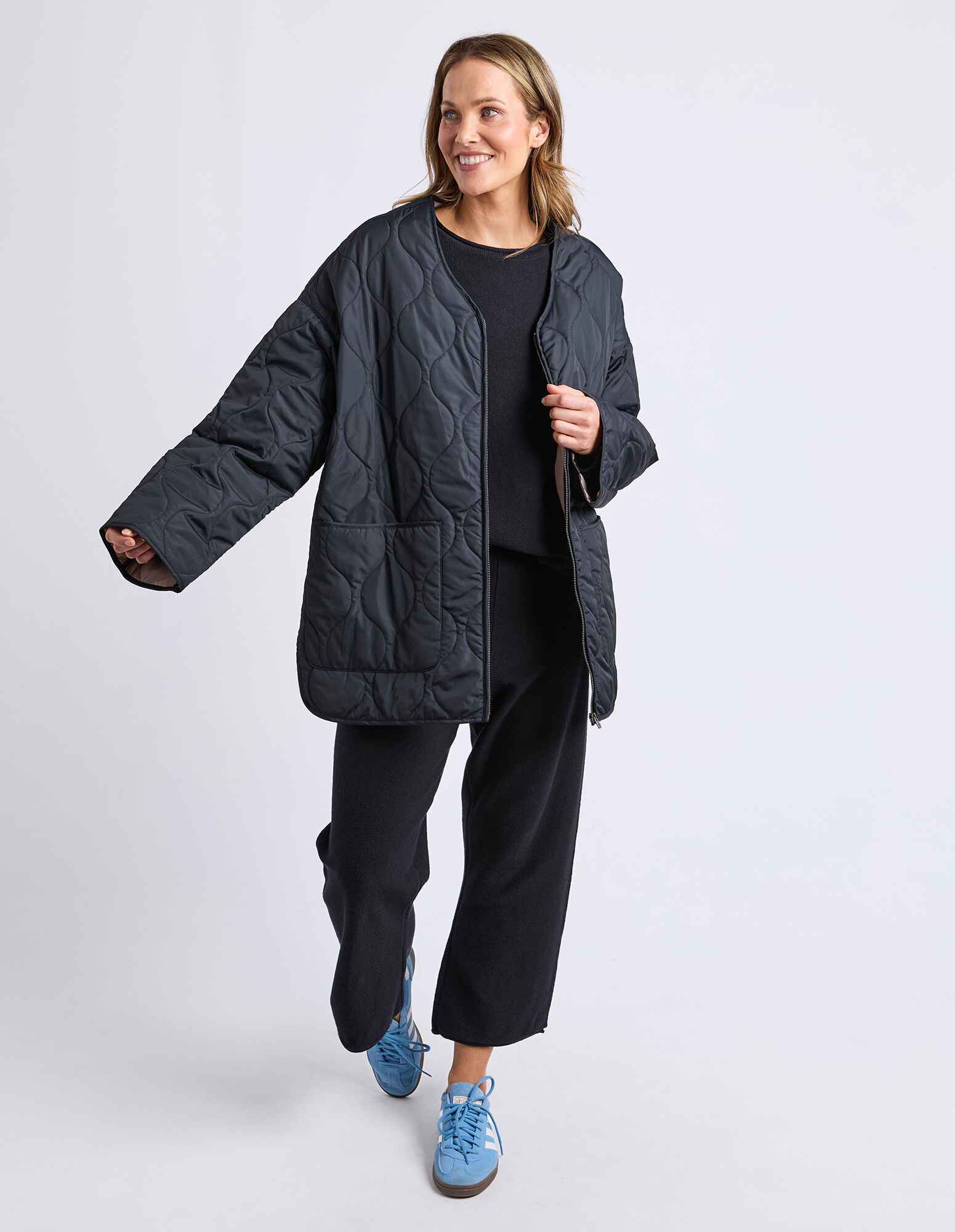 The Elm Dusty Jacket is a cosy outer layer featuring textured onion stitching and warm fill for cooler days. Designed in an oversized fit with a clean hidden zip front, it’s perfect for everyday layering. Throw it over a tee and relaxed pants for effortless warmth and style.