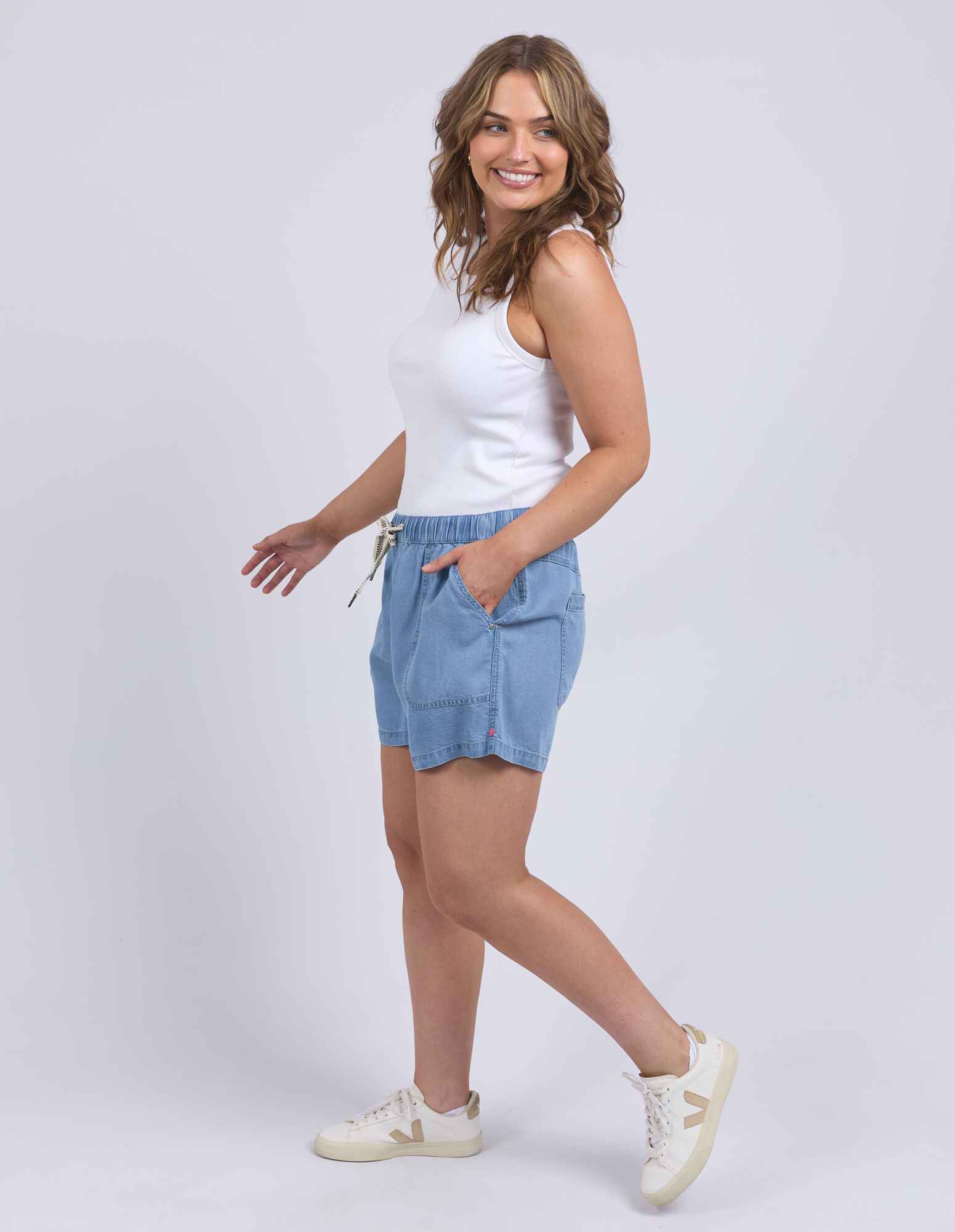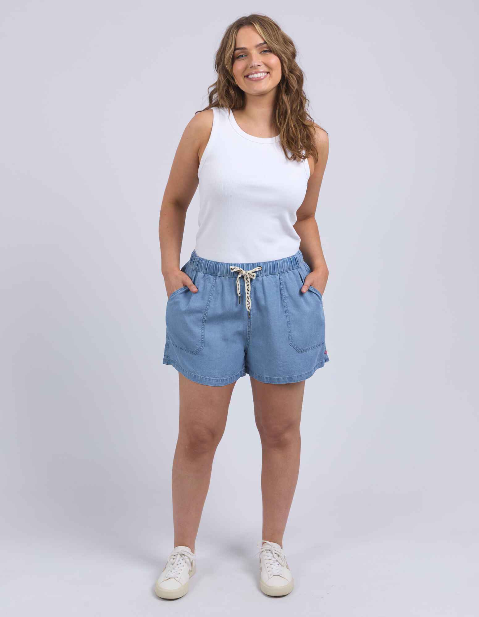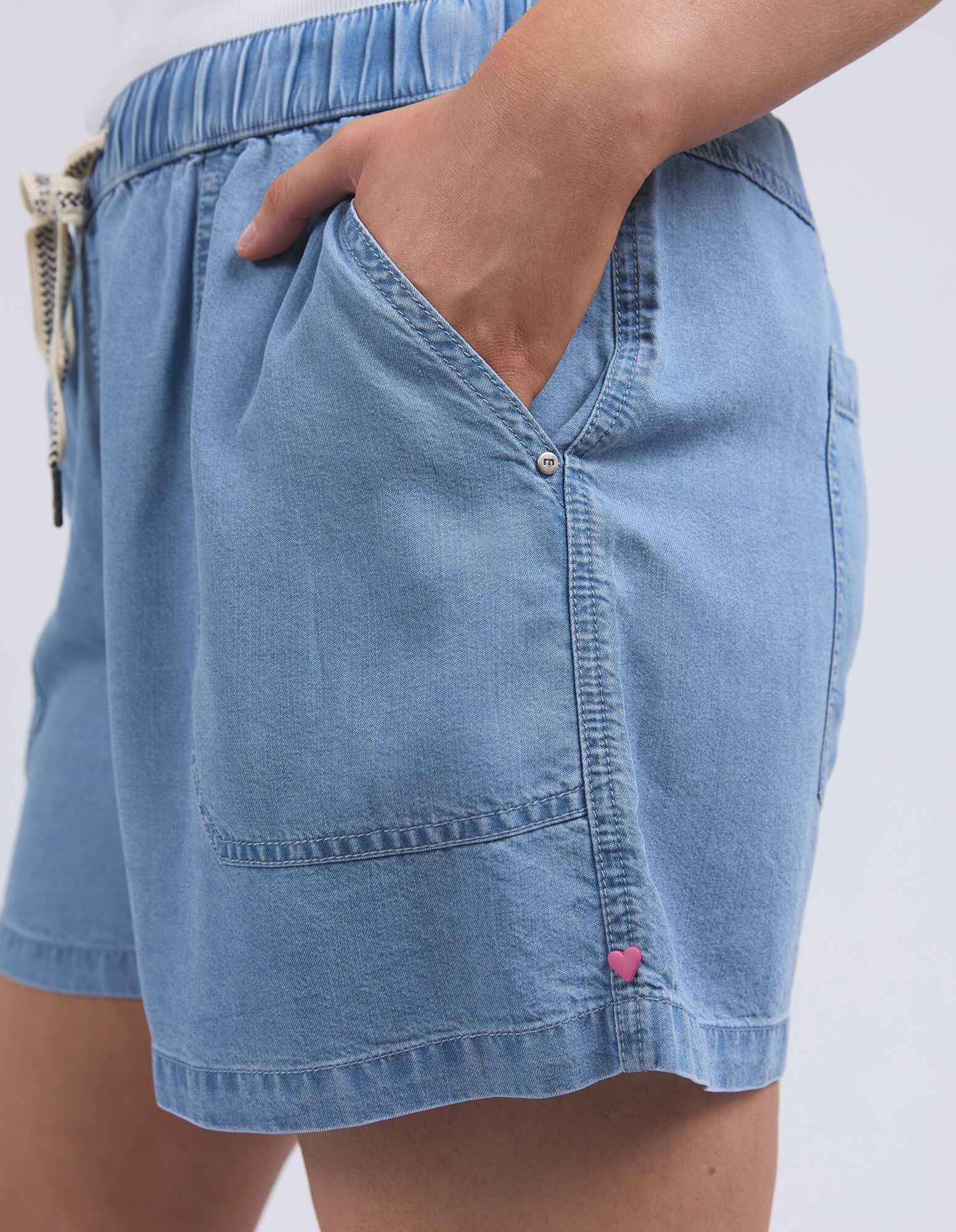 Say hello to the elliott chambray short, ultimate everyday comfort, elastic waist, and knee length. Style it your way for an effortless look that works for any day of the week.