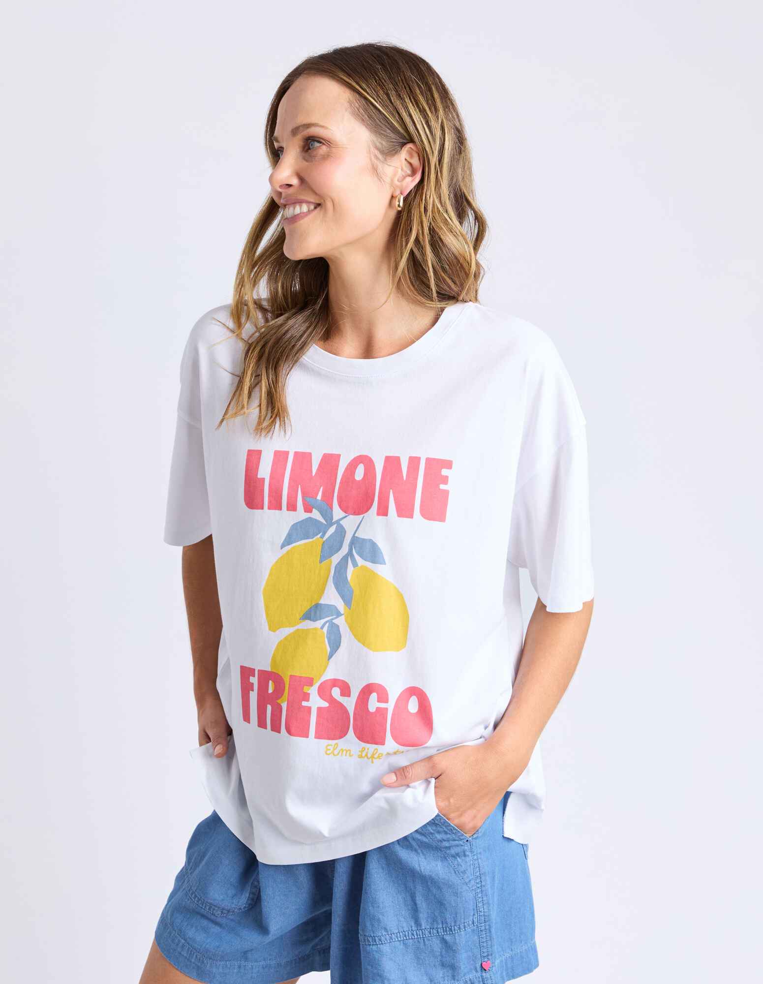 Featuring an exclusive Elm Design graphic, the Limone Fresco Tee is a classic block shape with a round crew neckline, small side splits and made from 100% cotton.