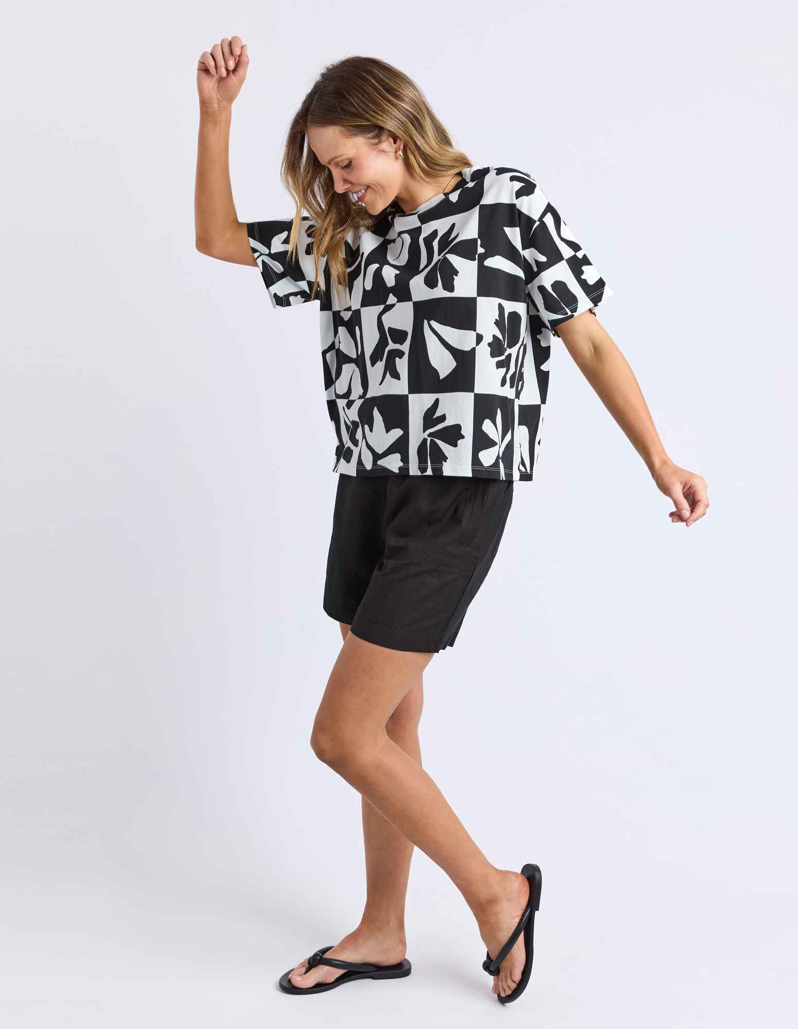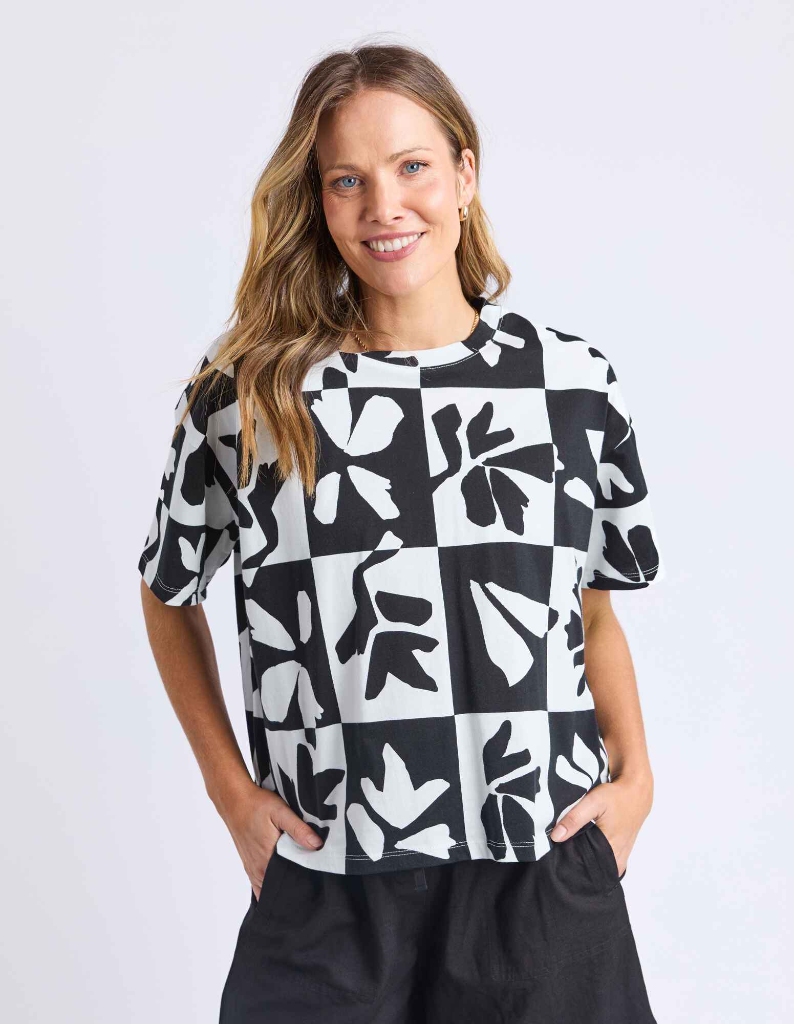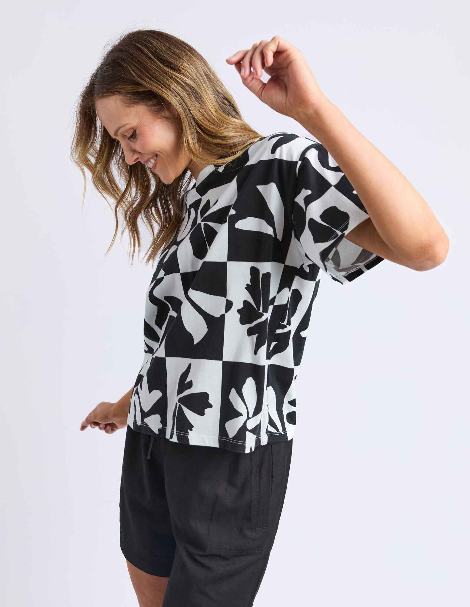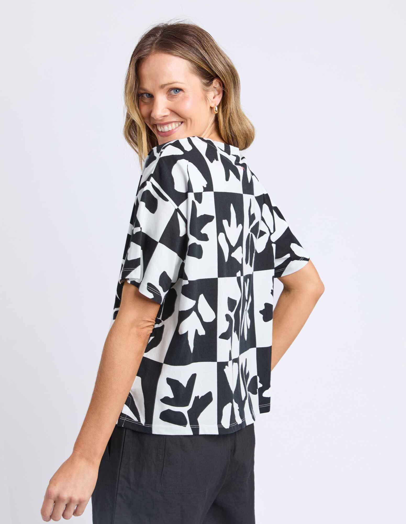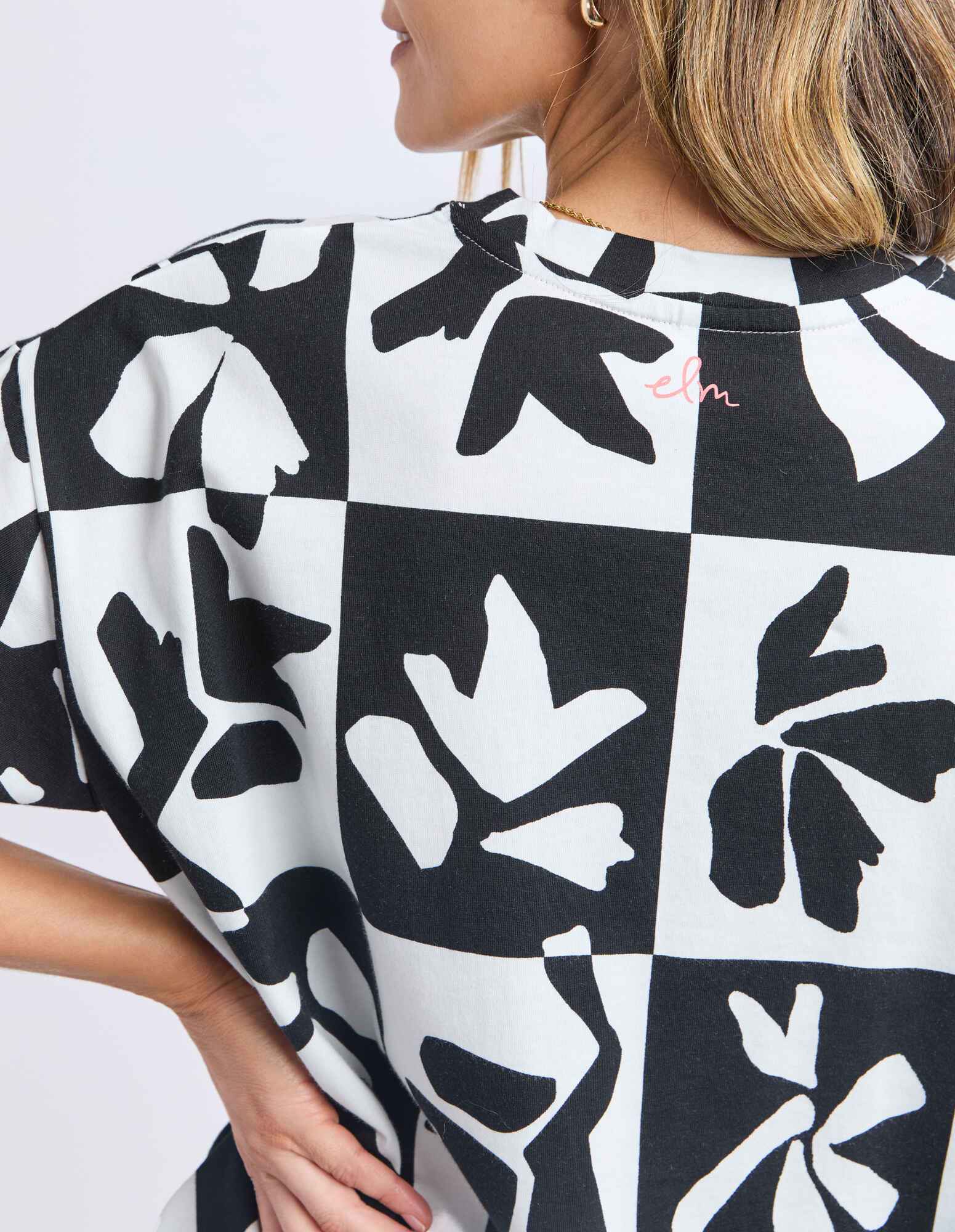 Featuring an exclusive Elm Print in timeless black and white, the Splice Tee is an effortless piece for everyday wear.