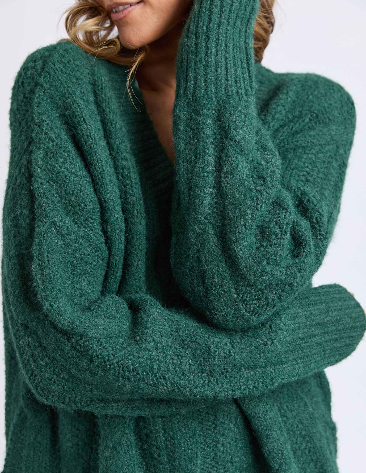 Colourful, cosy cable knit. This gorgeously soft and snuggly knit will keep you warm and comfortable and add colour to your outfit this season.