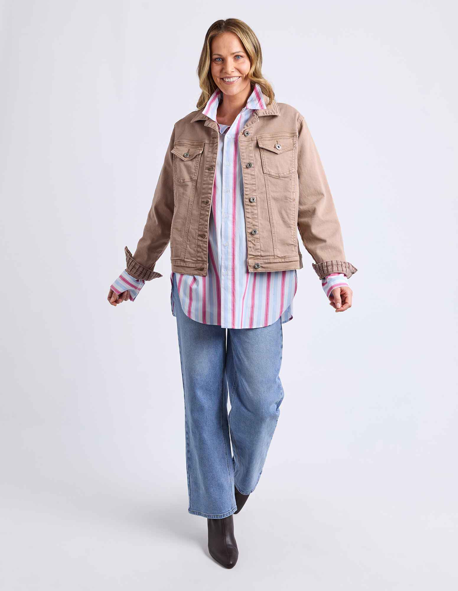 Our best selling jacket in classic stretch denim that's perfect for layering and adding a pop of colour to every outfit.