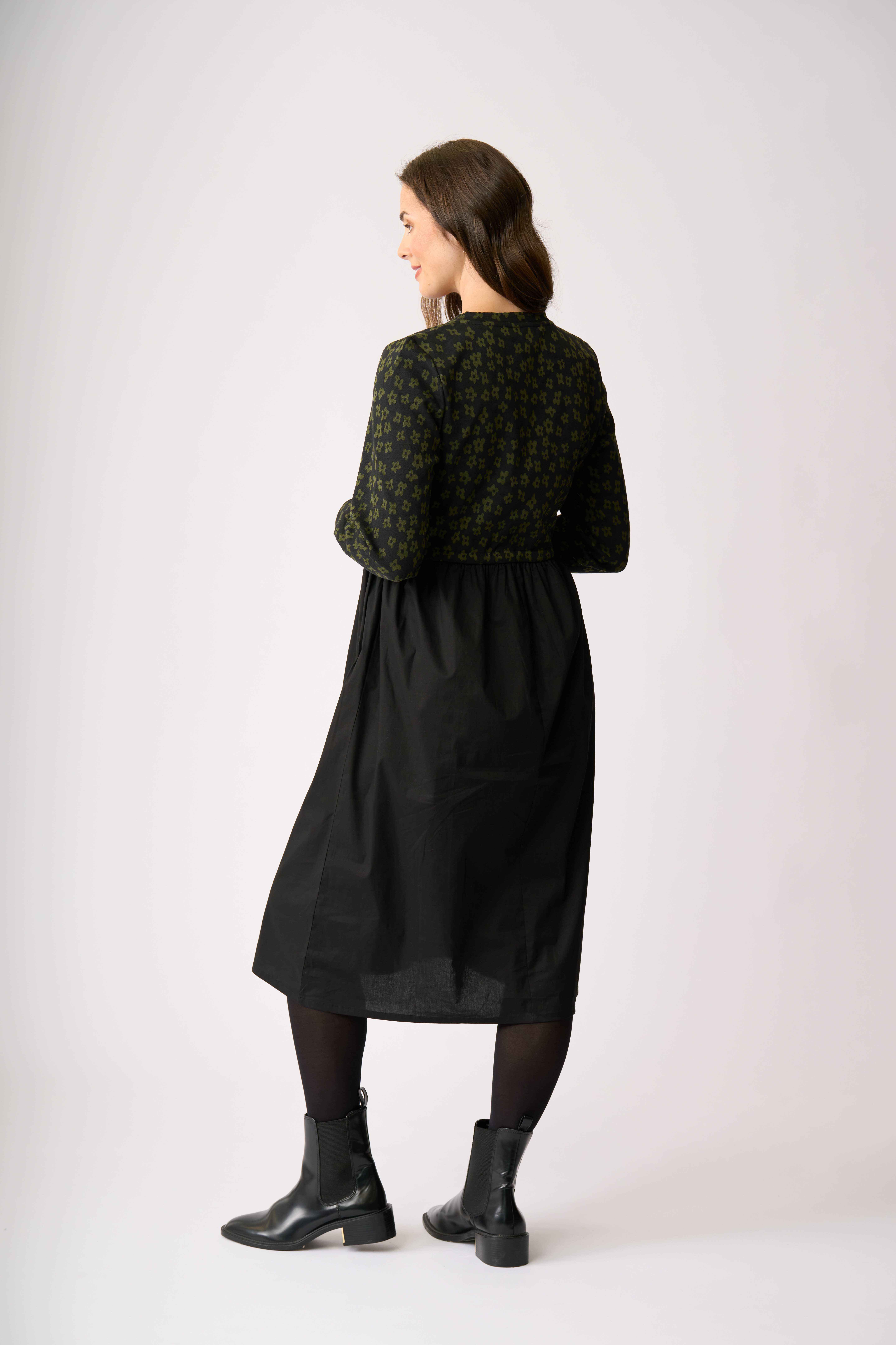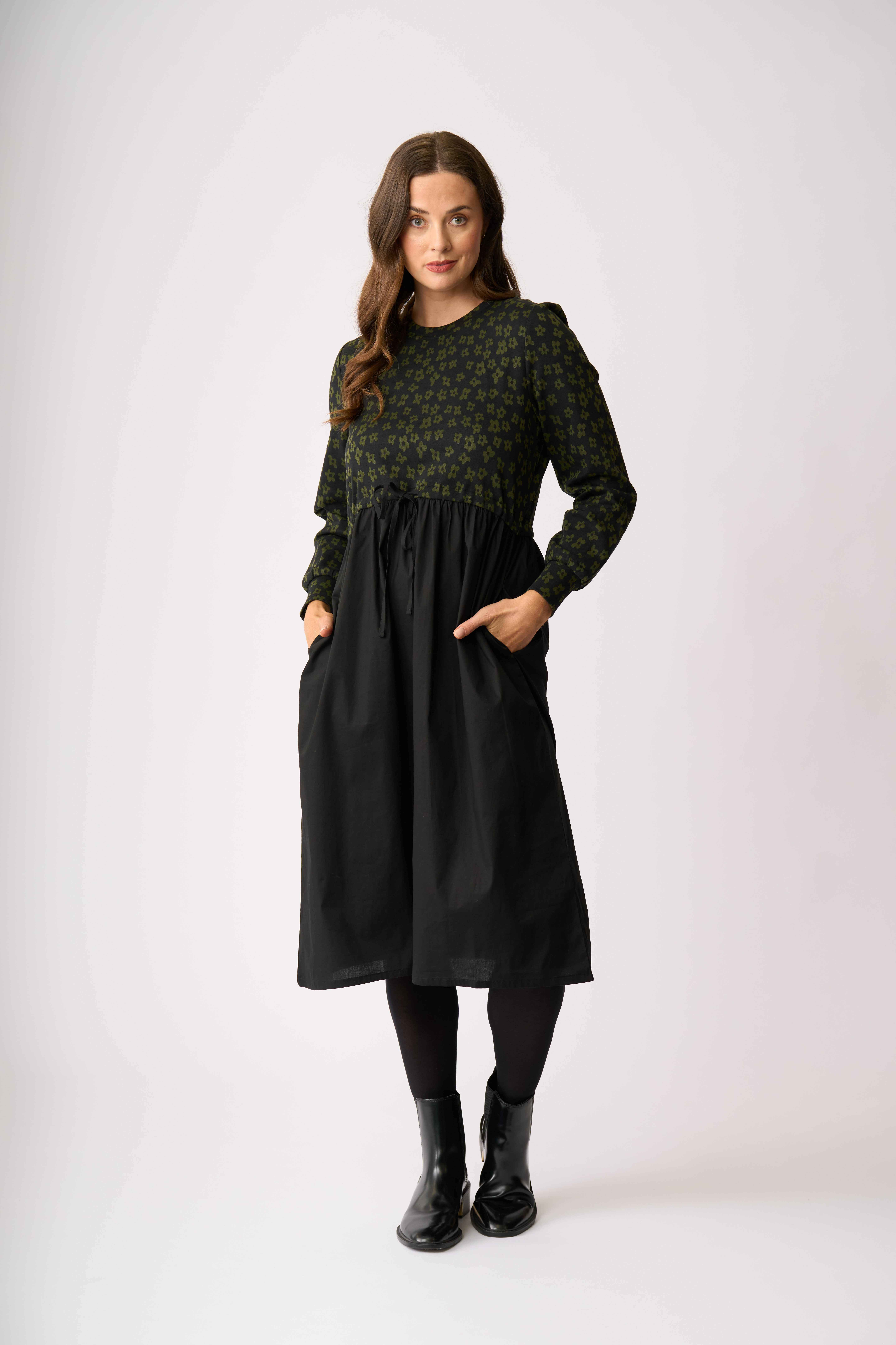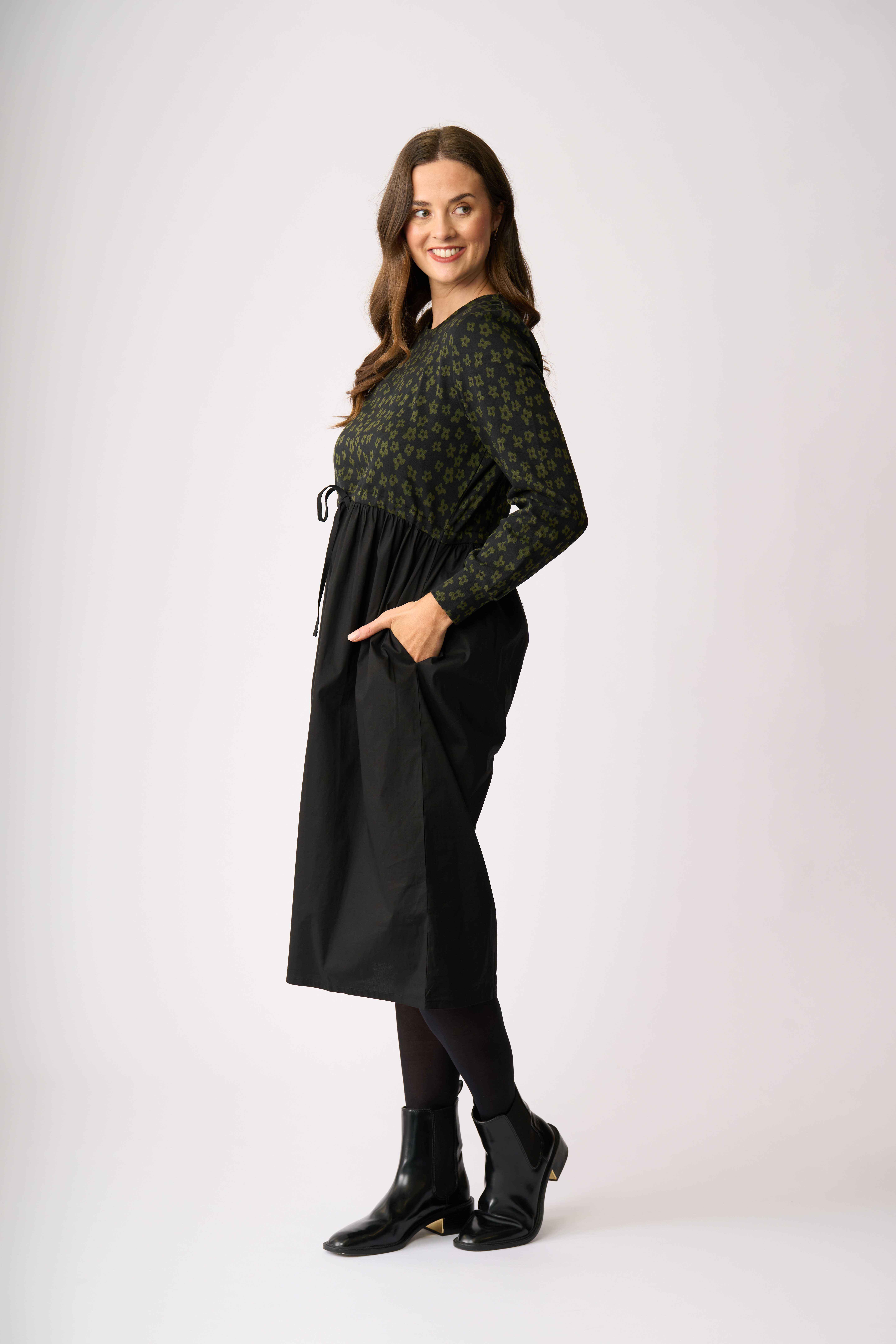 KHAKI FLORAL:MAIN: 82% POLYESTER, 15% VISCOSE, 3% ELASTANETRIM: 97% COTTON, 3% ELASTANE