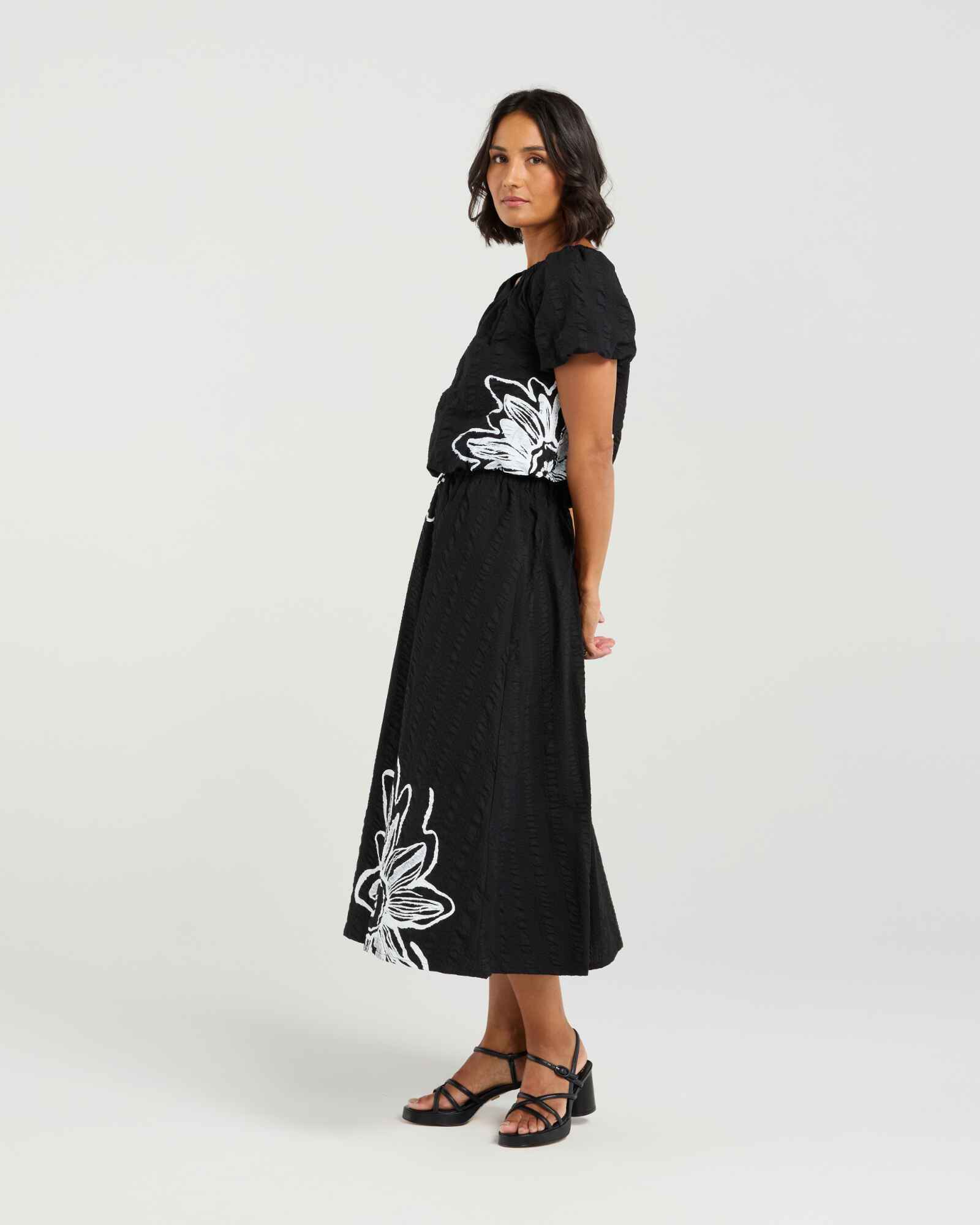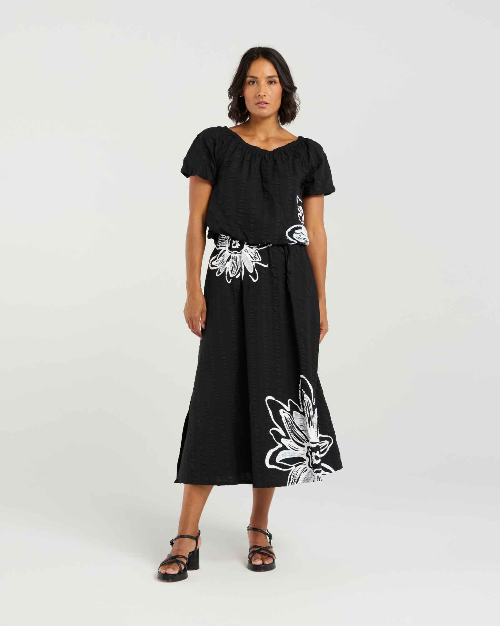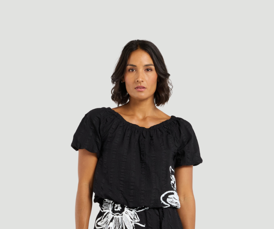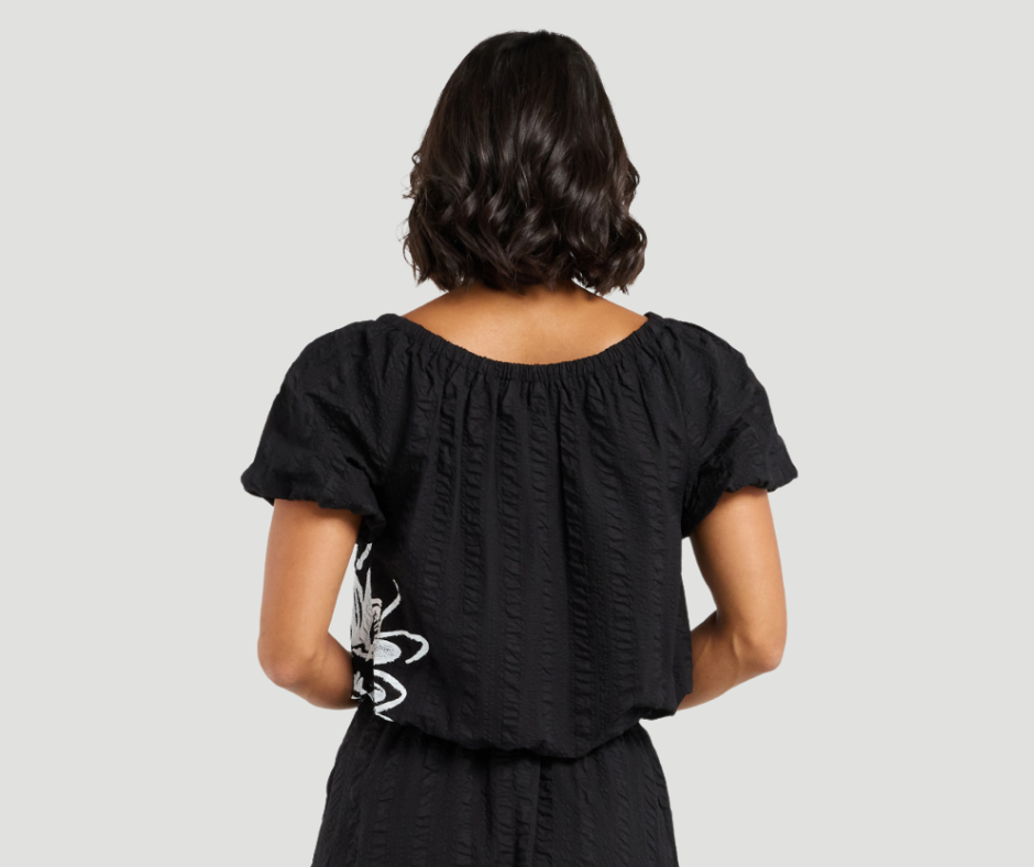 Add a touch of playful charm to your wardrobe with this cropped top, featuring short sleeves and voluminous balloon detailing at both the hem and cuffs for a whimsical silhouette. The standout feature is a delicate daisy print on the front, bringing a fresh, floral accent to this cute piece. Made from cotton, this top is perfect for warm-weather styling. Pair with the matching Daisy skirt for the ultimate in summer style.