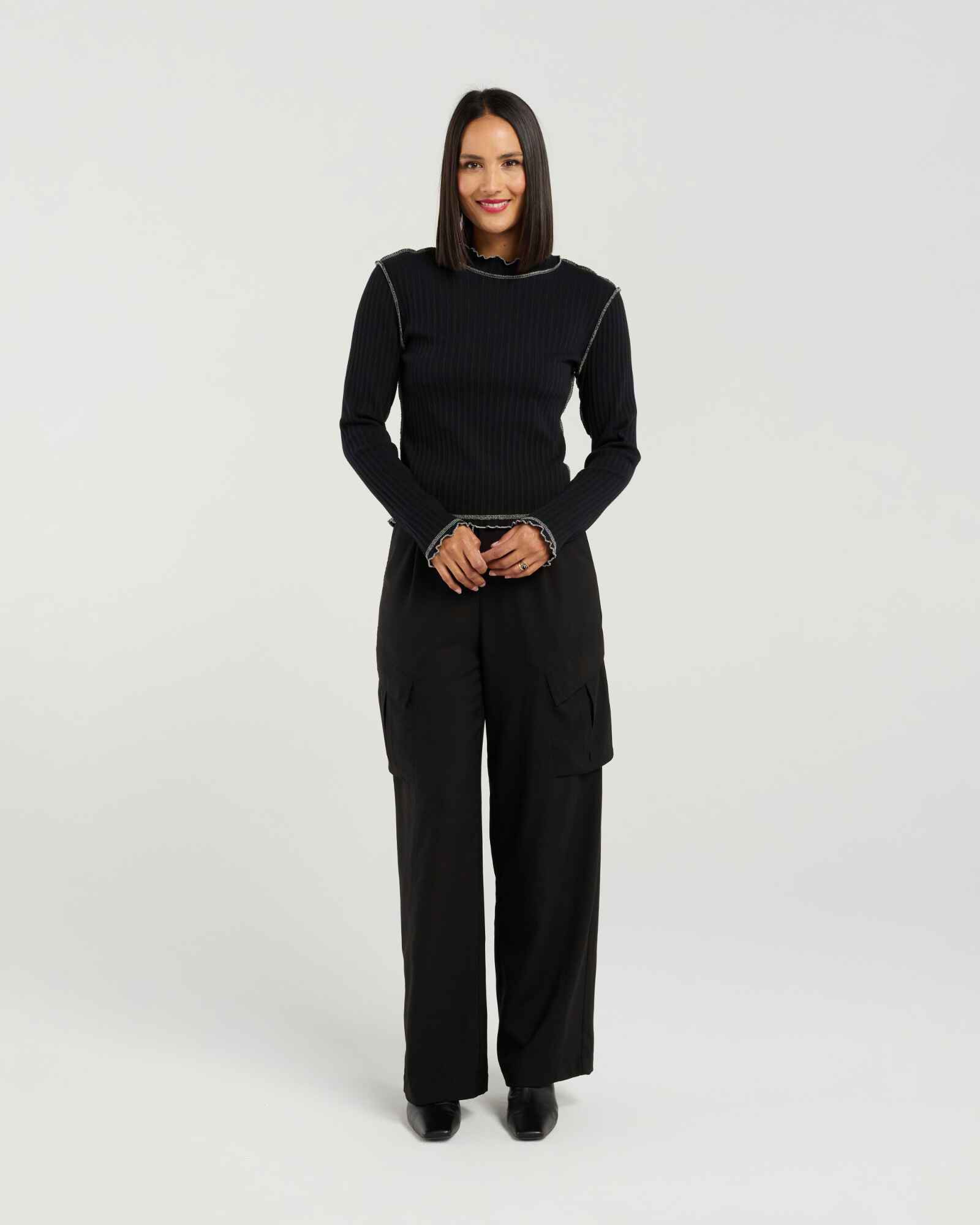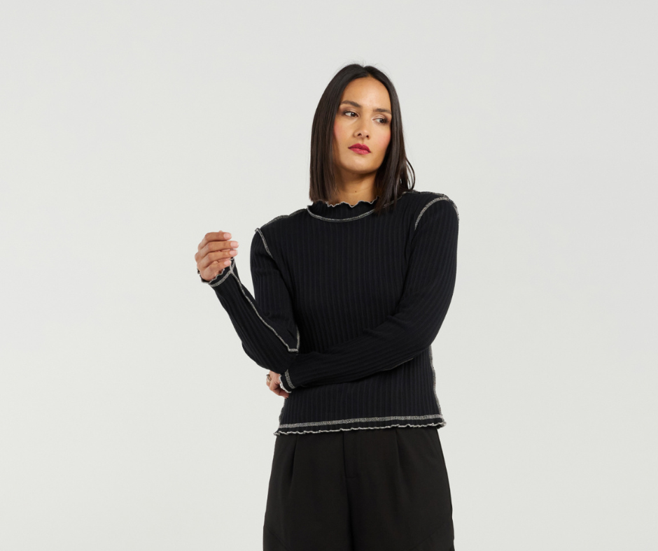 Effortless with a touch of attitude, the Isla Top brings a fresh, modern twist to everyday style. Crafted from soft, breathable cotton rib, it offers comfortable stretch and a flattering, body-skimming fit. The long sleeves keep it sleek and versatile, while the exposed overlocking adds an edgy, fashion-forward detail that sets it apart from a classic basic.