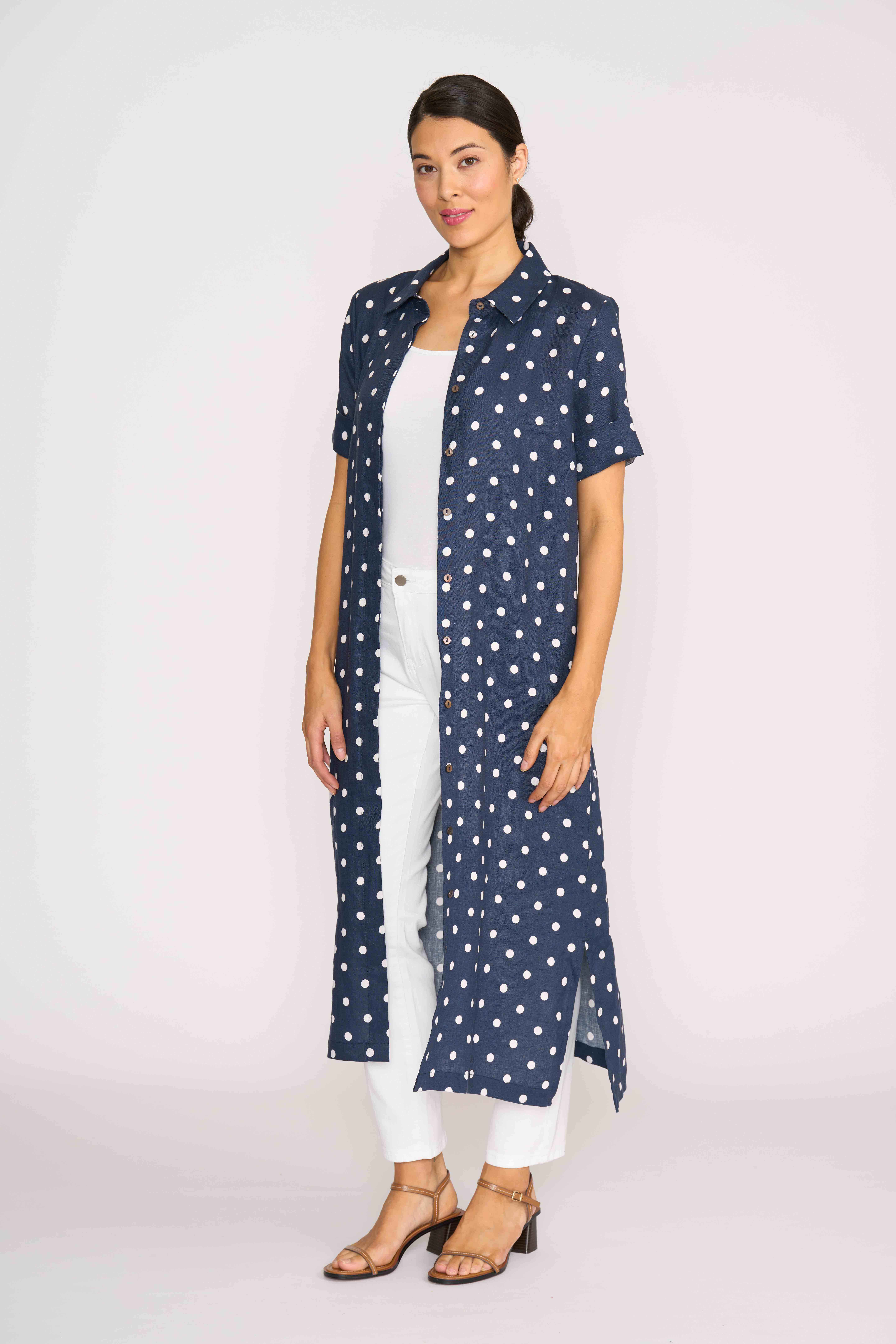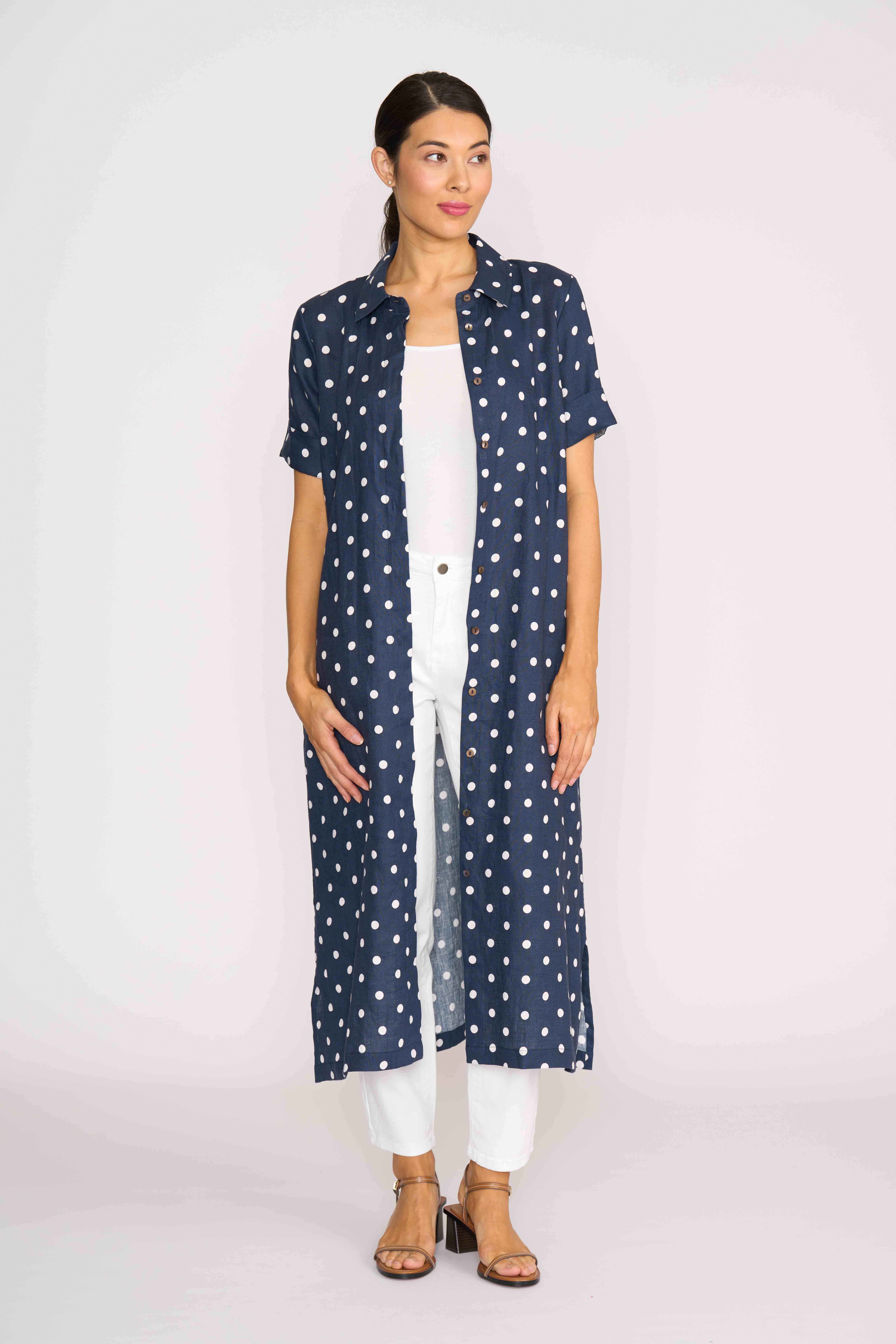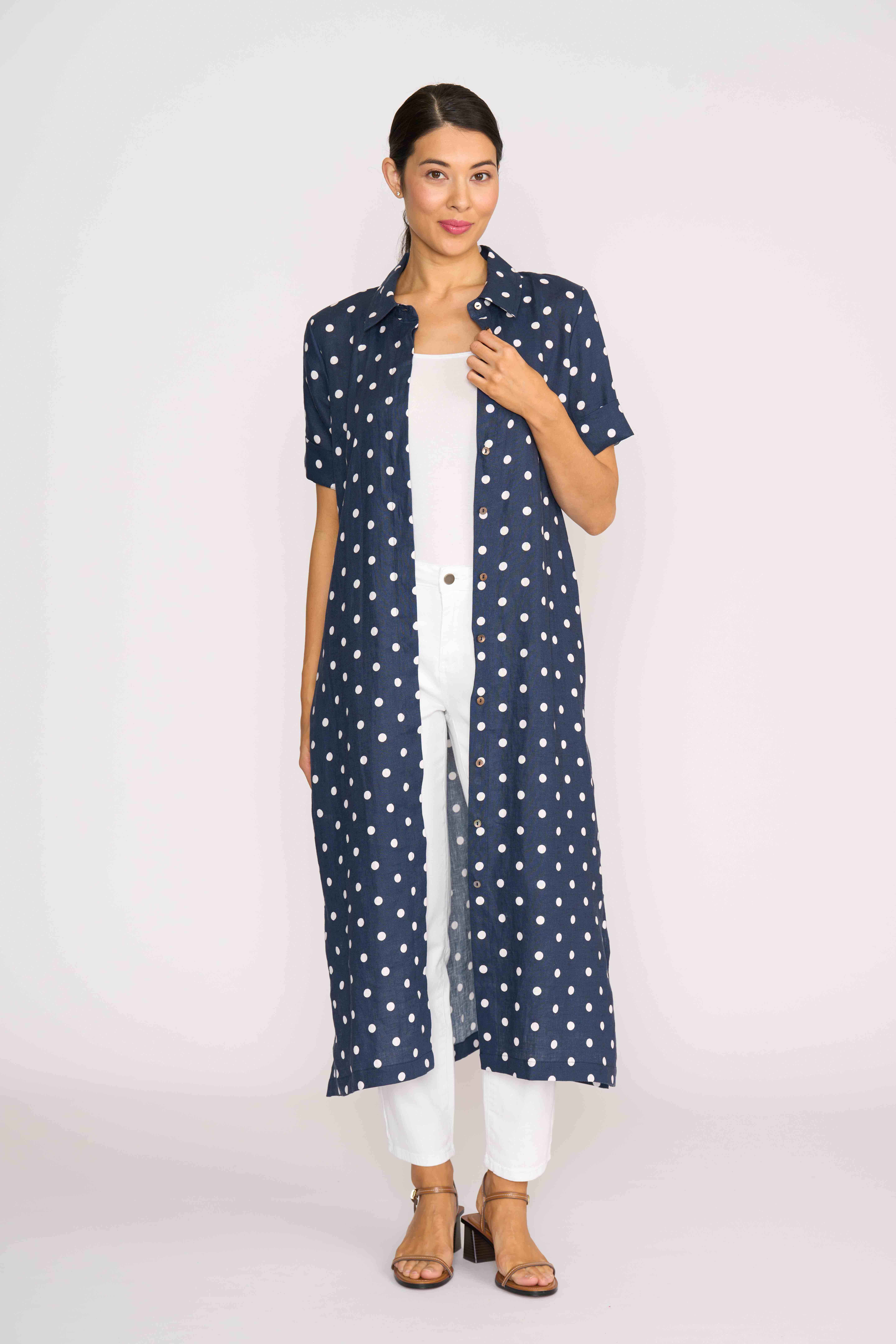 Collared maxi length dress with a button down closure down the centre front. Back ruched panel for fit and inseam pockets. Elbow length sleeves, to cuff or not to cuff. Body length from shoulder to hem is approx. 126cm (size 12).