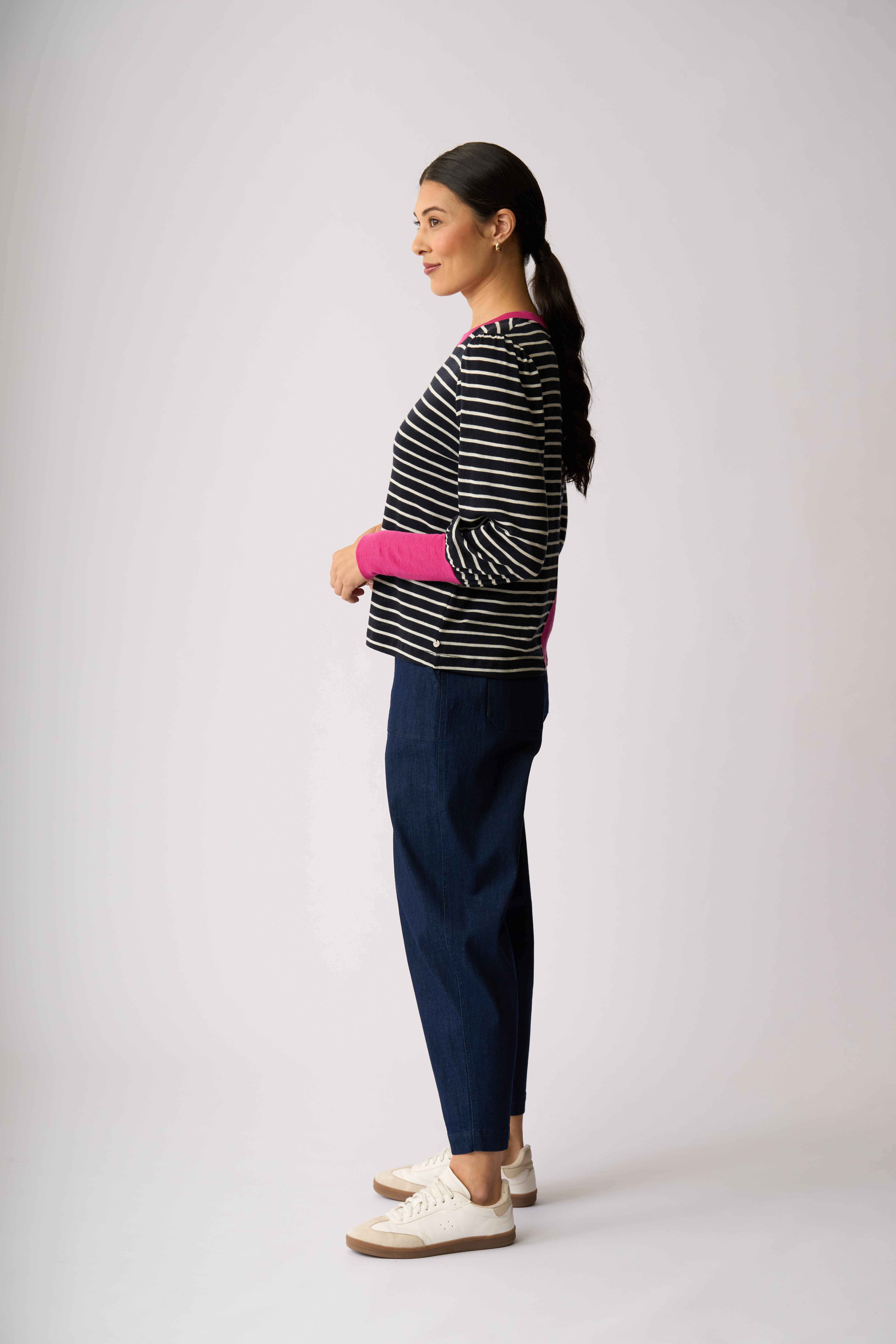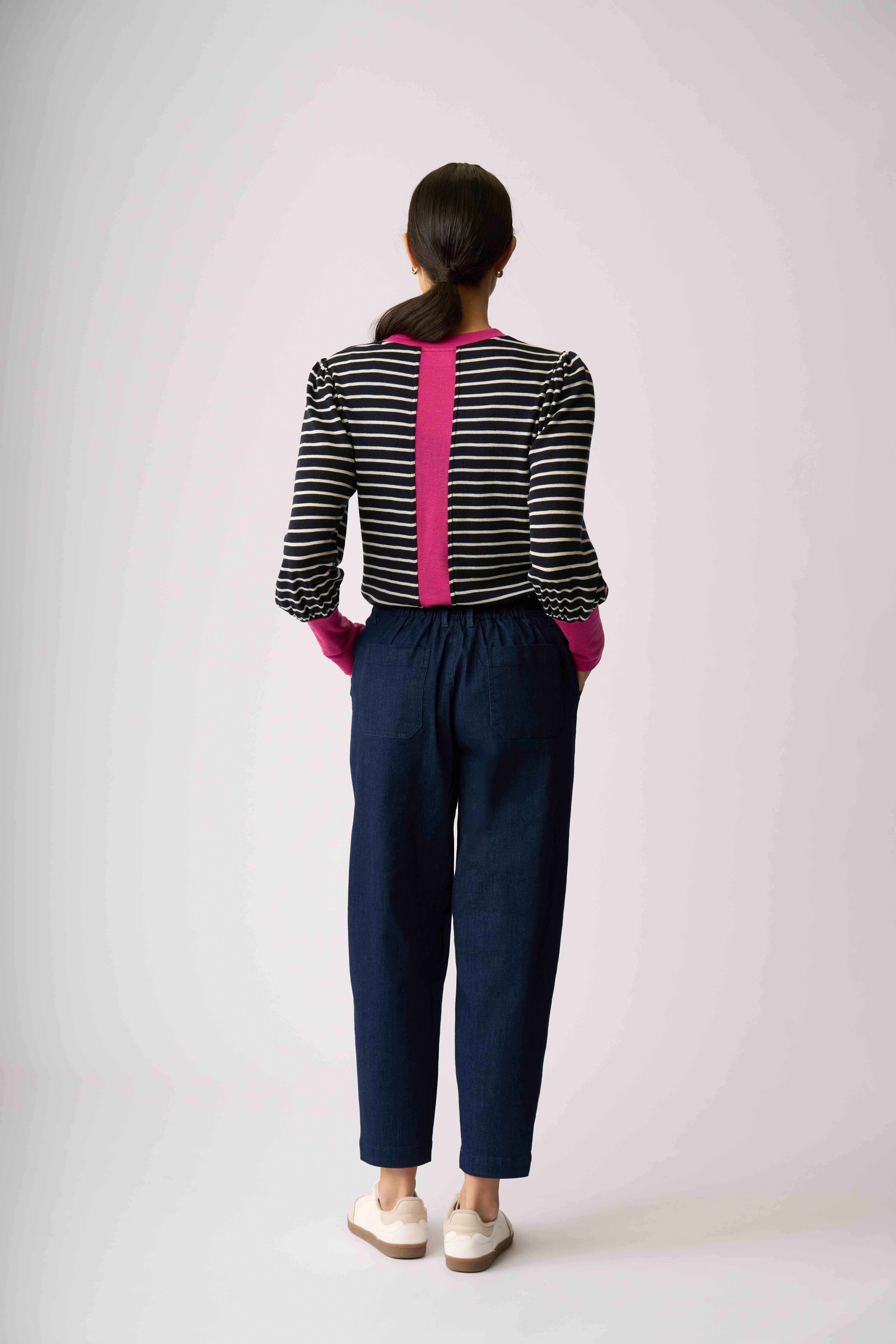 This contrast trim merino jumper adds a bit of fun to your everyday knit.The relaxed fit and distinctive trims make it easy to pair with jeans or skirts, adding just the right amount of contrast to your outfit.