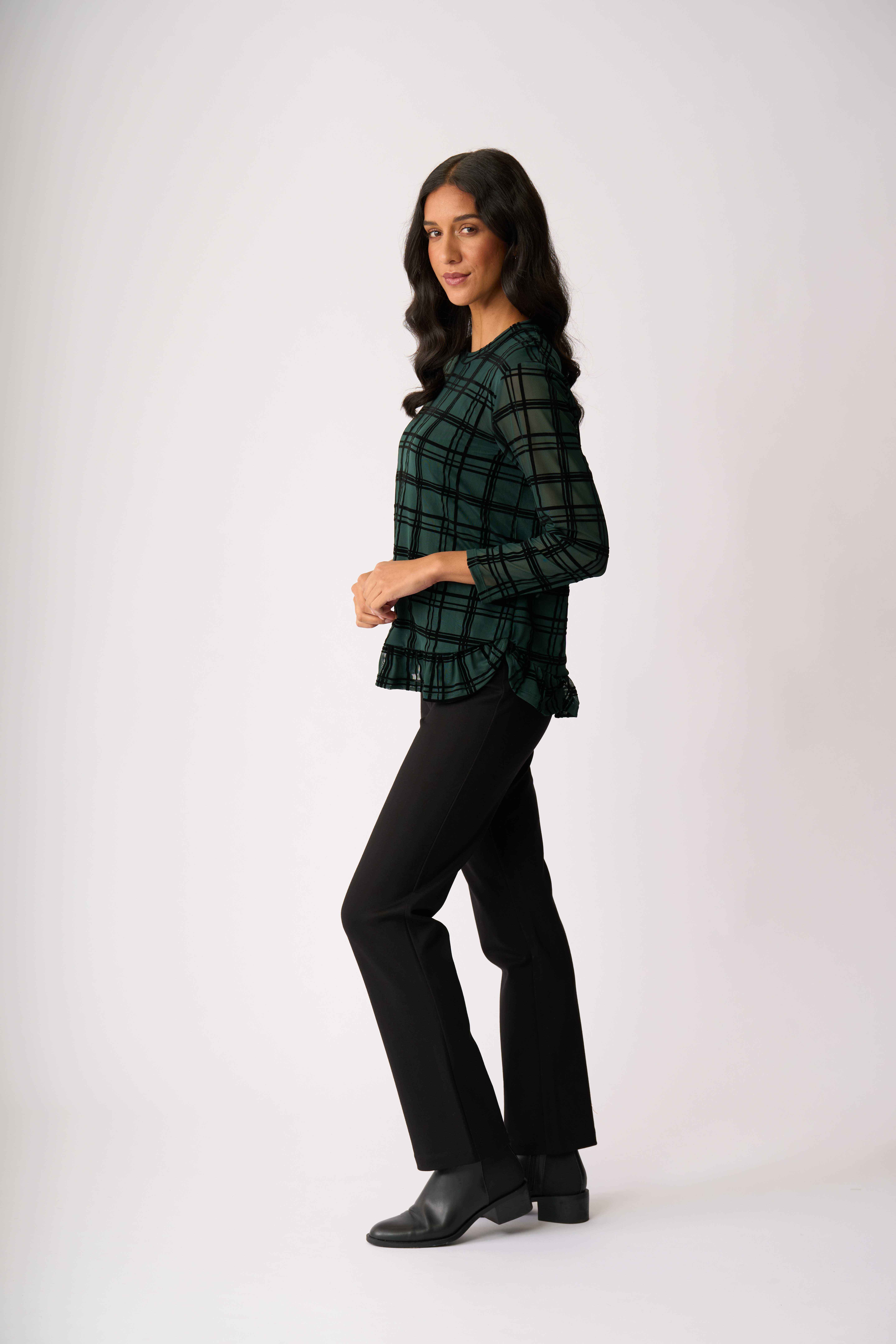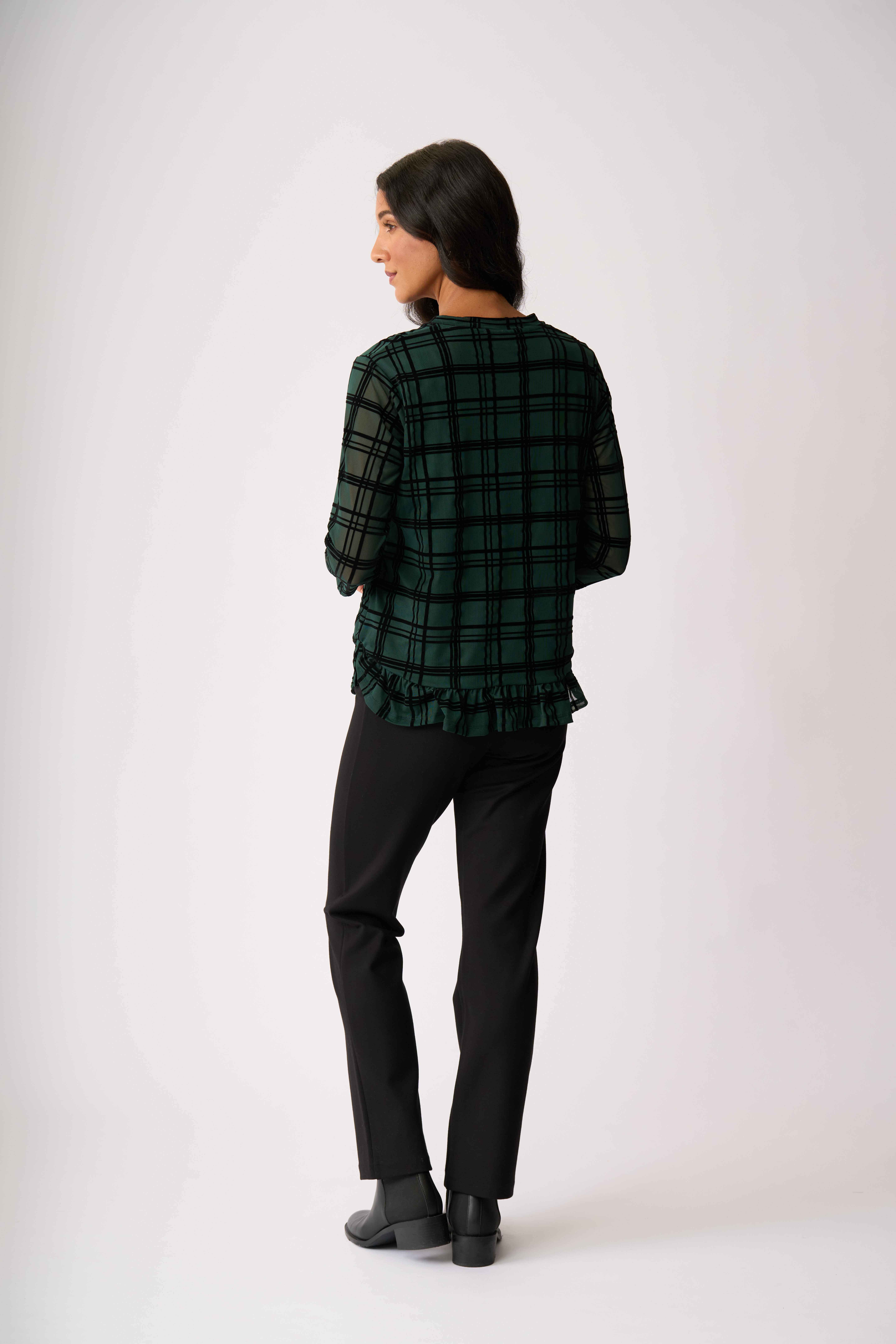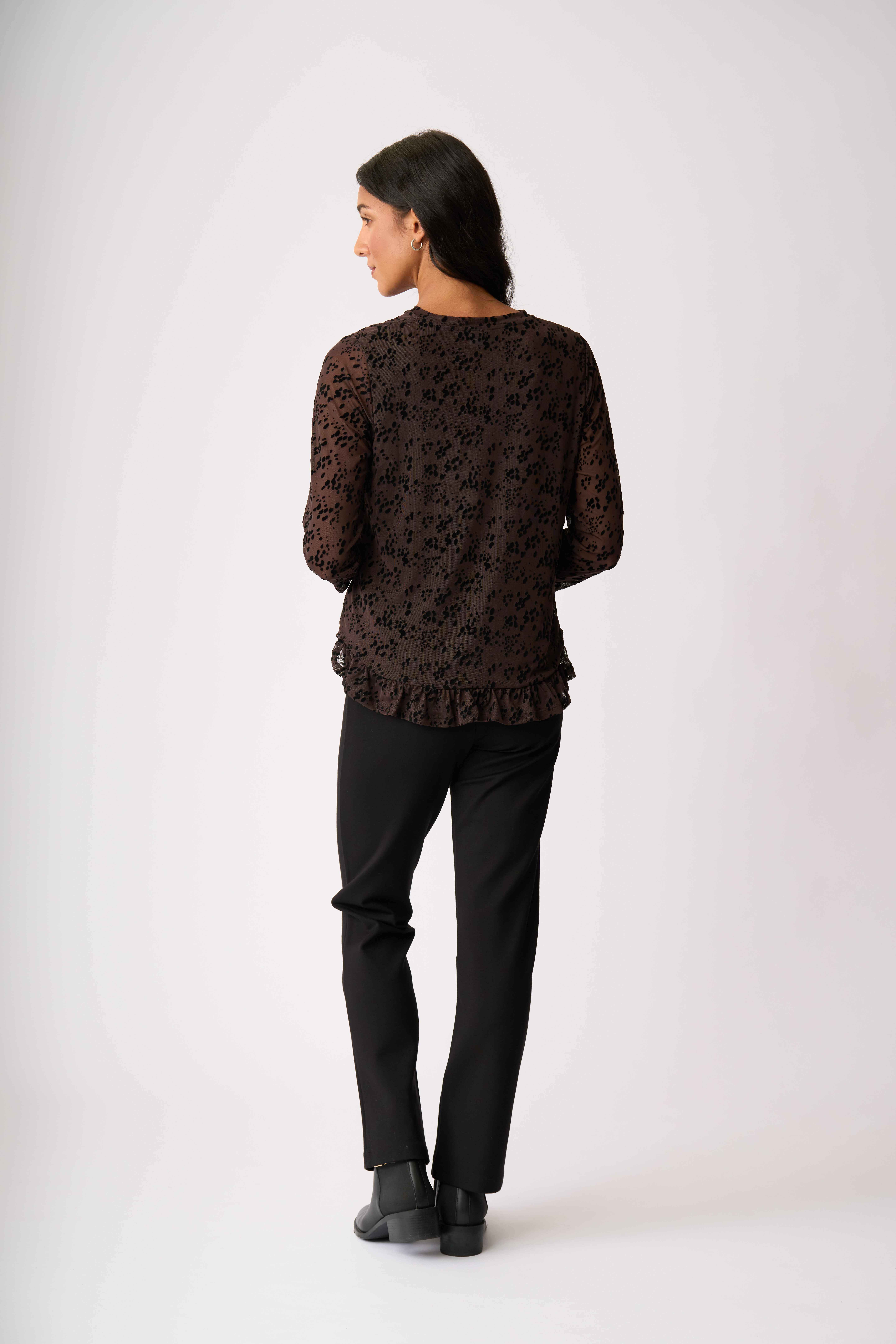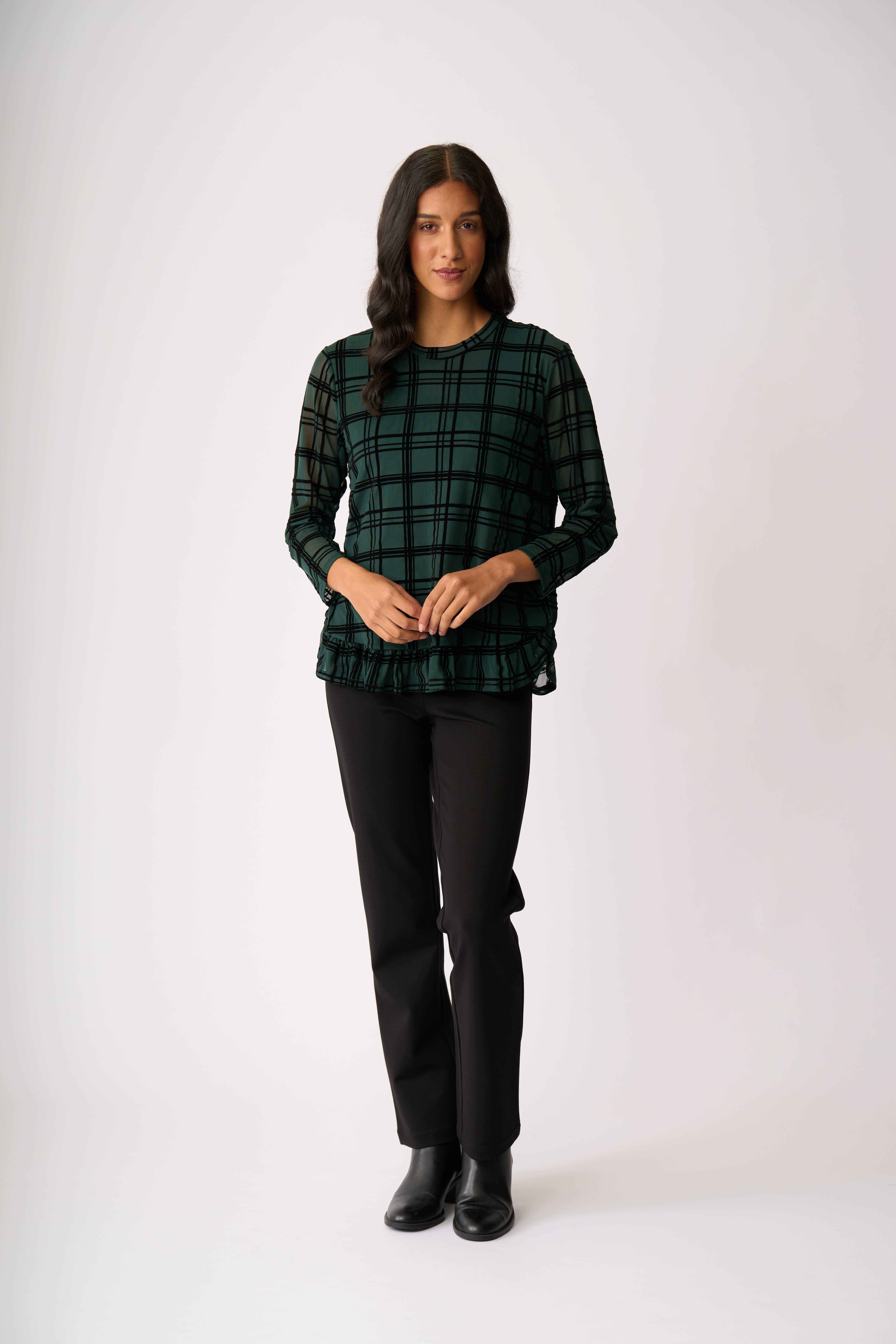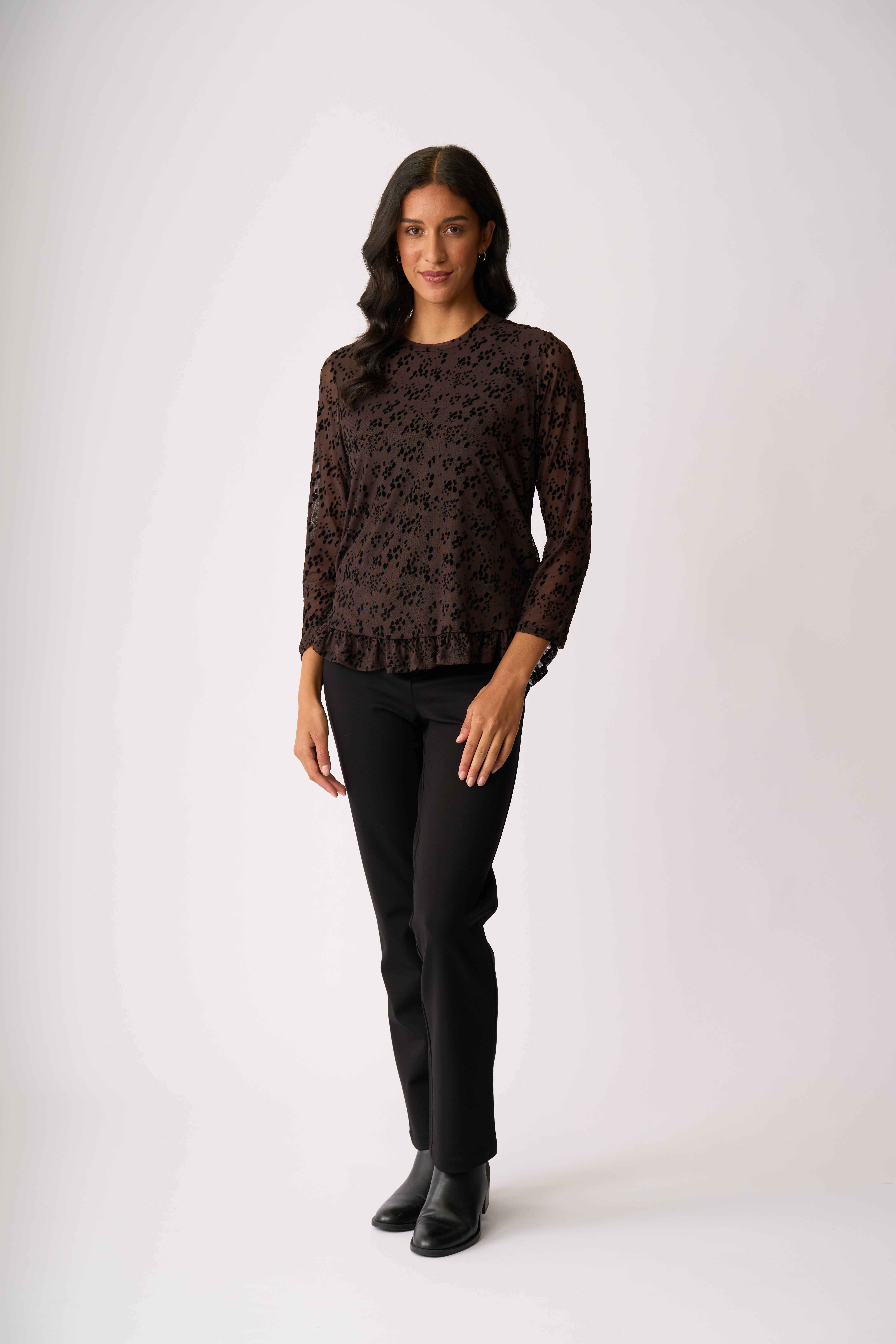 Ruffle detail scoop hem topScoop neck shapeSwing fit top with frill detail at hem and sleeve cuffElbow length sleeves