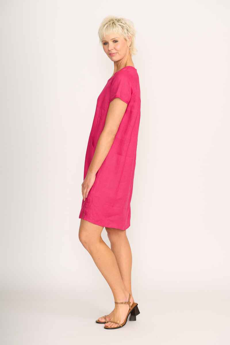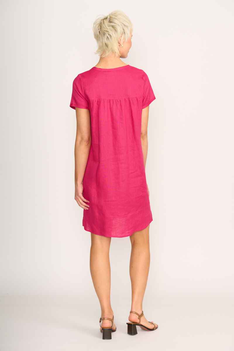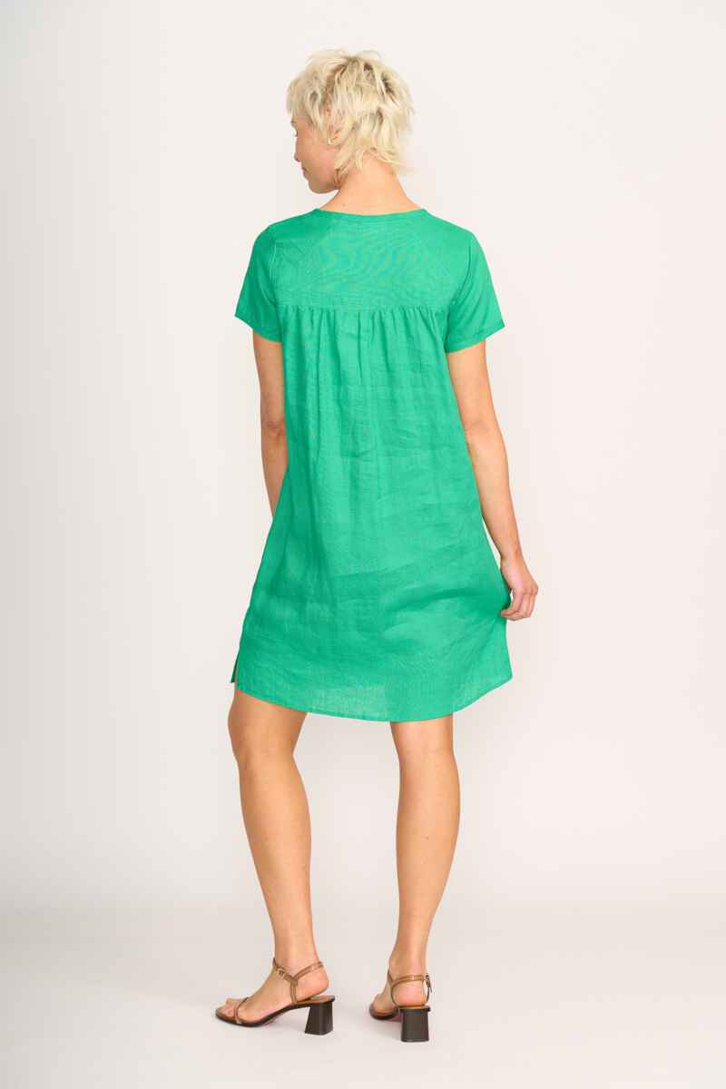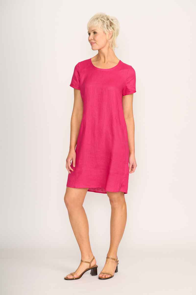 The panel line dress with asymmetric panel lines and a back gathered yoke for an easy fit. Side splits at the hem. Body length from front apex is approx. 100cm (size 12)