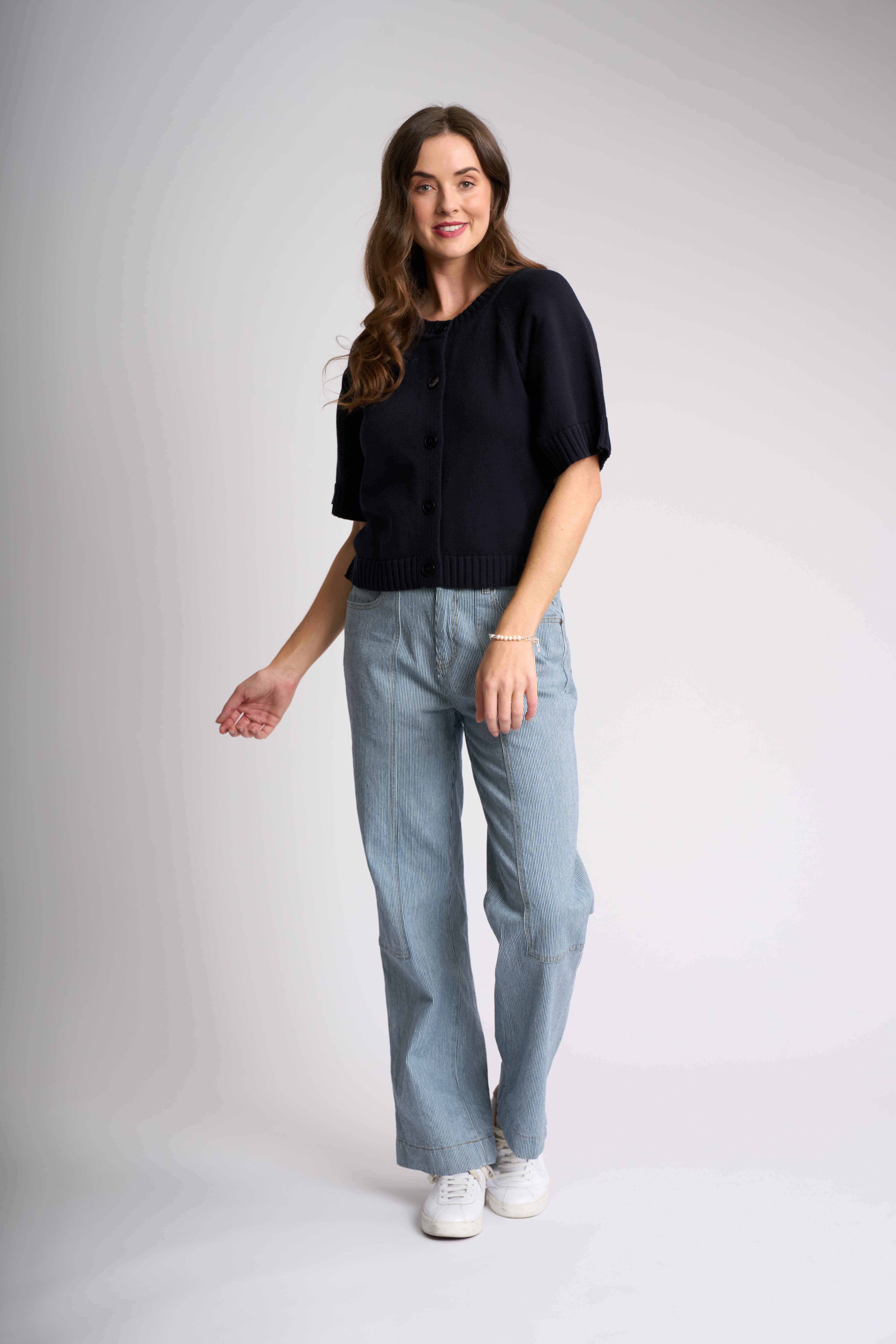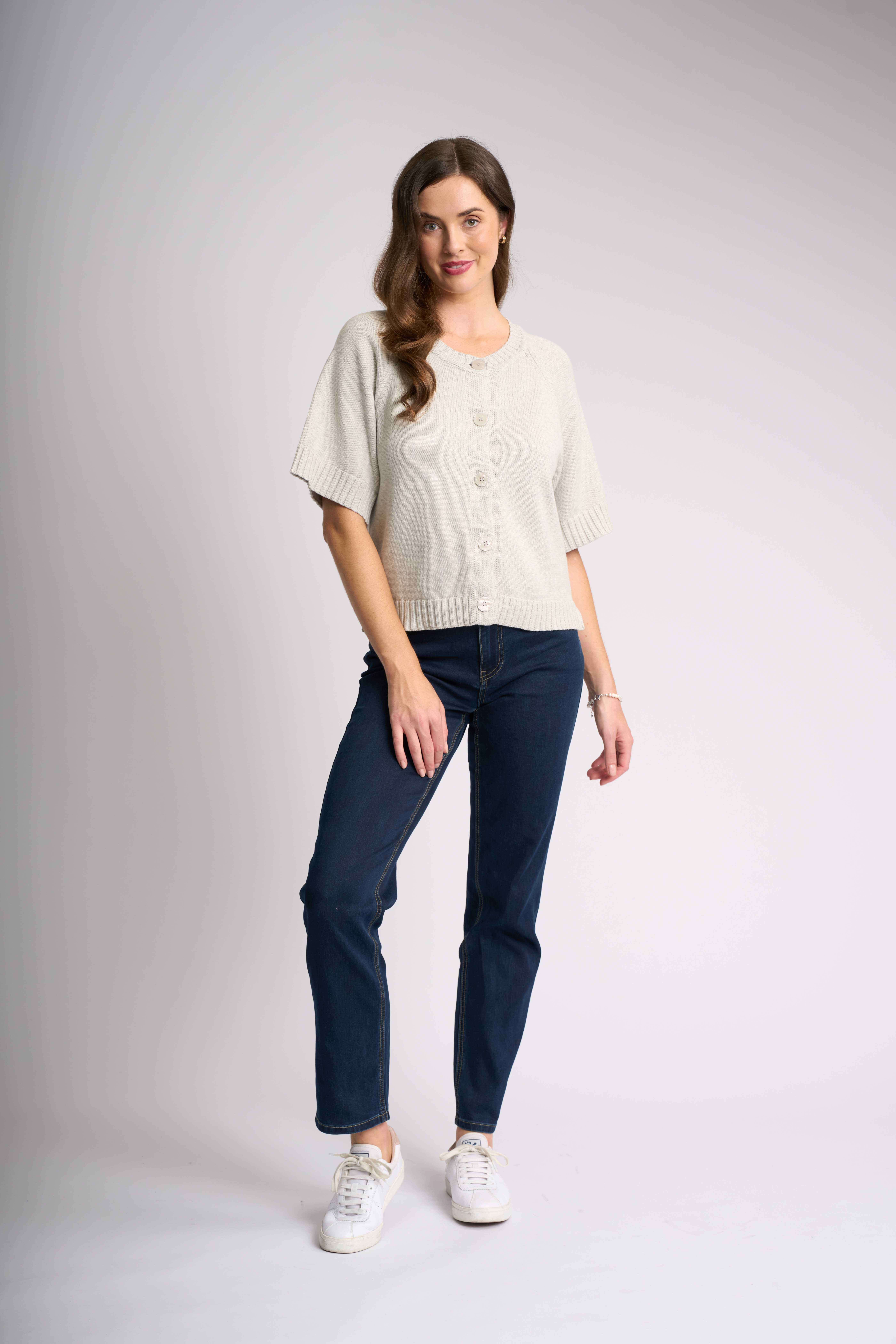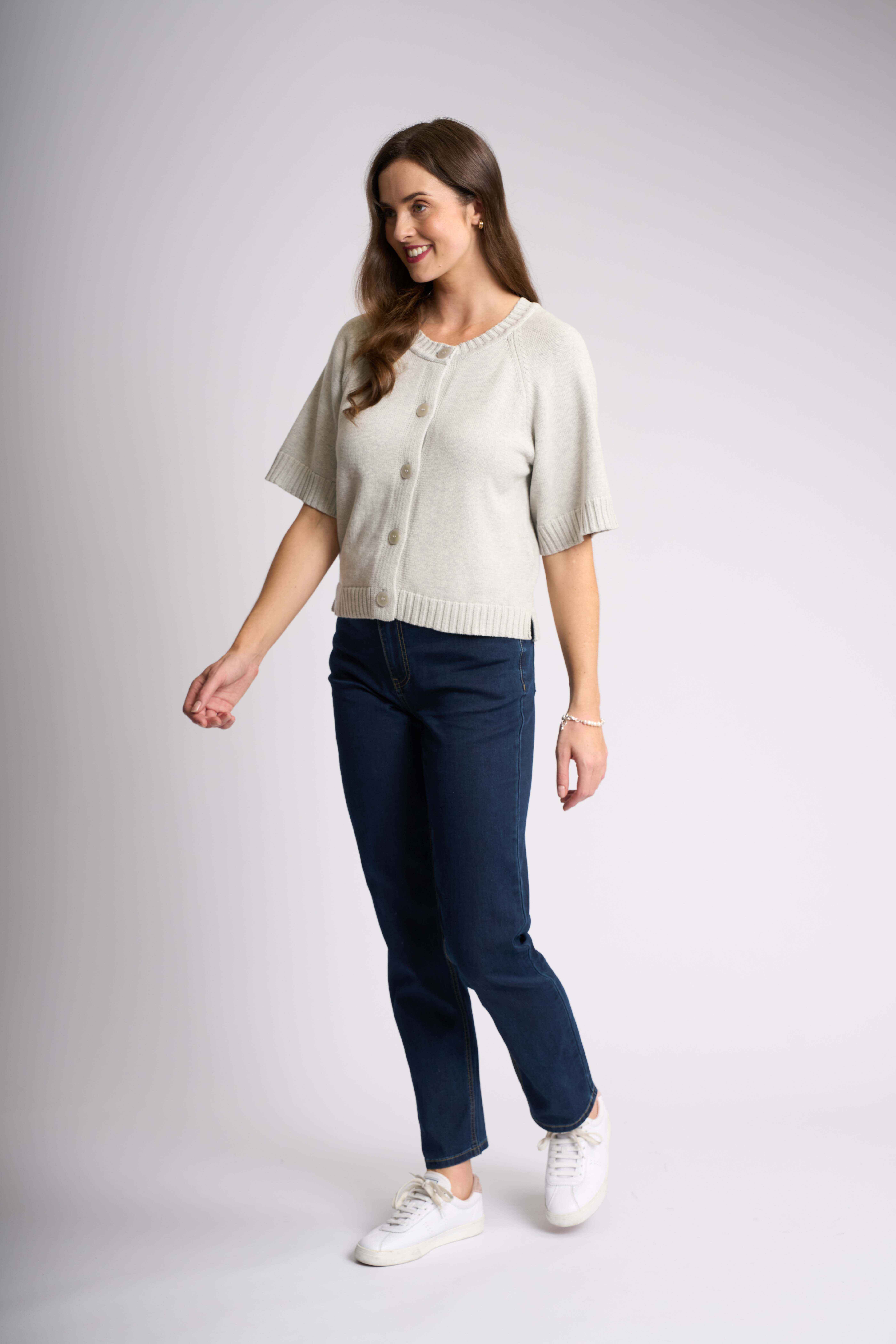 Our must have relaxed fit cardigan, designed for effortless style and comfort. Featuring a classic button closure and elbow-length sleeves. This cardigan is perfect for layering over your favorite outfits and the perfect transseasonal piece. The ribbed details add a touch of texture, while the body length of approximately 53.5cm (size small) ensures a flattering silhouette.