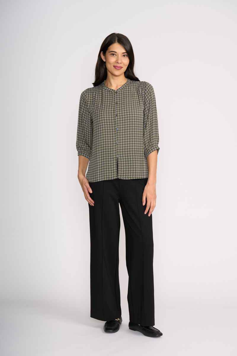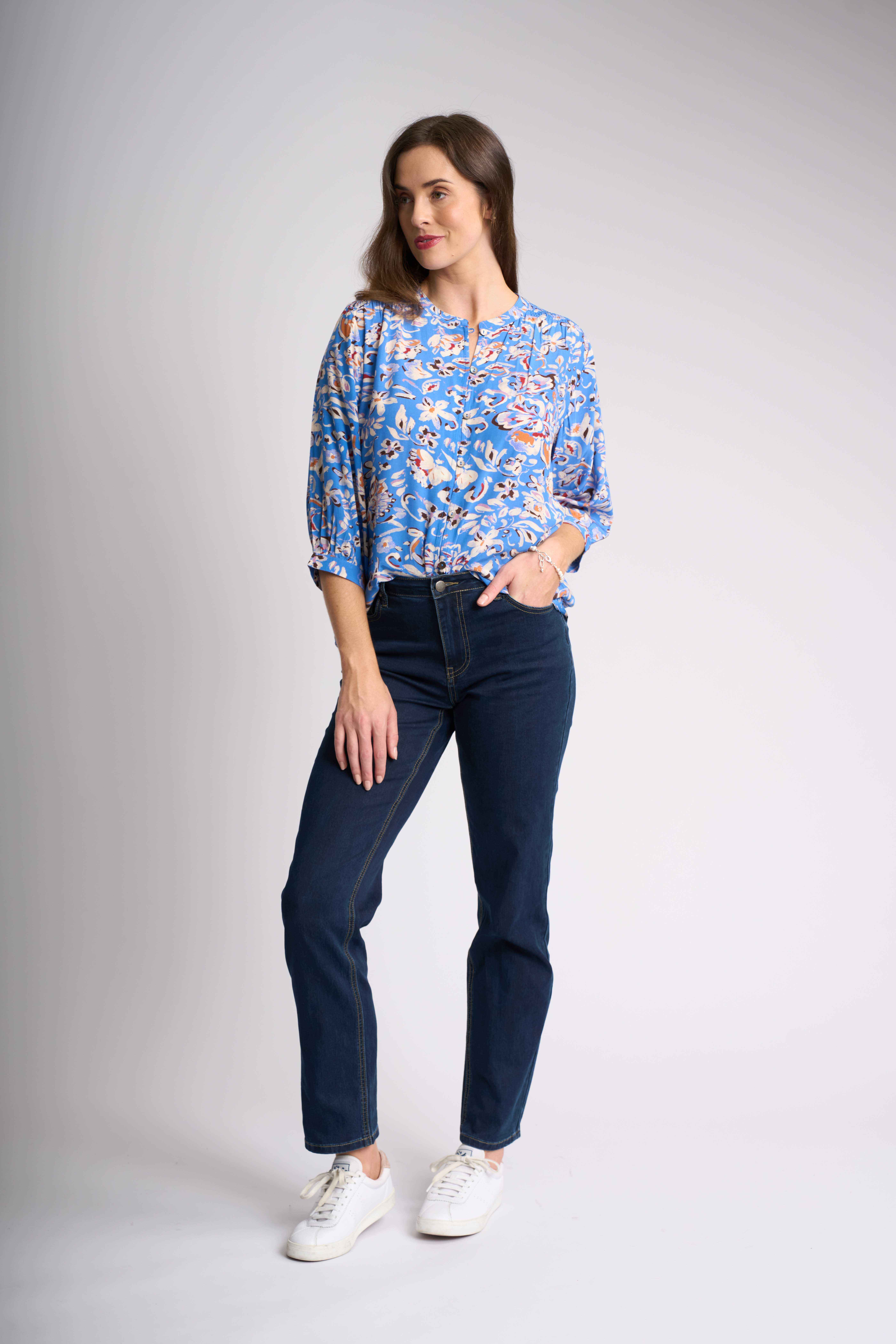 Looking for the perfect blend of style and comfort? Our button-up blouse is your new go-to. Featuring chic shirring on the shoulder, this relaxed fit piece offers effortless elegance. The 3/4 sleeves add versatility, while the 64cm body length (size 10) ensures a flattering silhouette. Upgrade your wardrobe with this must-have staple!