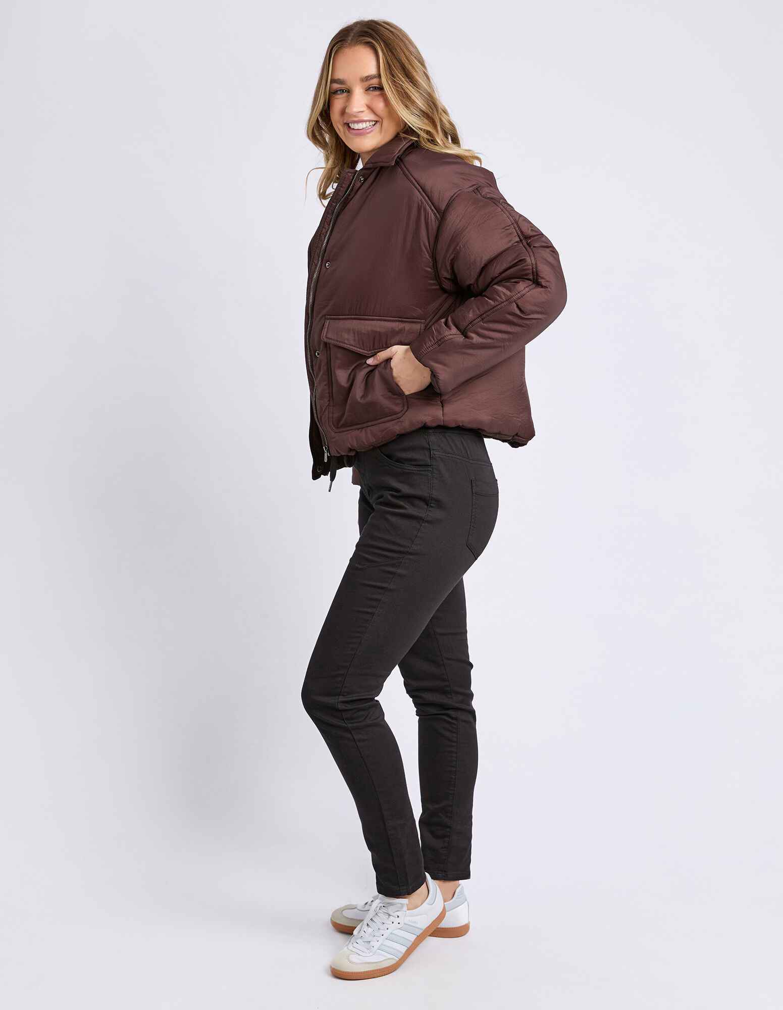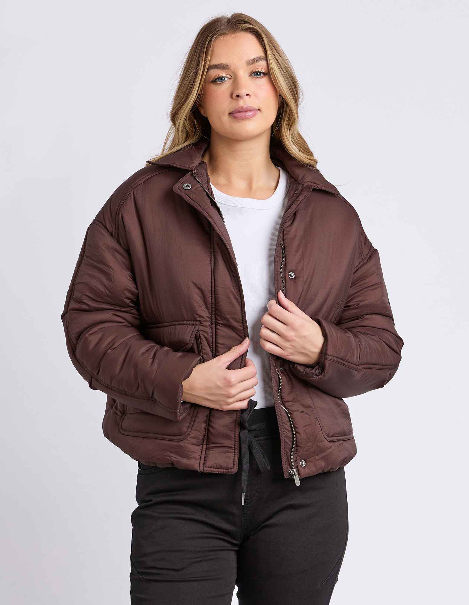 The Banff Jacket is your go-to layer for cooler days, combining comfort and everyday style with a clean, modern finish. Designed with a secure front zip and snap opening, it features functional front pockets and a lightly padded feel for added warmth without the bulk. Easy to throw on over knits and tees, it’s the perfect jacket for on-the-go layering.