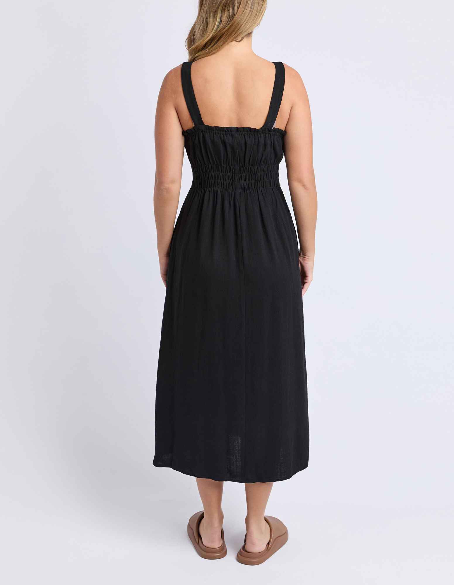 Say hello to sunshine days with the Dandelion Dress. The shirred bodice gives a flattering fit, the midi skirt swishes as you move, and the wide straps keep it comfy. Finished with handy side pockets, it’s a dress made for twirling through summer.
