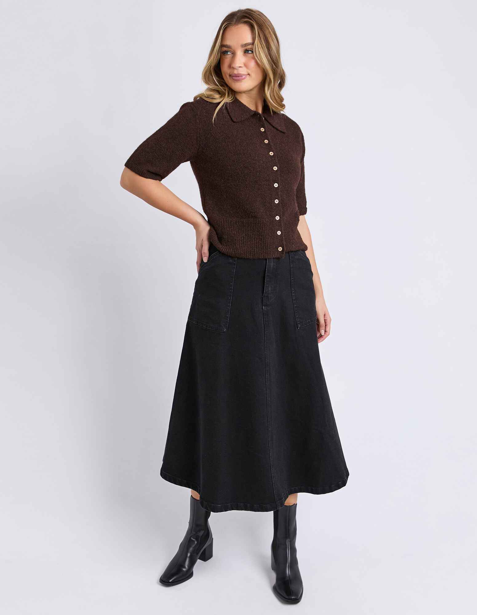 The Fernie Button Top is a knitwear staple with a classic, elevated finish. Featuring a collared neckline and full front button-through design, it’s perfect for layering or wearing on its own. The short sleeves and ribbed hem create a clean, flattering shape, while the relaxed fit makes it an easy option for everyday styling.