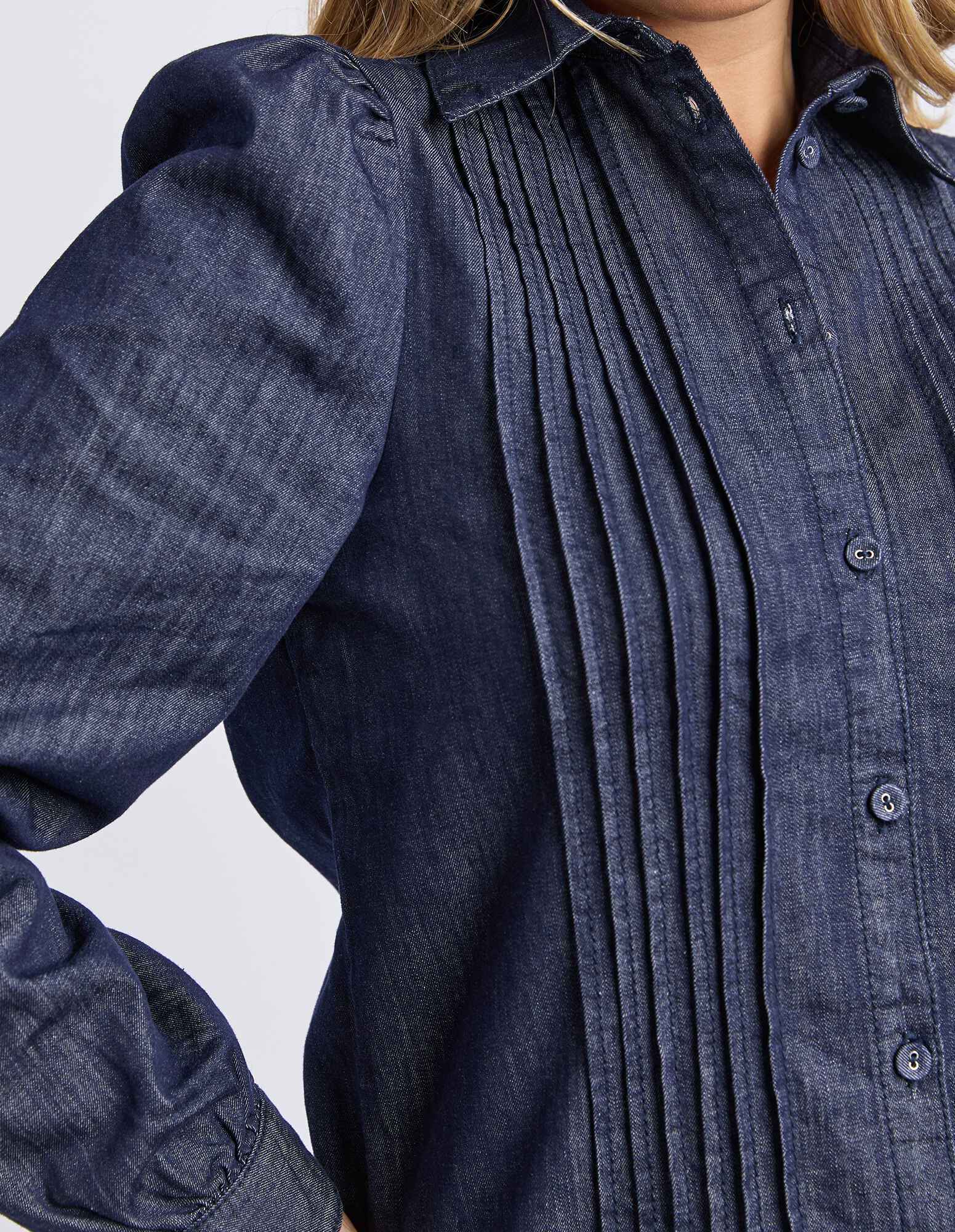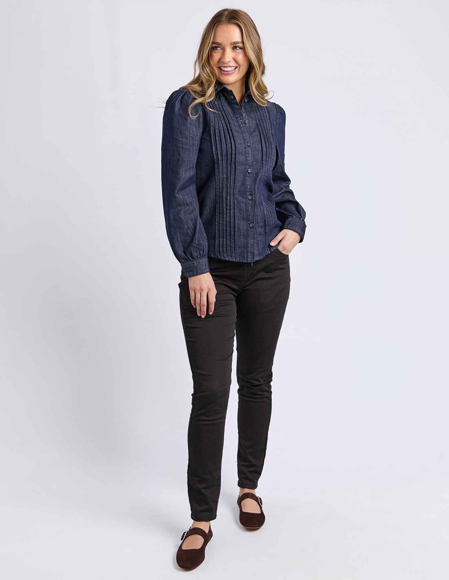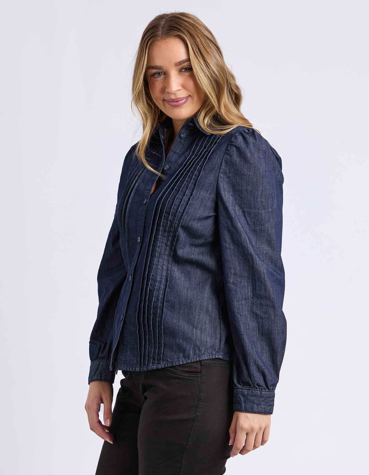 A little drama, done just right. The Poppy Shirt features delicate pintuck detailing through the front and soft puff sleeves that add shape without feeling fussy. Finished with a classic button-through front, it’s an easy way to elevate denim, tailored pants or a midi skirt. Polished enough for plans, relaxed enough for everyday wear.