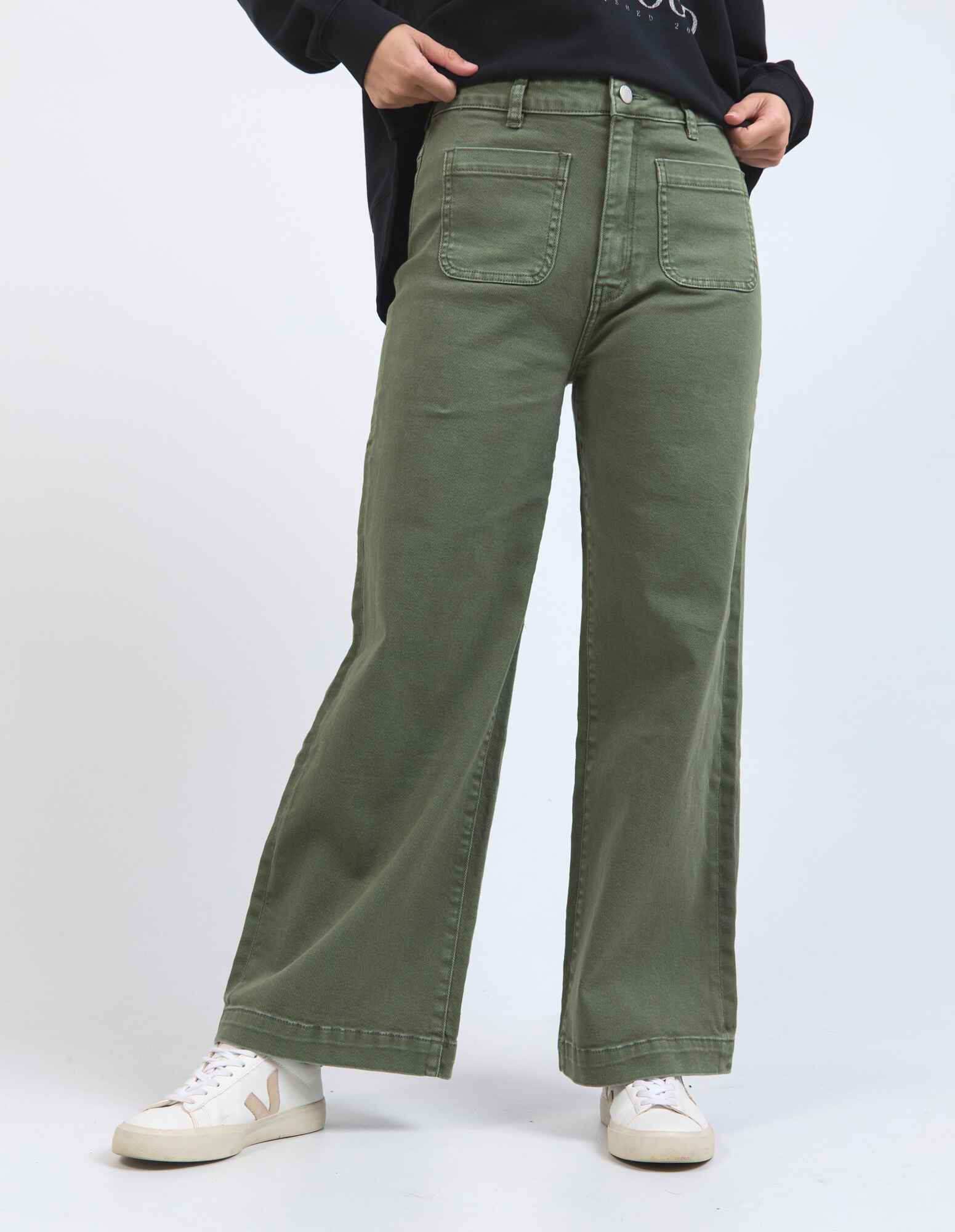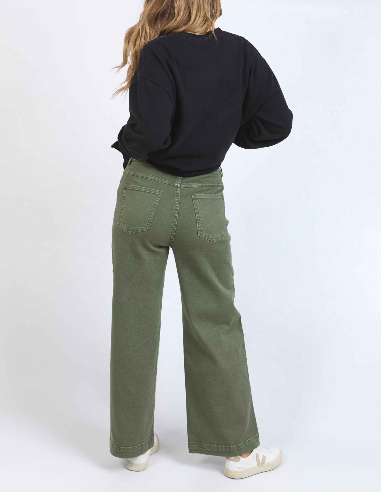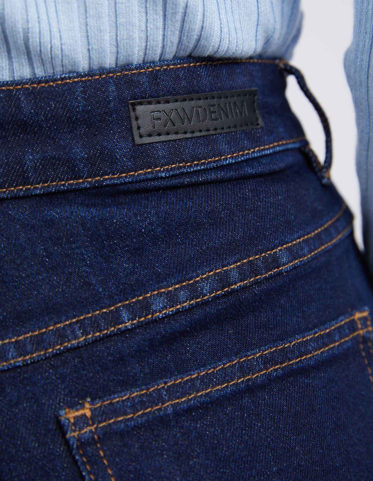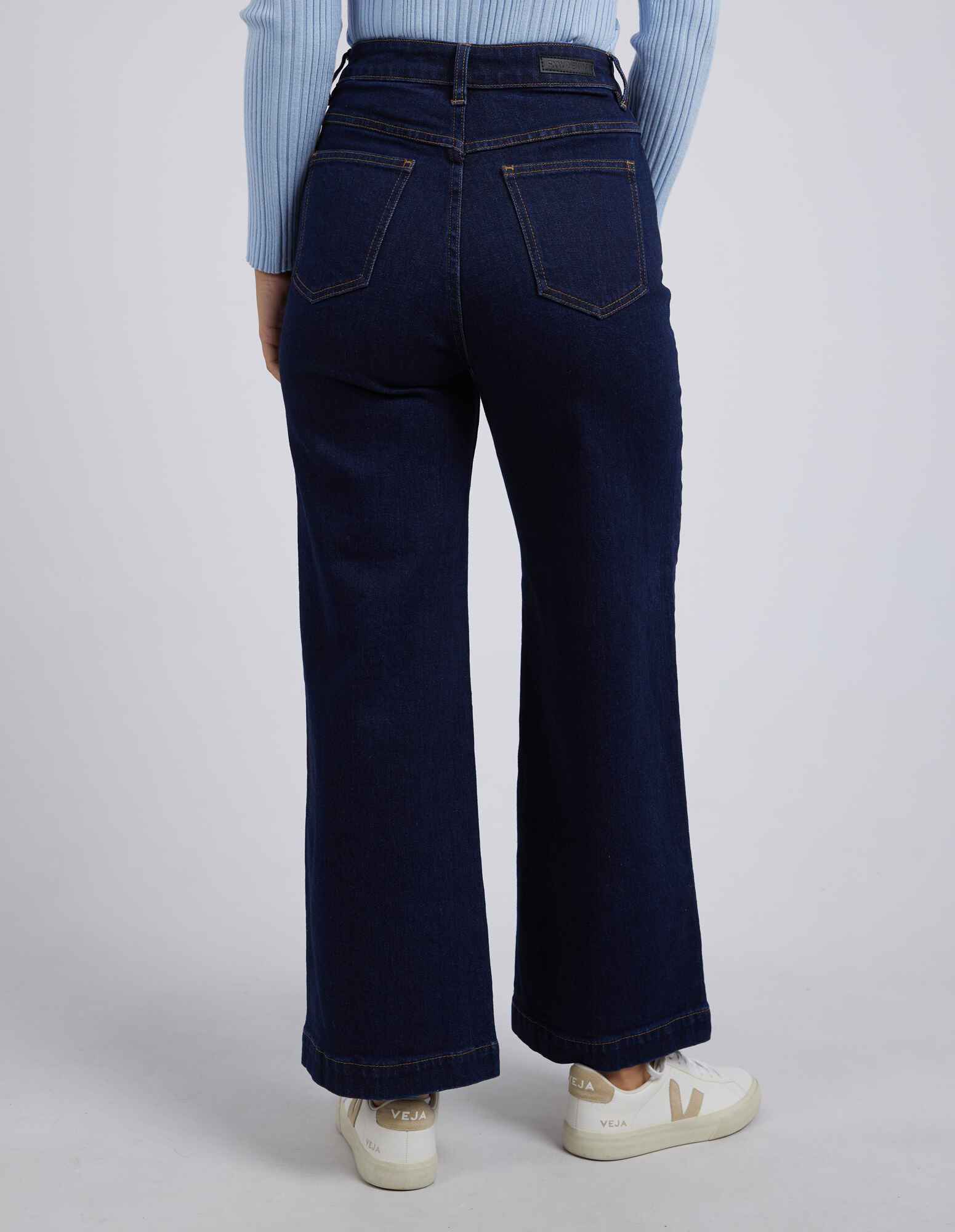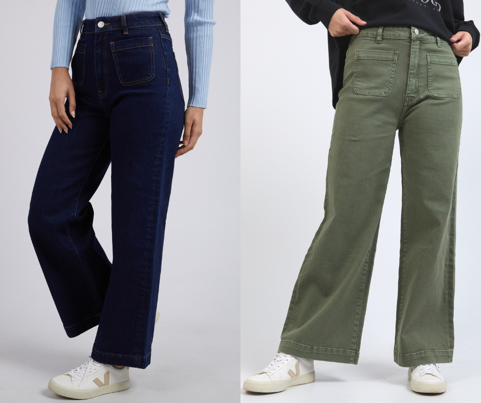 A new high-rise jean featuring front patch pockets, a fitted waist and slightly wide leg.