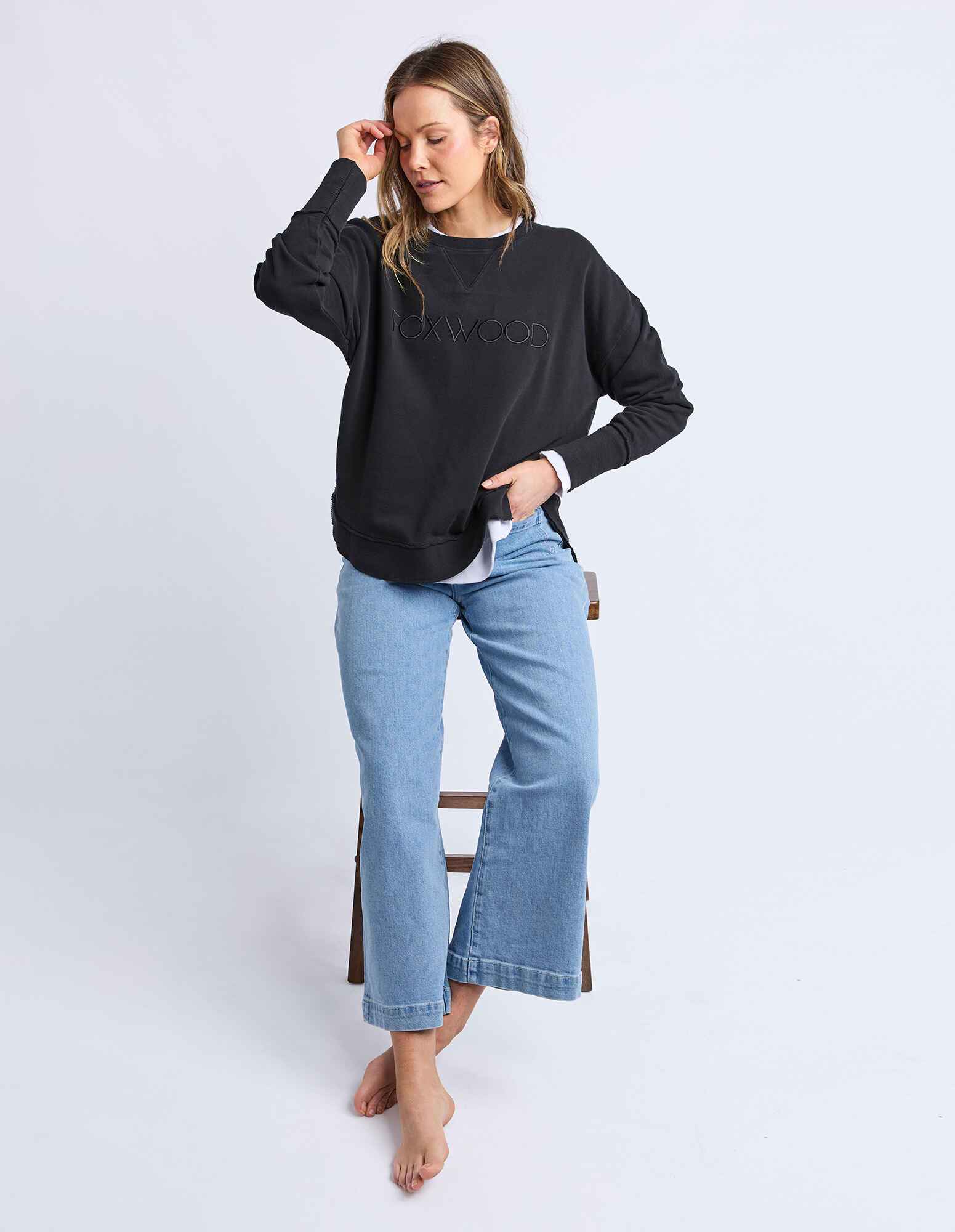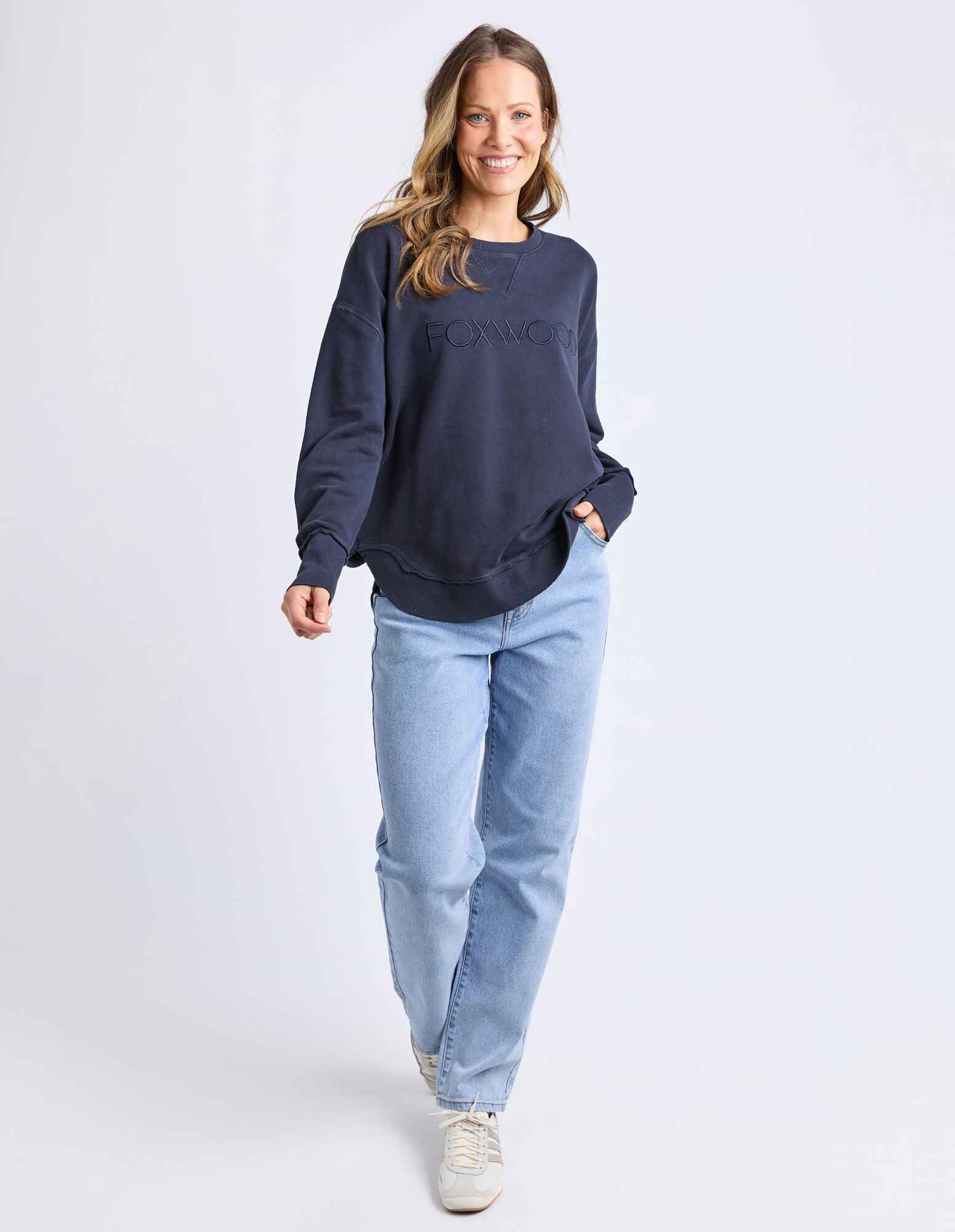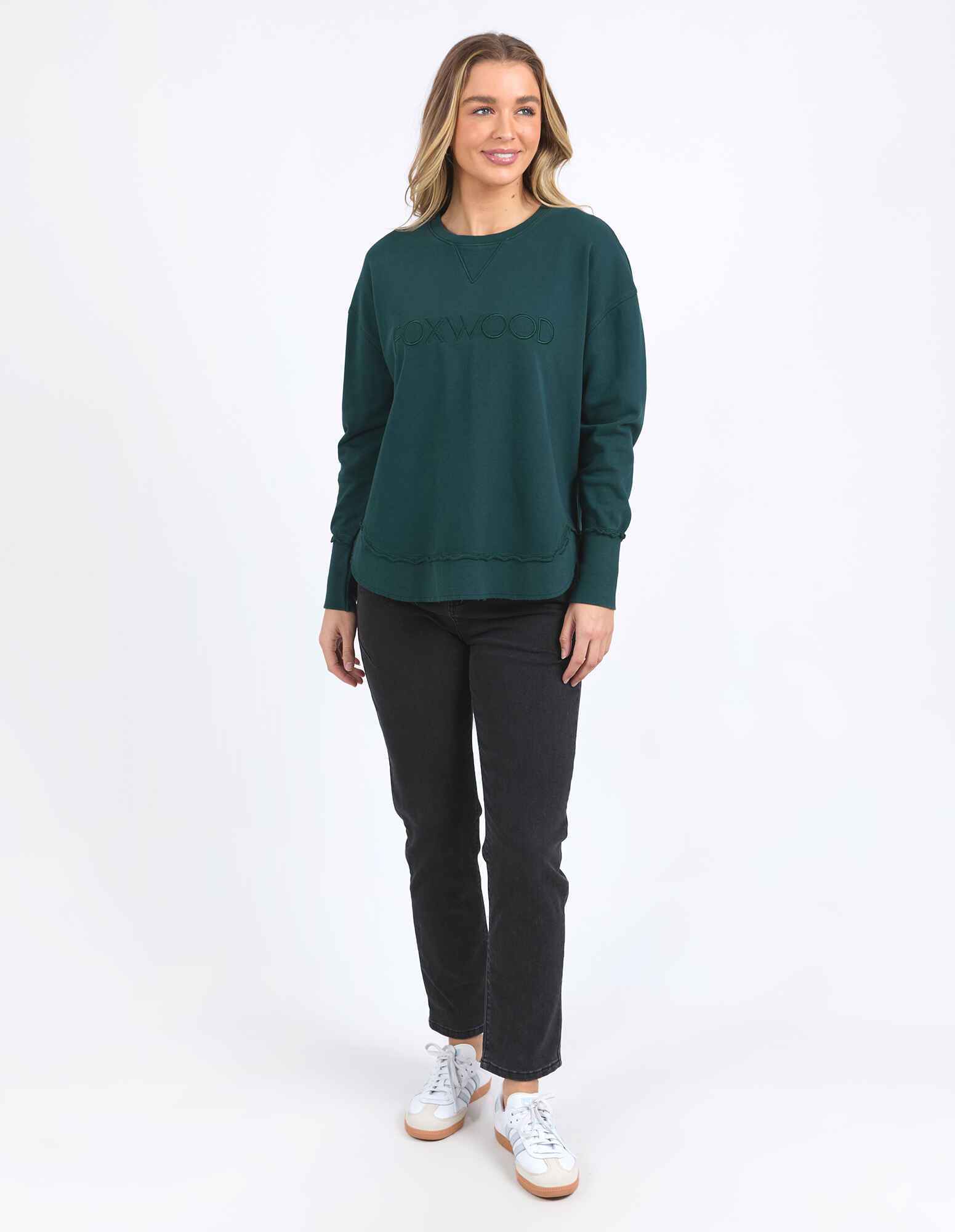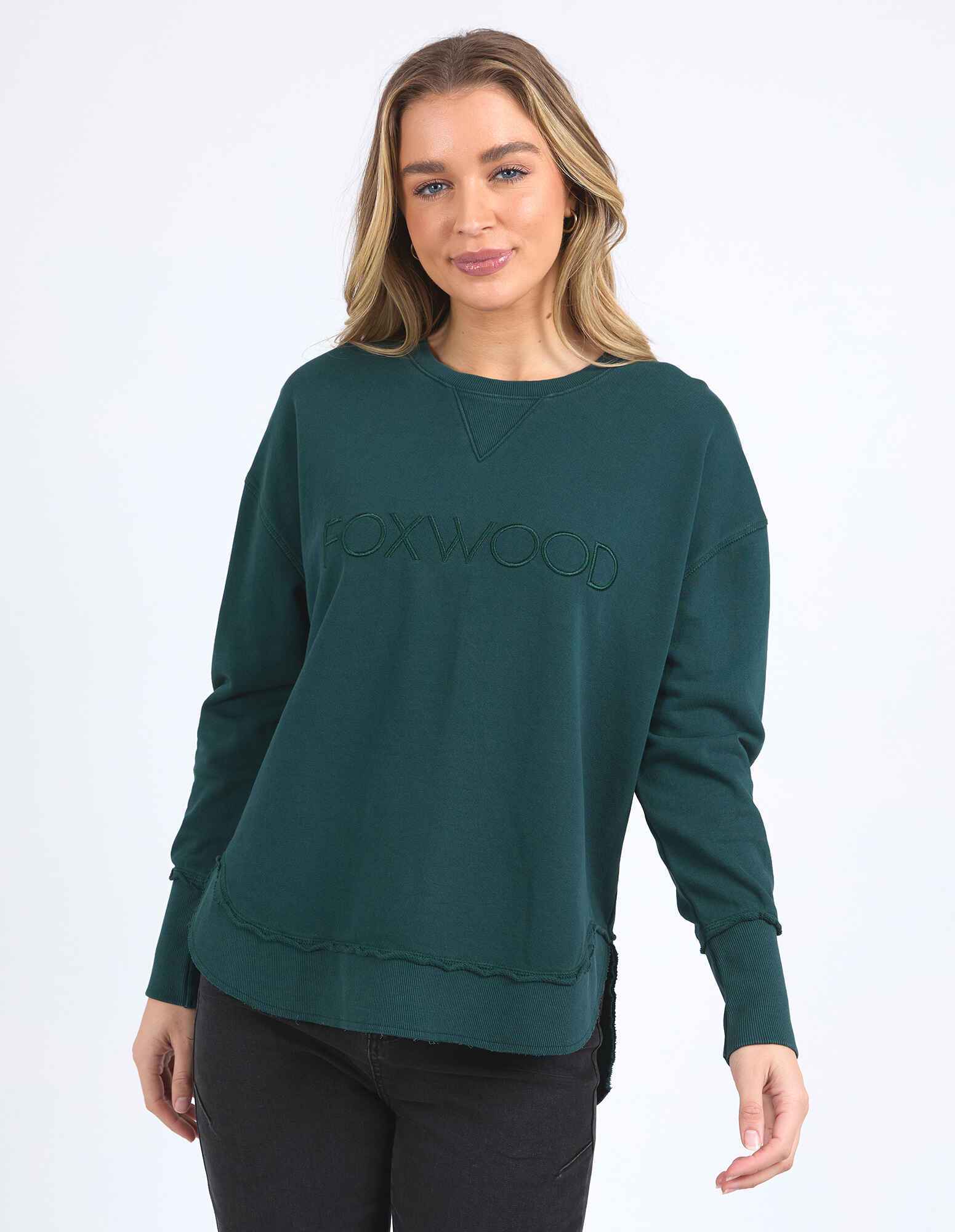 The Simplified Crew is the perfect throw over for your everyday wardrobe. With its round neck, hi-lo hemline, side splits with raw edging & the classic Foxwood logo, you are going to want one in every colour.