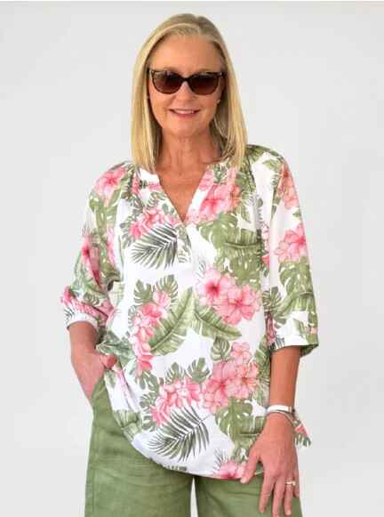 Bring a touch of tropical charm to your everyday style with the Caledonia Floral Print Top.