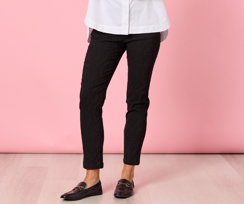 Sophisticated and stylish, the Mila Print Pant is the perfect blend of comfort and contemporary elegance. Crafted from a super stretch fabric, these pants feature a subtle tonal print that adds depth and texture without overpowering your look. Designed with a slim-leg silhouette, they offer a sleek, flattering fit that’s easy to style for both day and night.