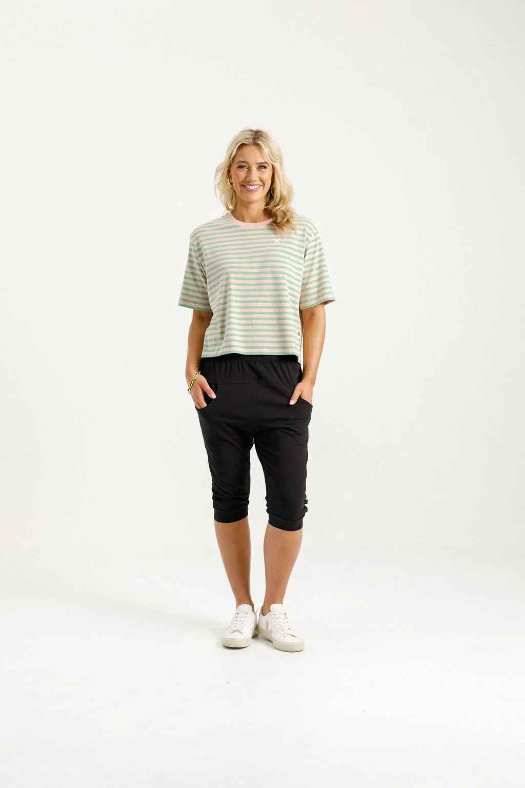 World-famous in New Zealand for good reason - the 3/4 length Apartment Pants are the shorter version of our full length Apartment Pants. Whether you’re lounging at home, running errands, or rushing out the door, these pants are the ultimate in comfort and style.With a fitted cuff at the bottom of the leg, a comfortable elasticated waistband, and deep pockets, they’re as practical as they are stylish. Designed to sit loosely on your hips and backside, with a relaxed dropped-crotch fit, these pants redefine effortless everyday wear.