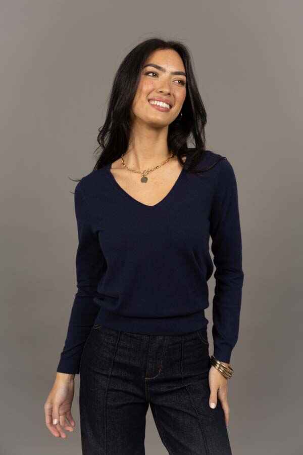 A beautifully soft knit jumper designed for effortless everyday style. Featuring a flattering V-neckline and long sleeves, this lightweight piece offers a smooth, comfortable fit that’s perfect for layering or wearing on its own. A timeless wardrobe staple available in versatile shades to suit every look.