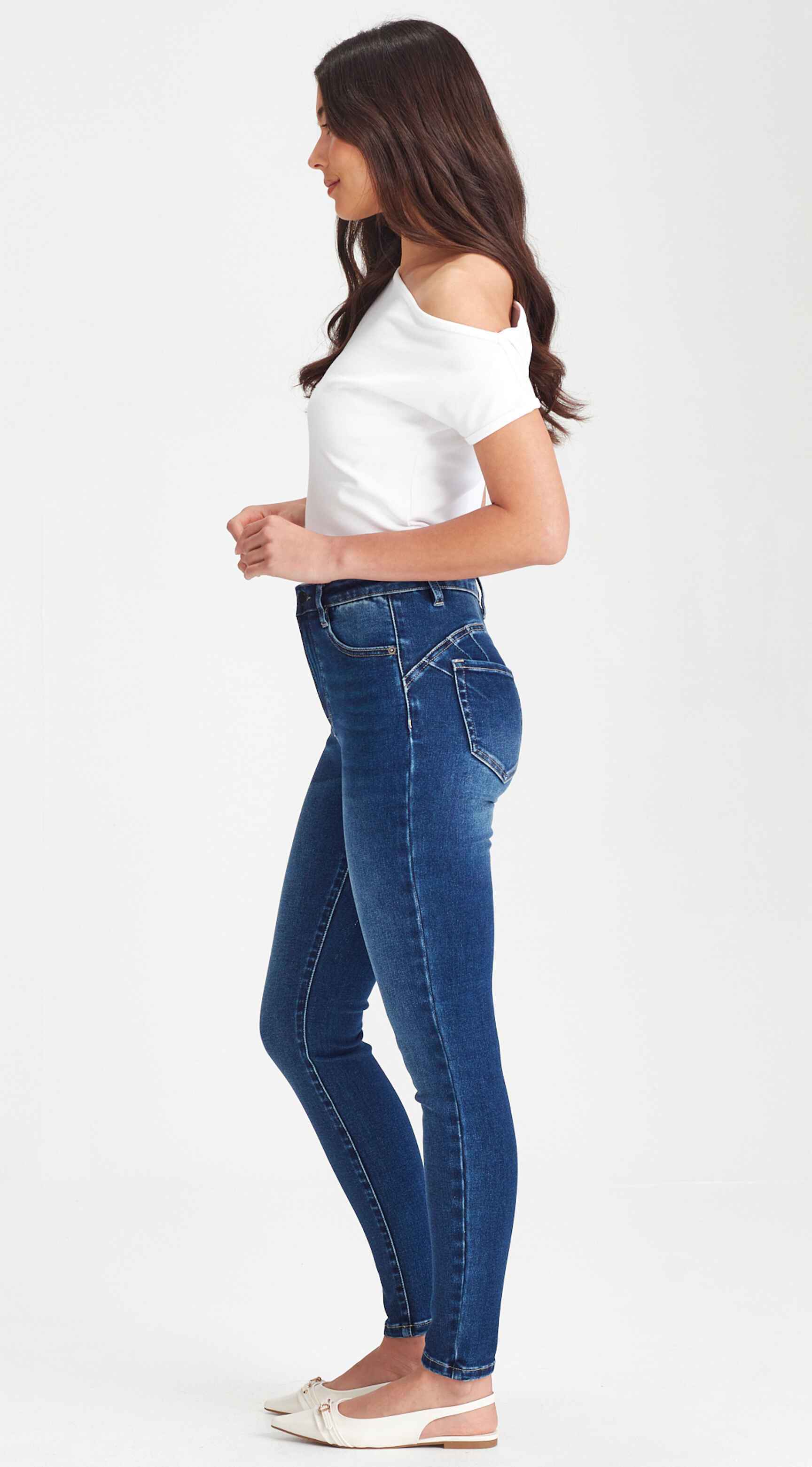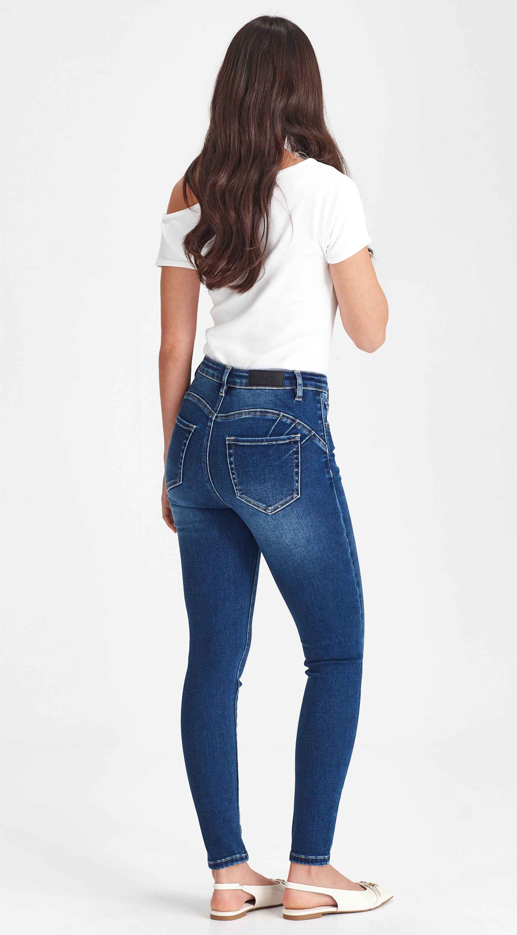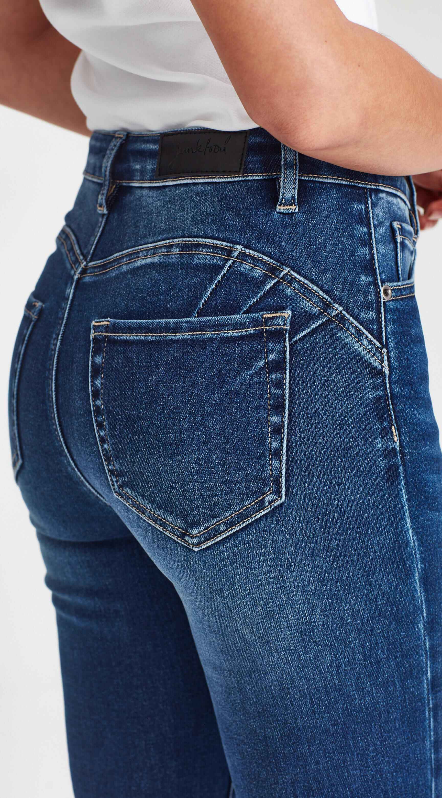A flattering straight leg jean in a premium soft stretch fabric, with a slimmer fit through the waist and thighs and a classic tapered, straight lower leg fit. Designed with a genius stitch pattern at the back for a peachy push up look. The ultimate feel good look good jean.
